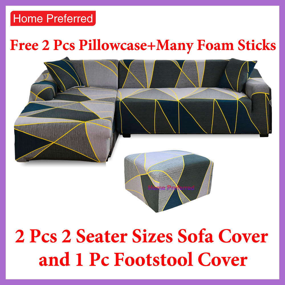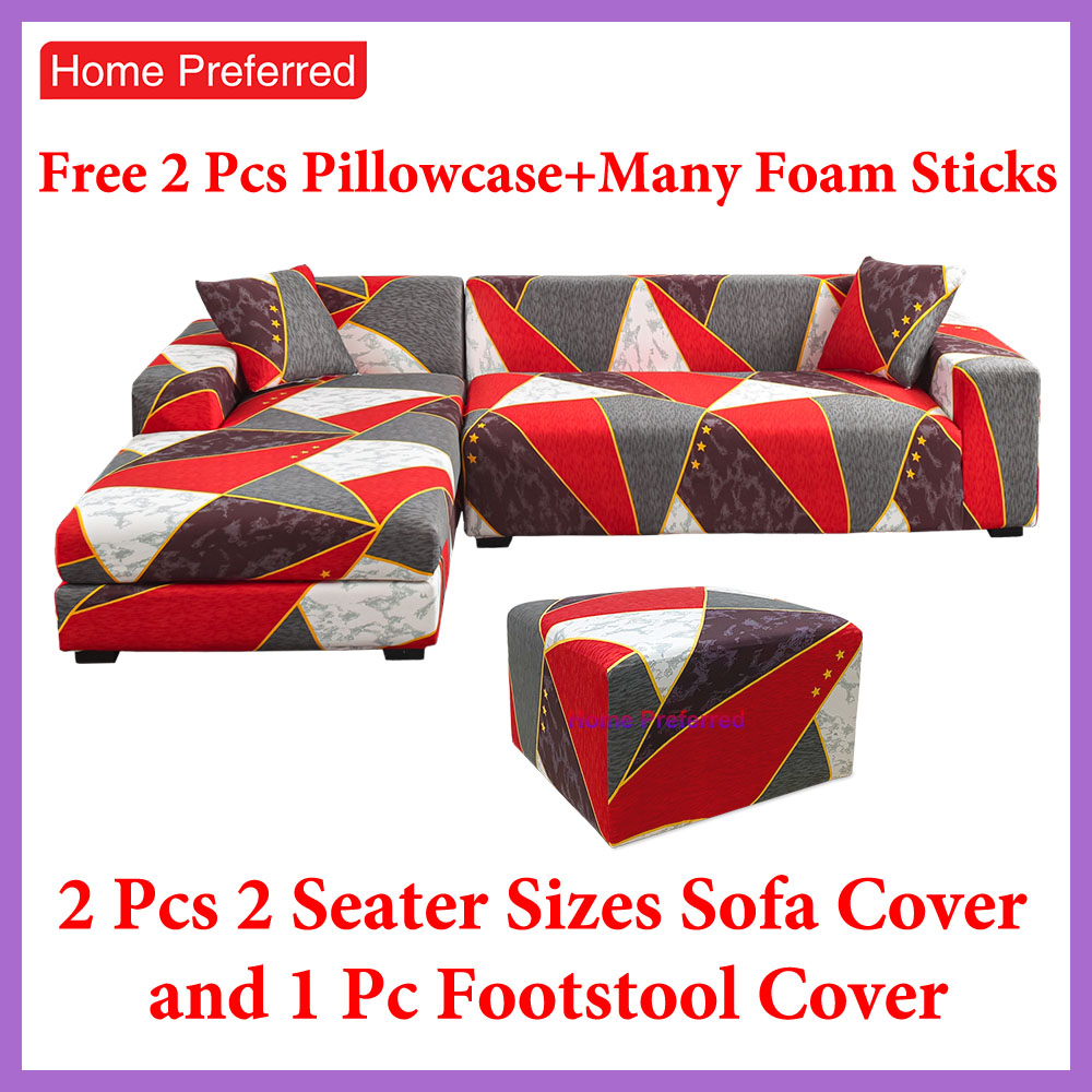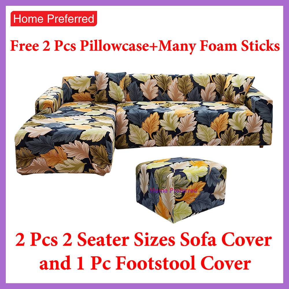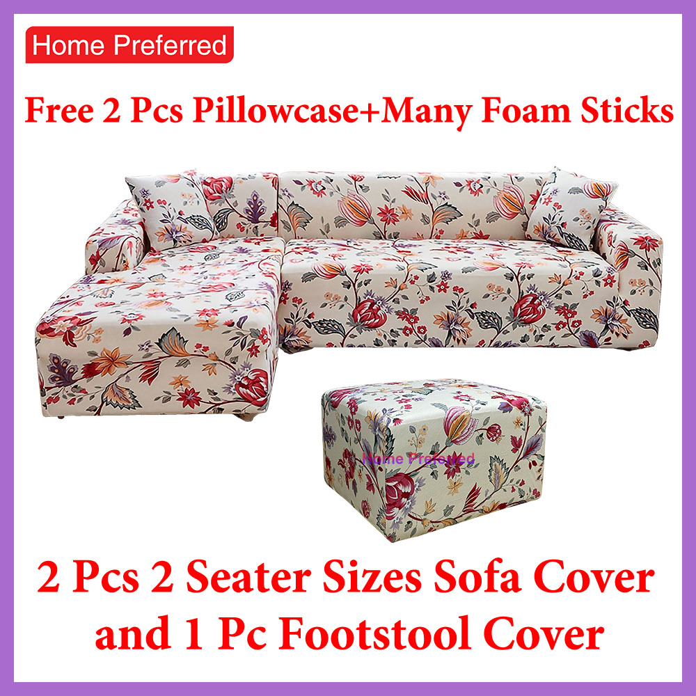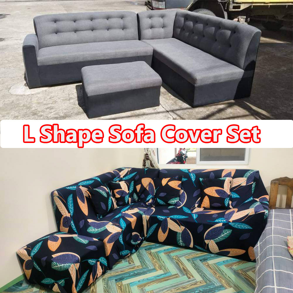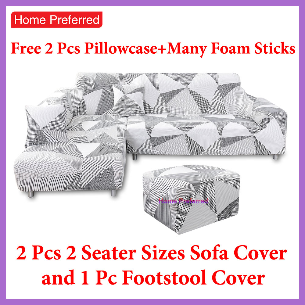 L Shape Sofa Cover Set of 2 Pcs 2 Seater and 1 Piece Footstool Cover Sala Set Cover Sofa Set Cover