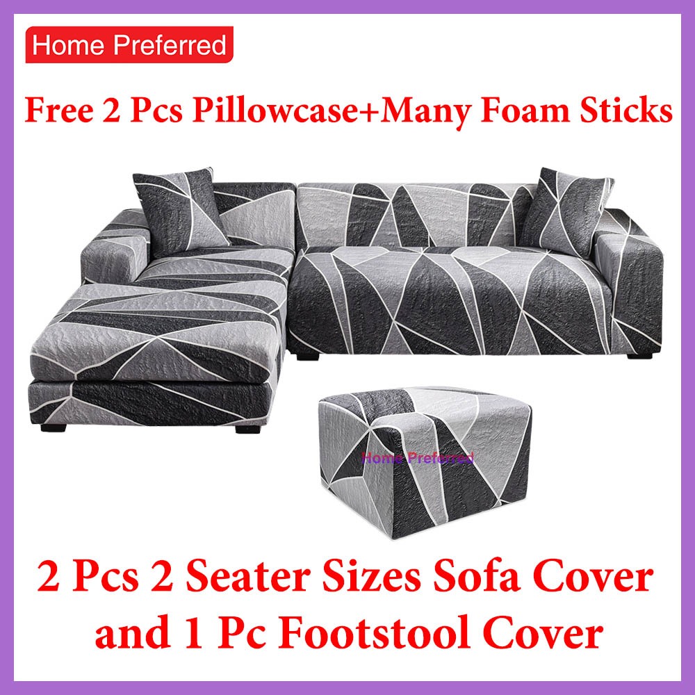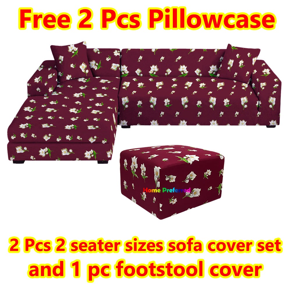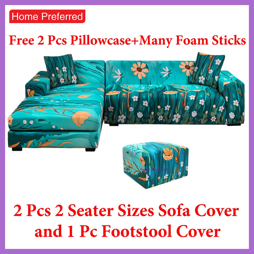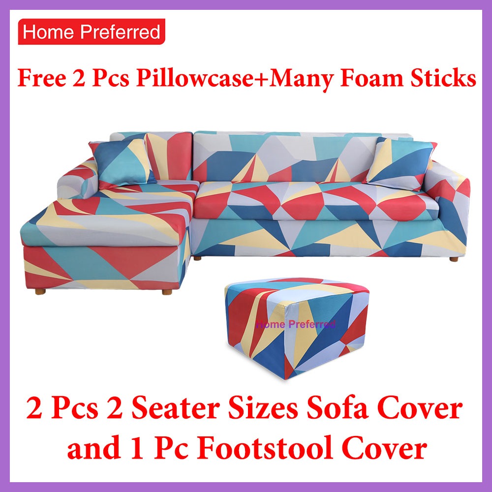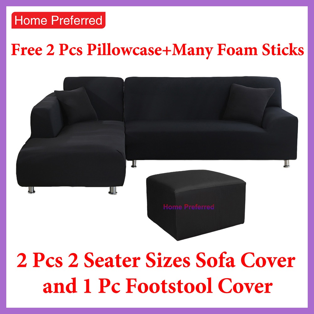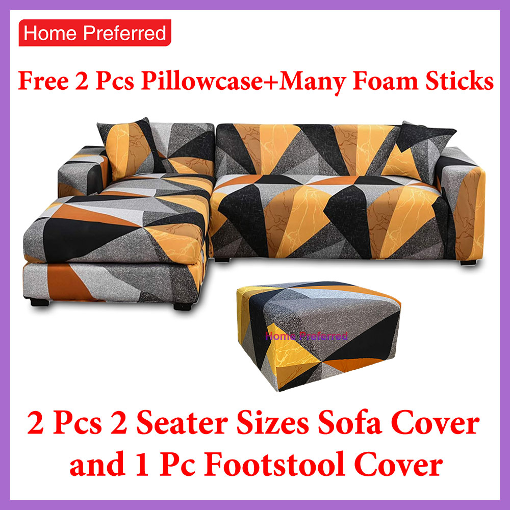 L Shape Sofa Cover Set of 2 Pcs 2 Seater and 1 Piece Footstool Cover Sala Set Cover Sofa Set Cover