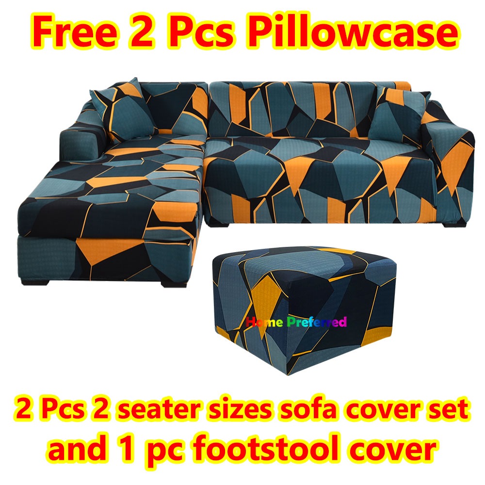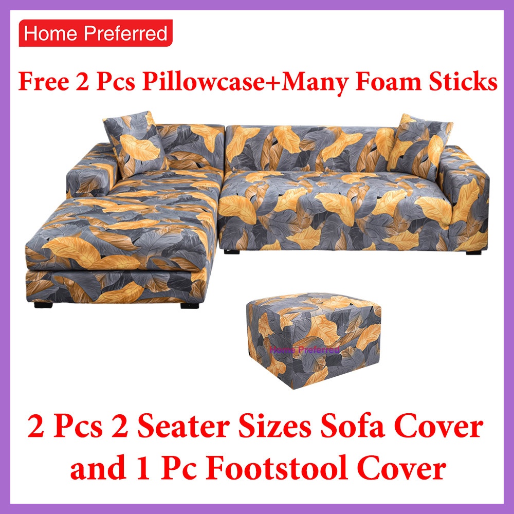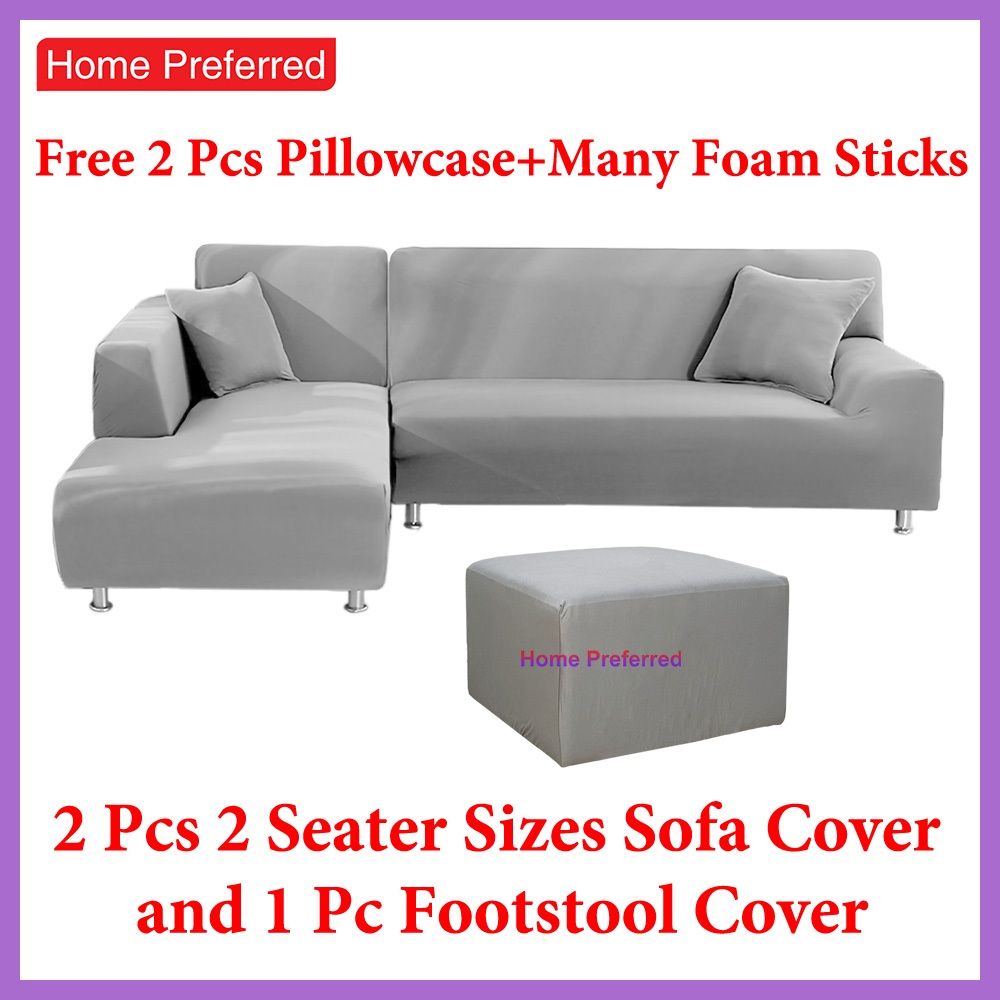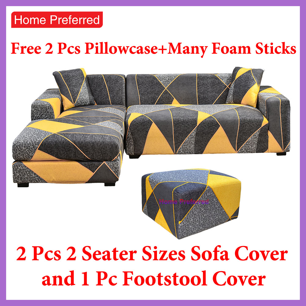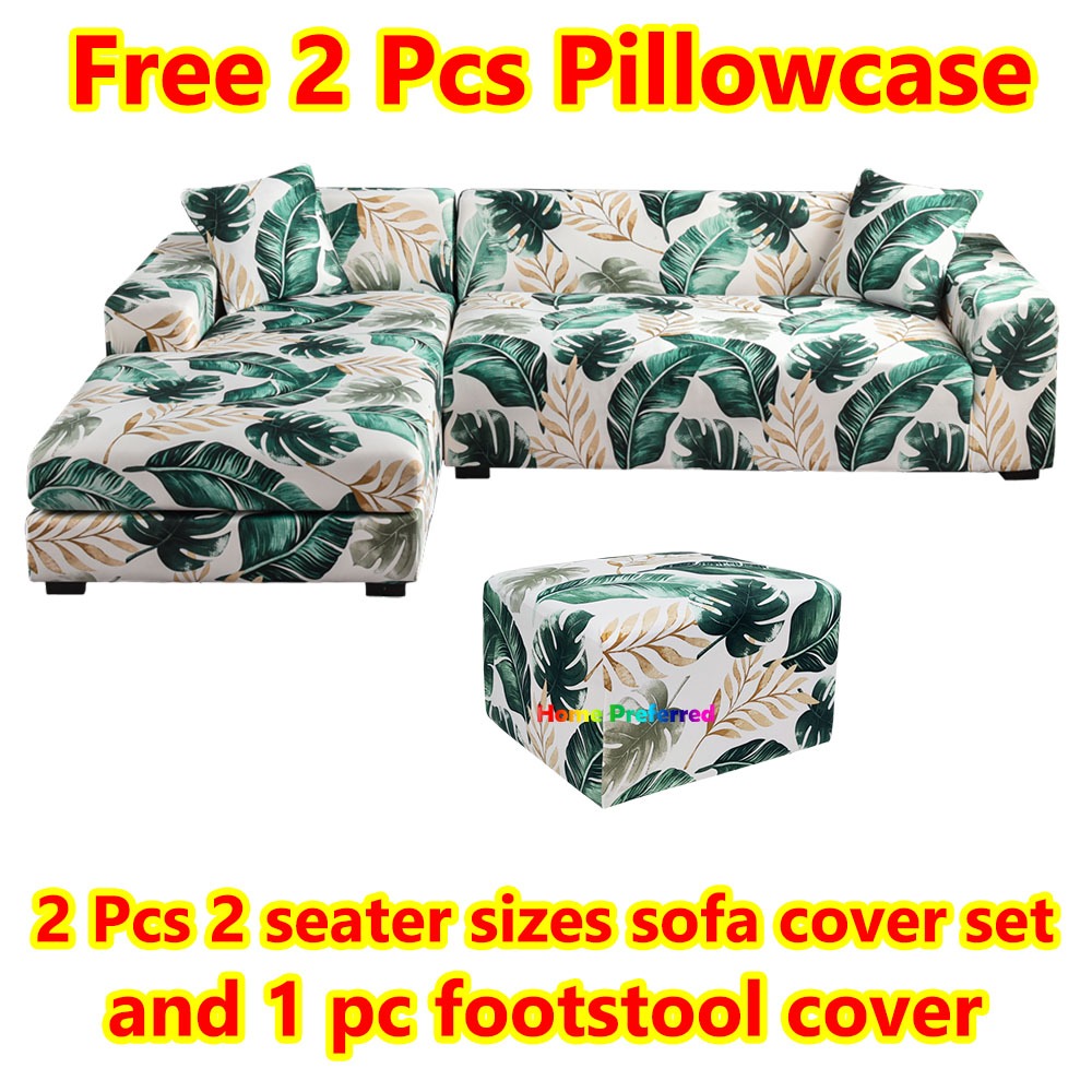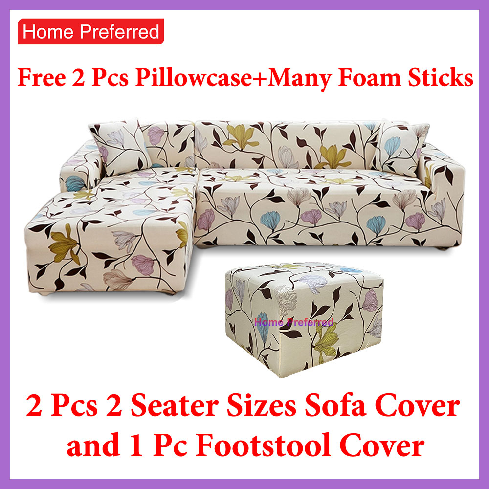 L Shape Sofa Cover Set of 2 Pcs 2 Seater and 1 Piece Footstool Cover Sala Set Cover Sofa Set Cover