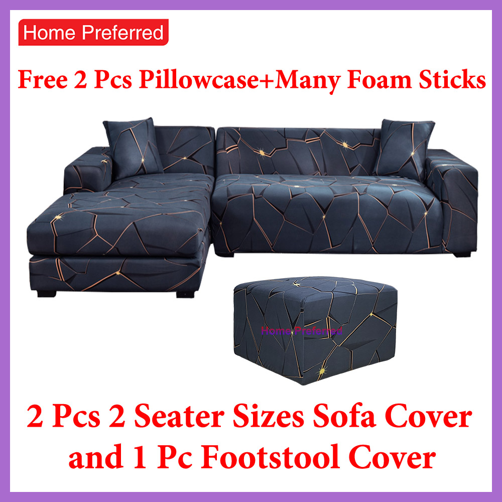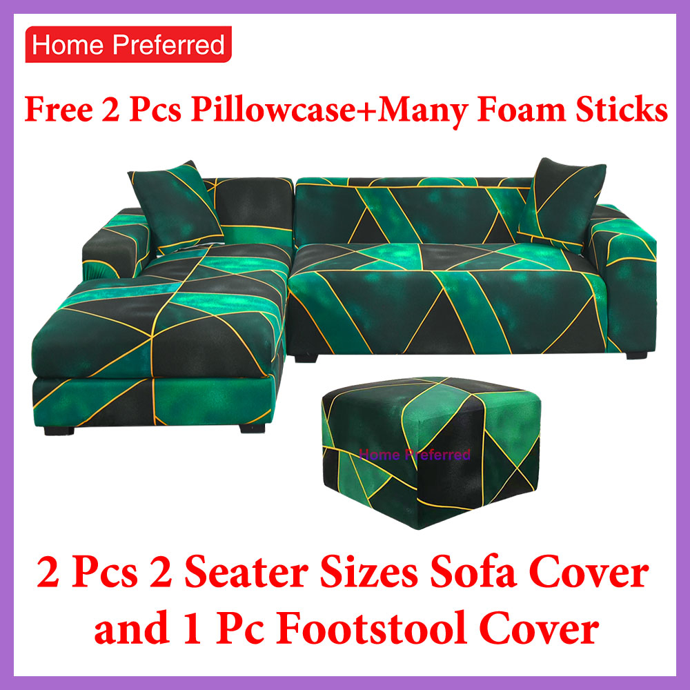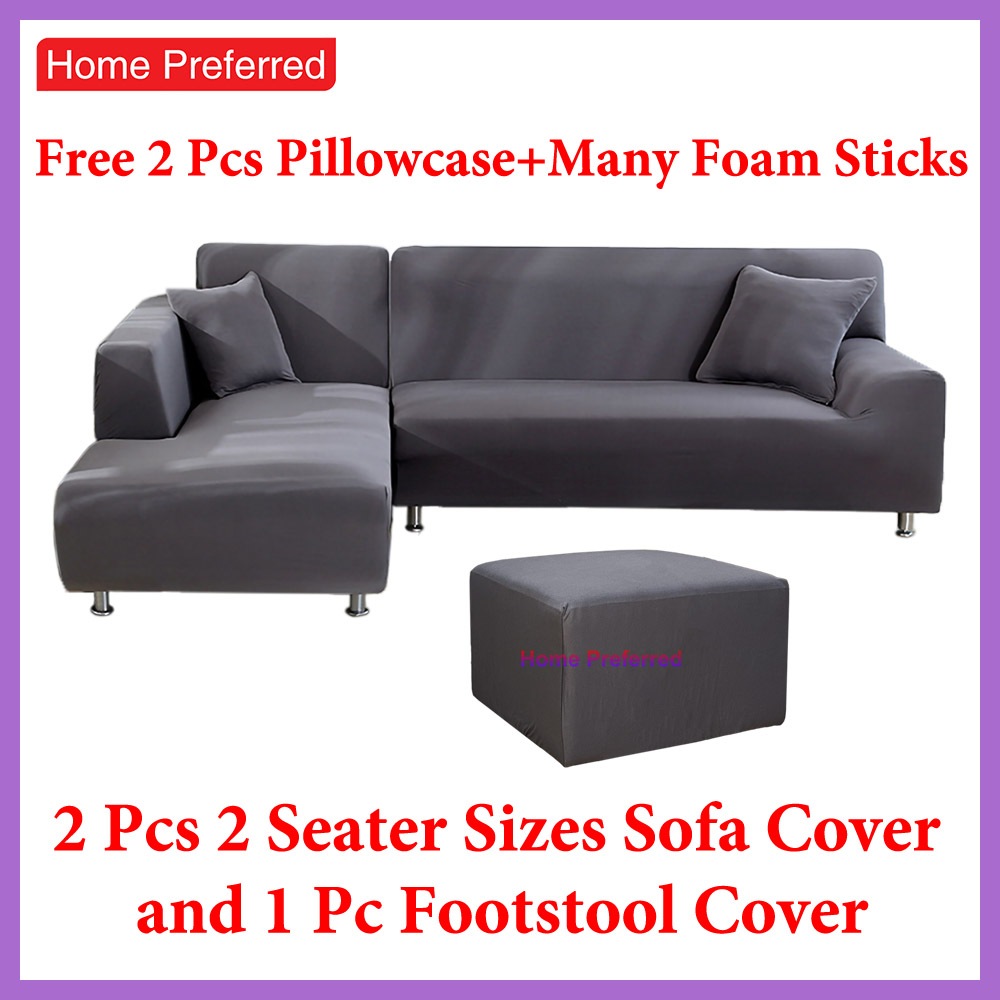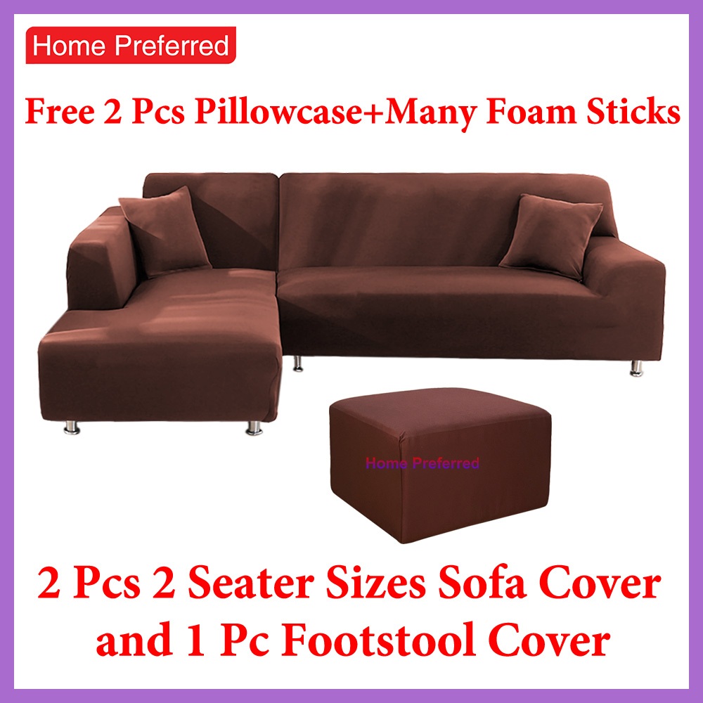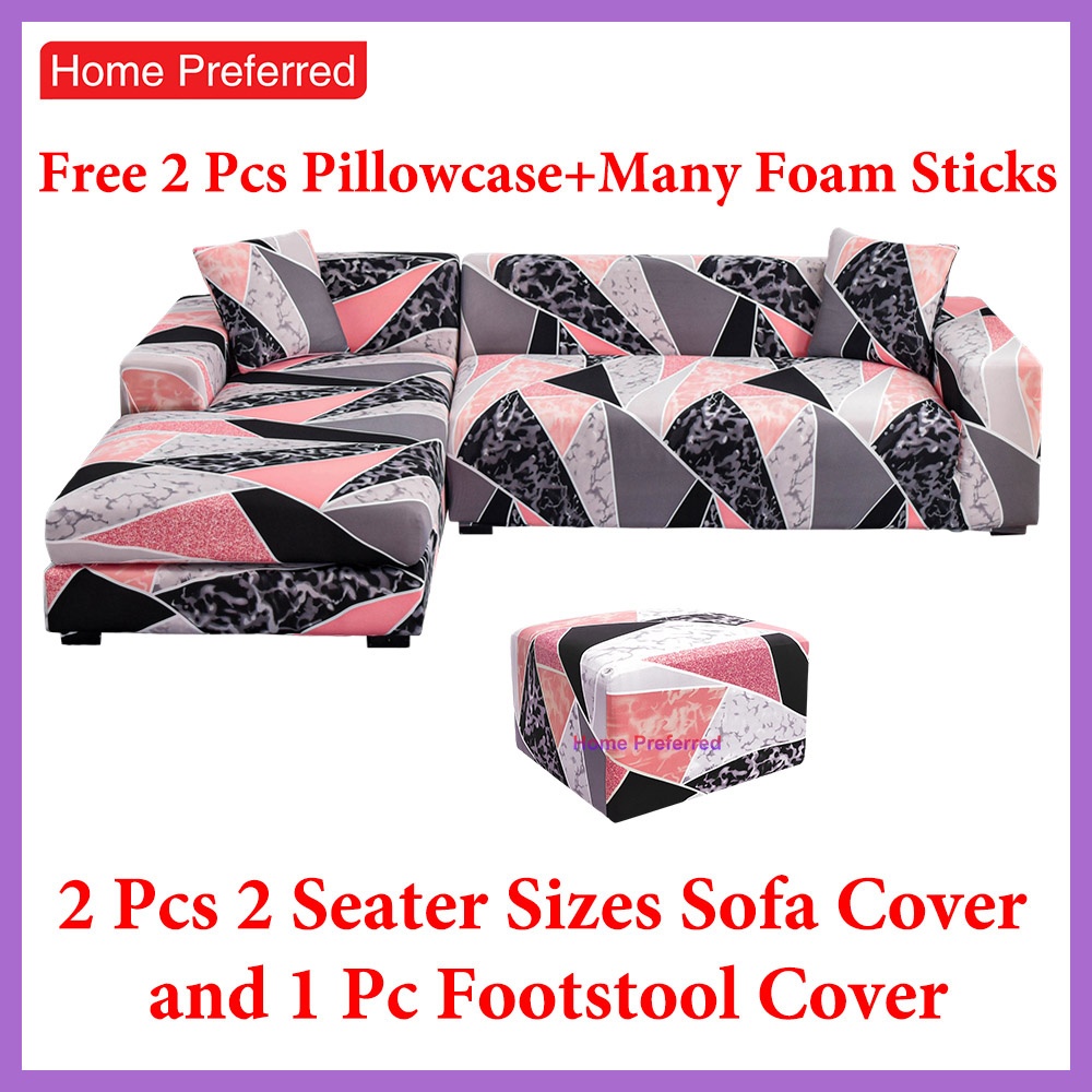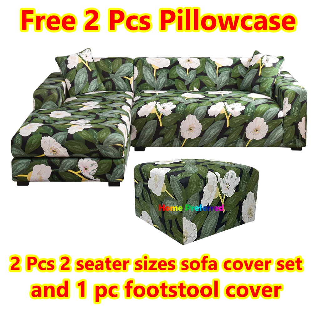 L Shape Sofa Cover Set of 2 Pcs 2 Seater and 1 Piece Footstool Cover Sala Set Cover Sofa Set Cover