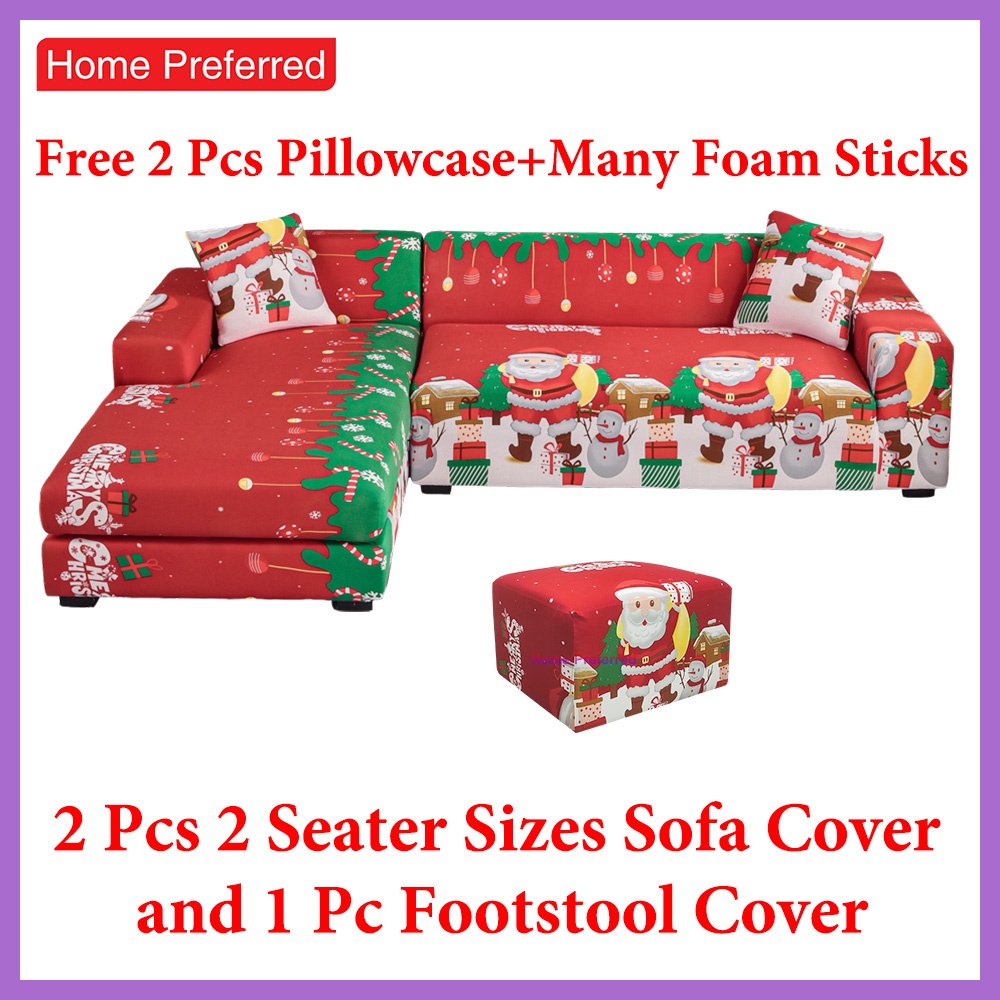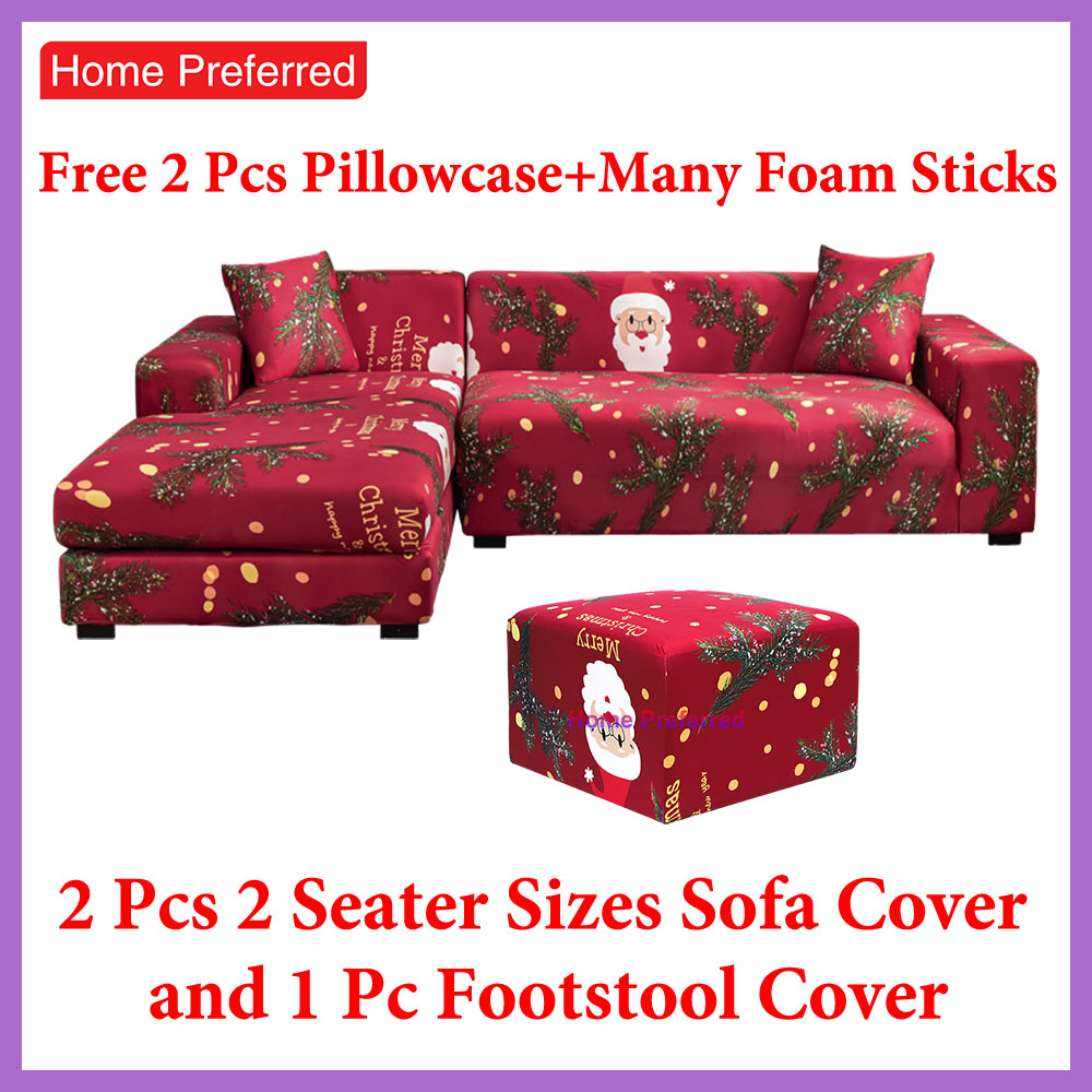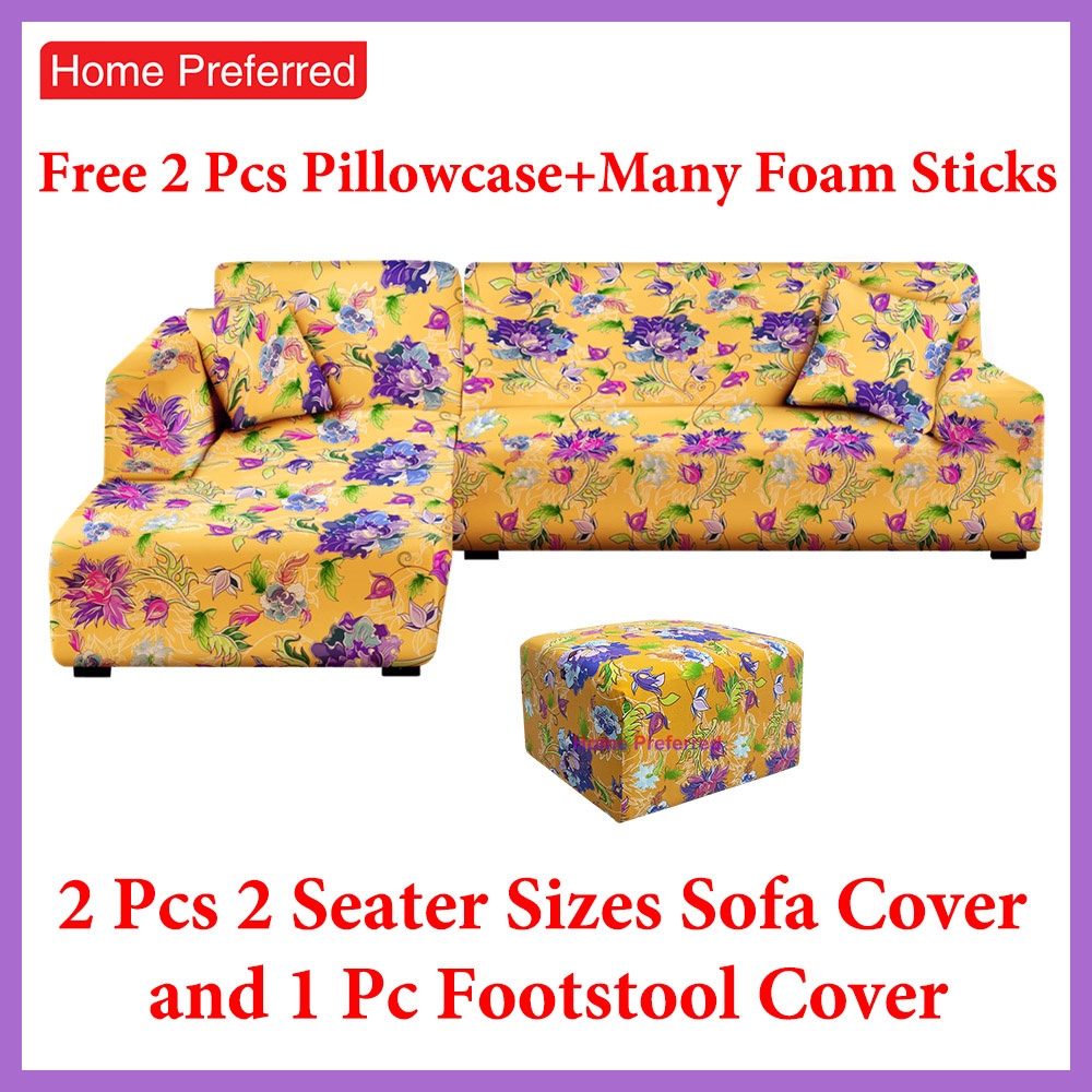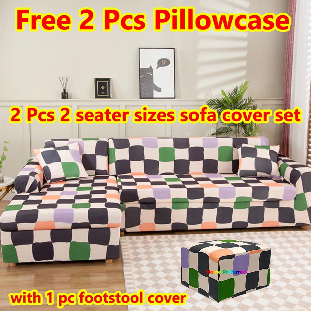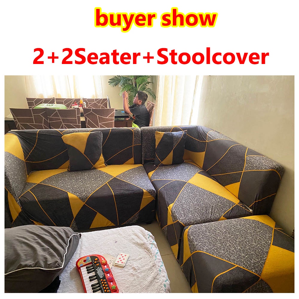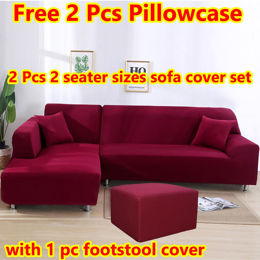 L Shape Sofa Cover Set of 2 Pcs 2 Seater and 1 Piece Footstool Cover Sala Set Cover Sofa Set Cover