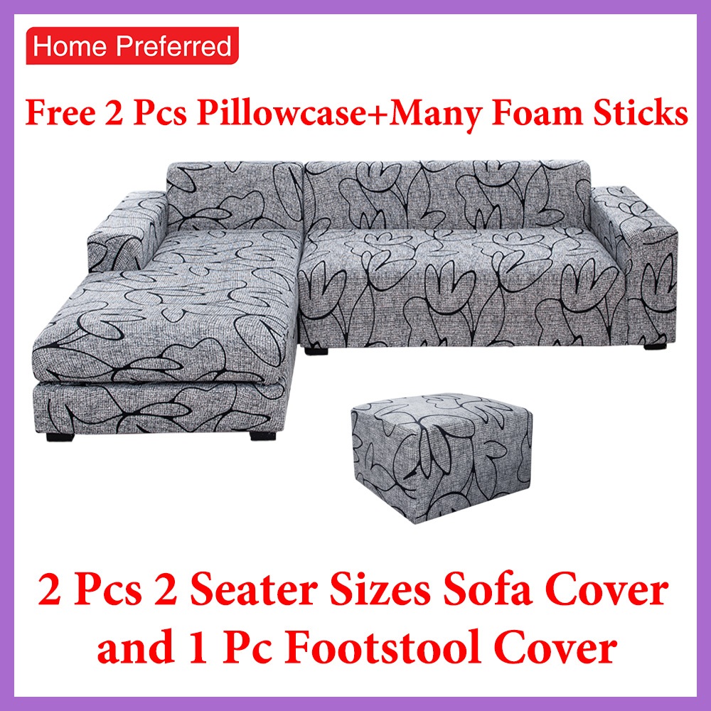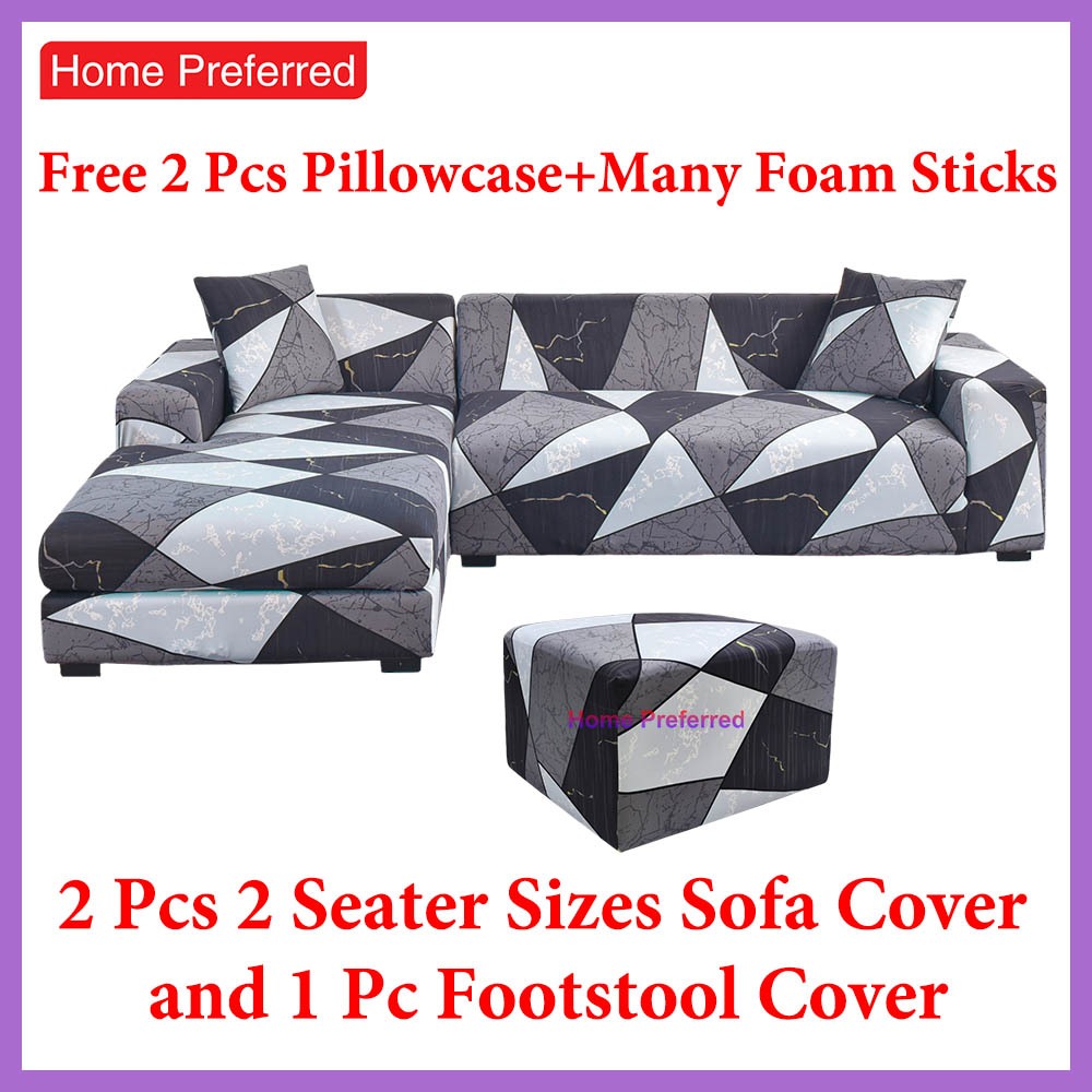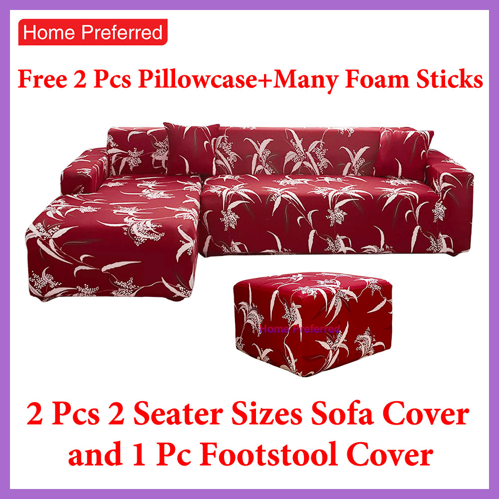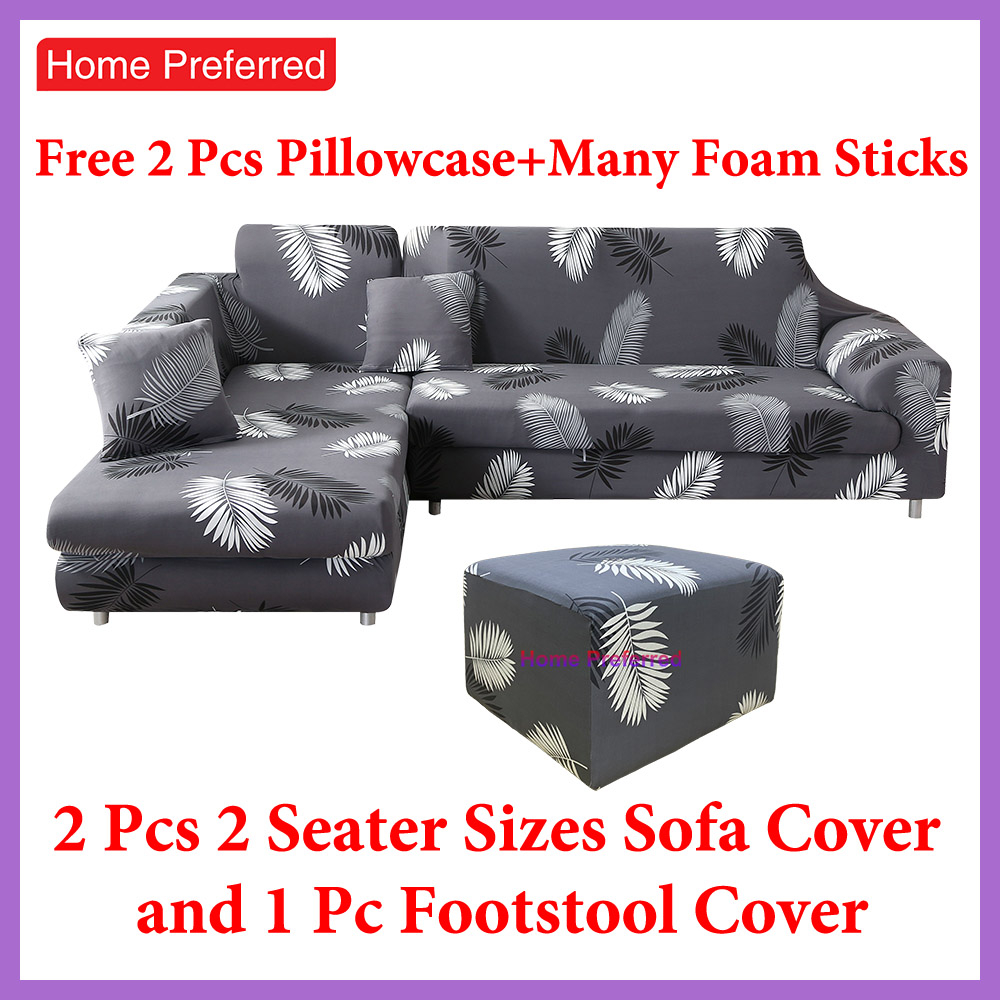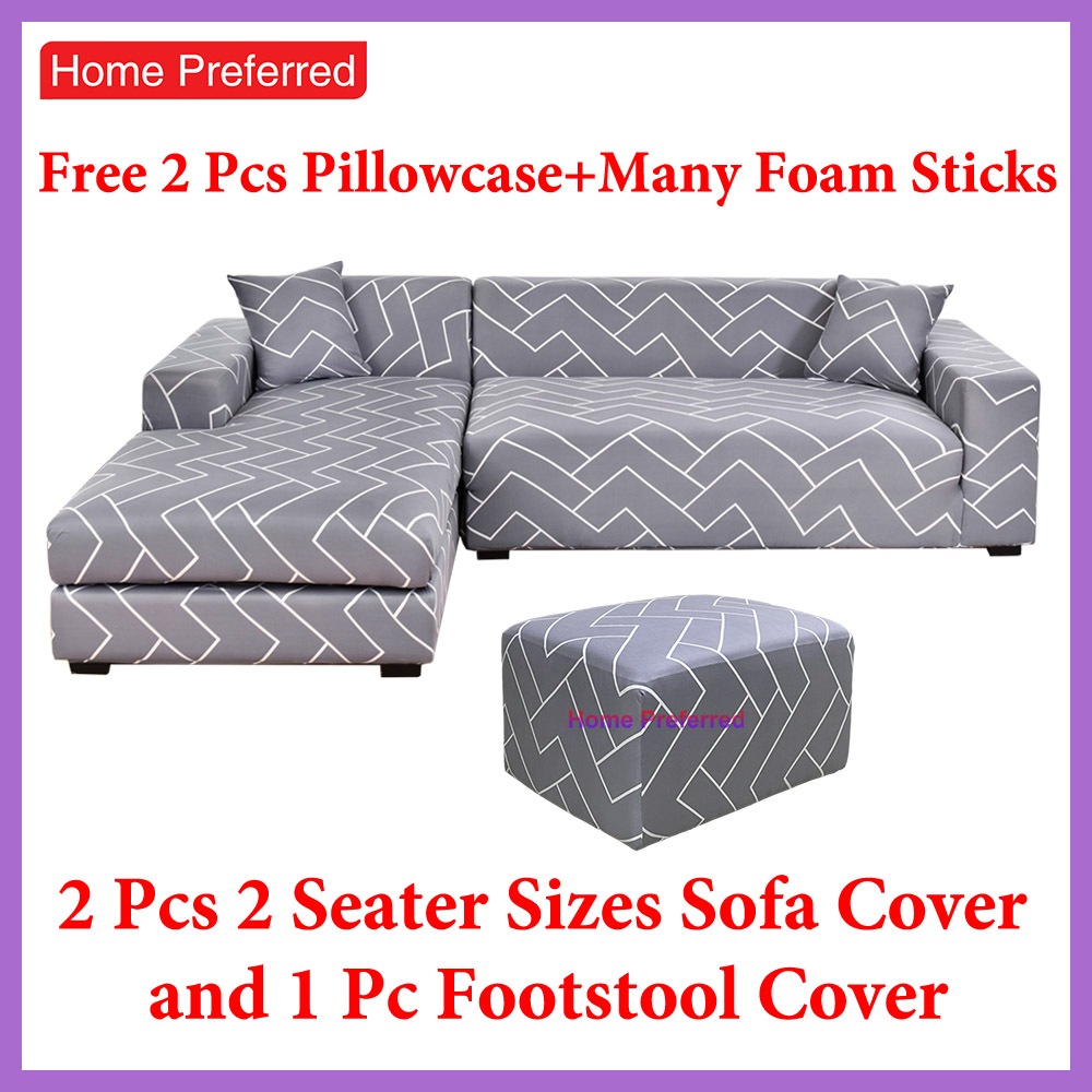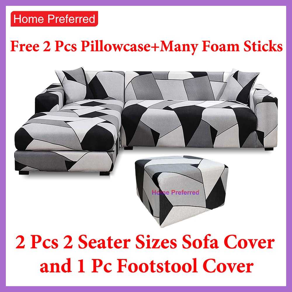 L Shape Sofa Cover Set of 2 Pcs 2 Seater and 1 Piece Footstool Cover Sala Set Cover Sofa Set Cover