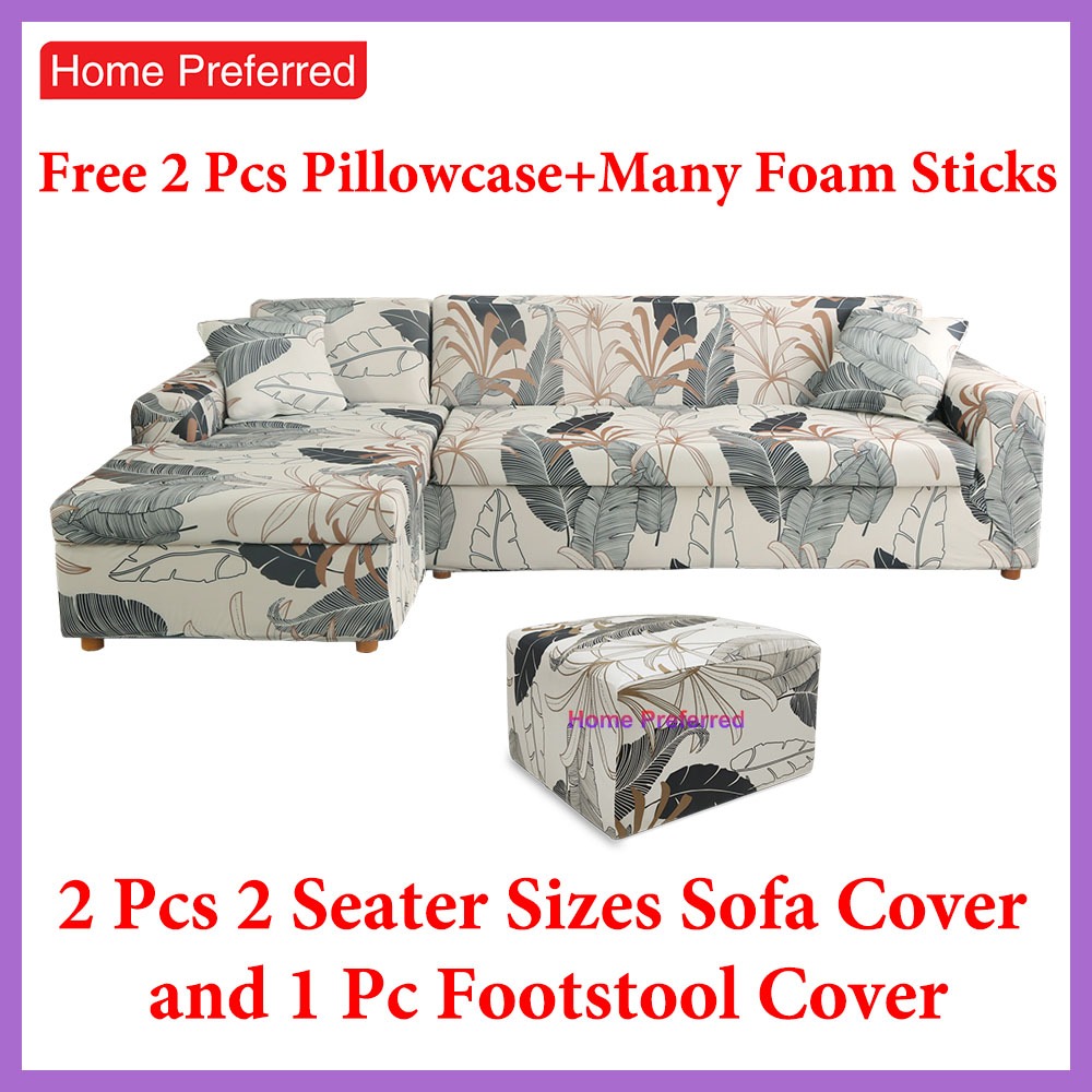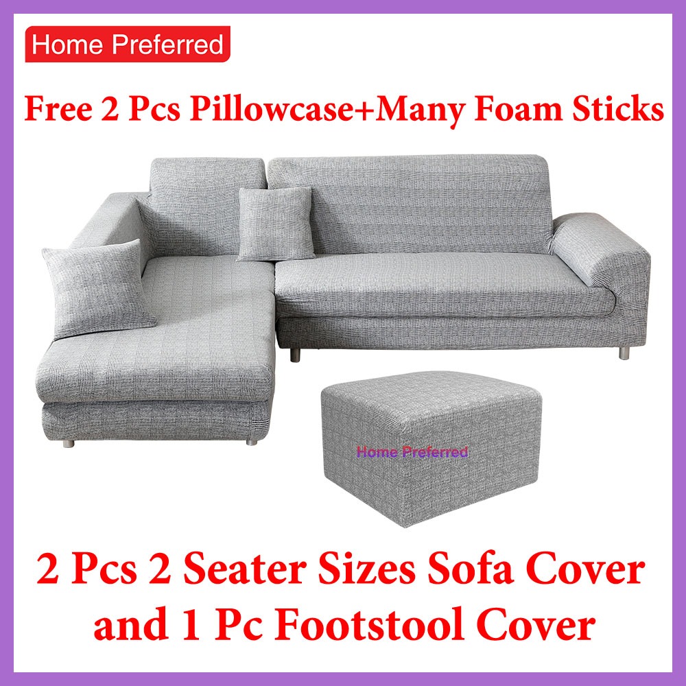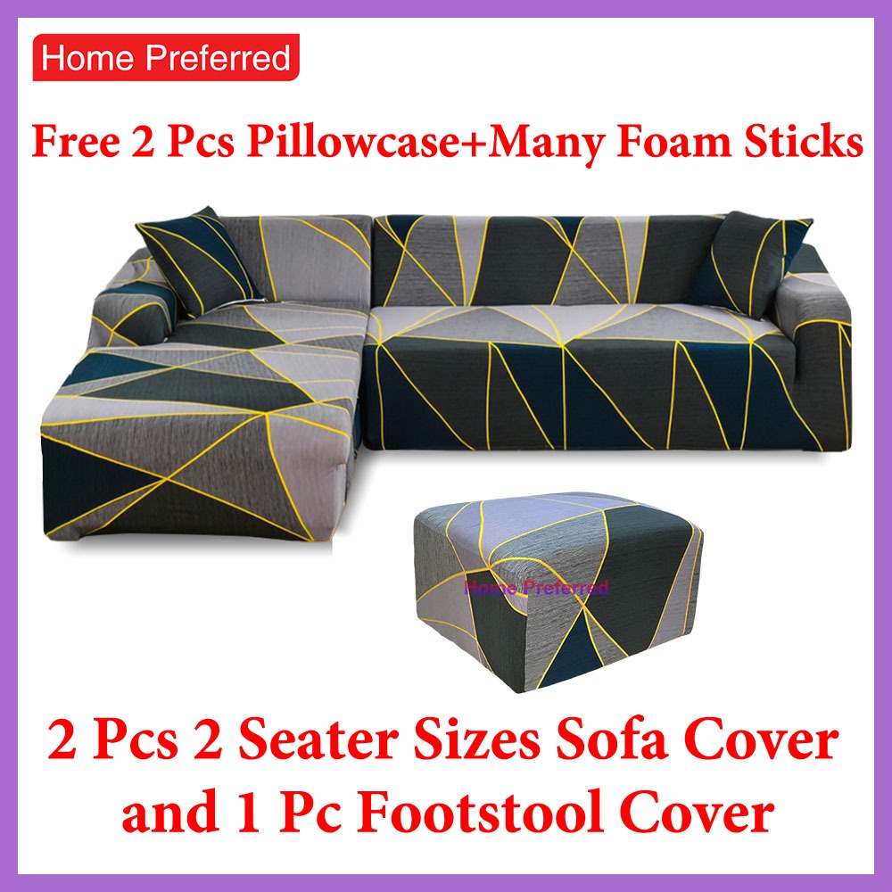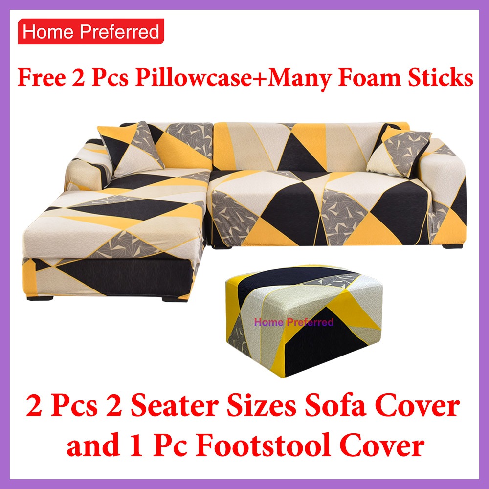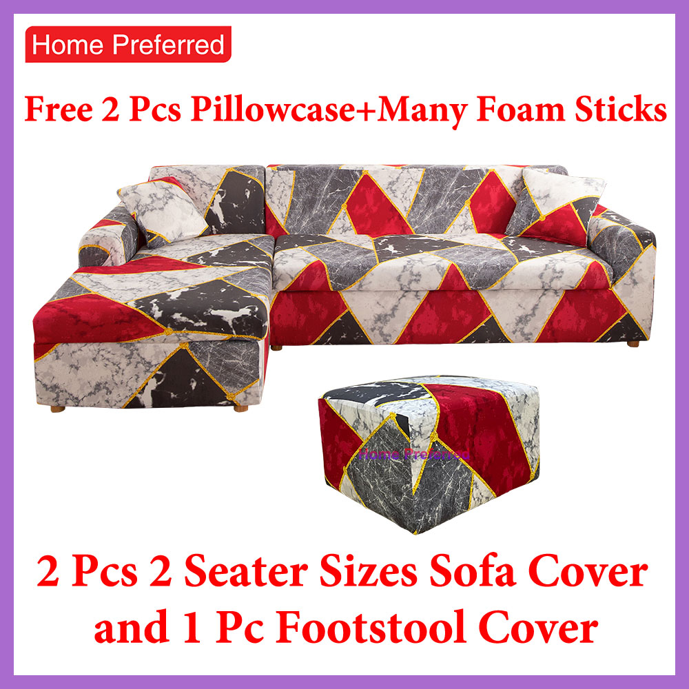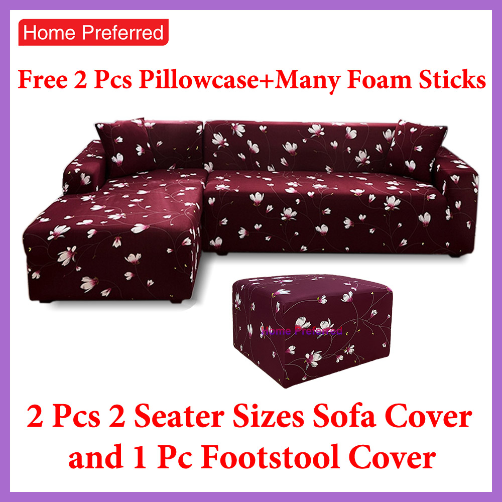 L Shape Sofa Cover Set of 2 Pcs 2 Seater and 1 Piece Footstool Cover Sala Set Cover Sofa Set Cover