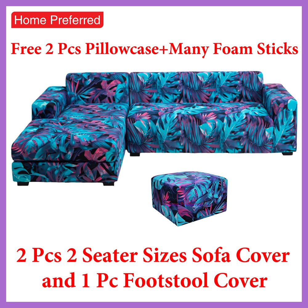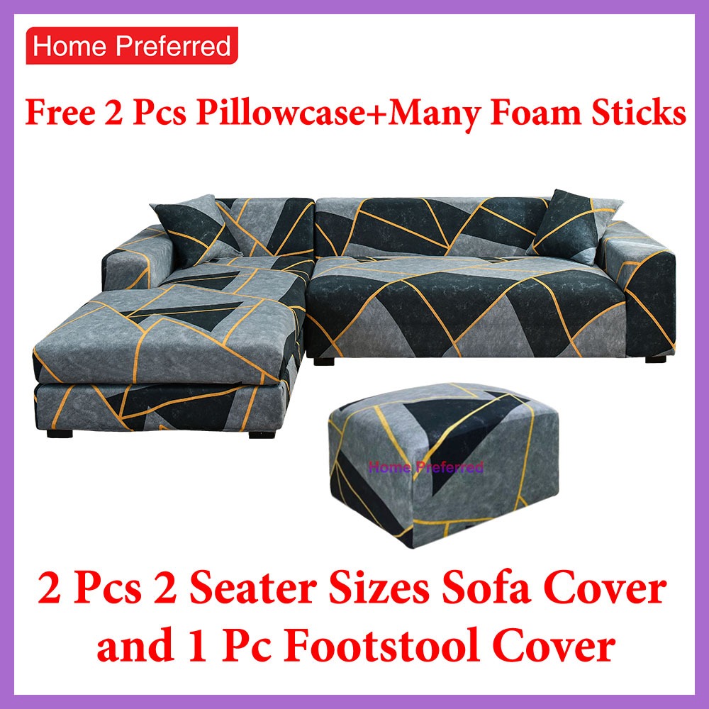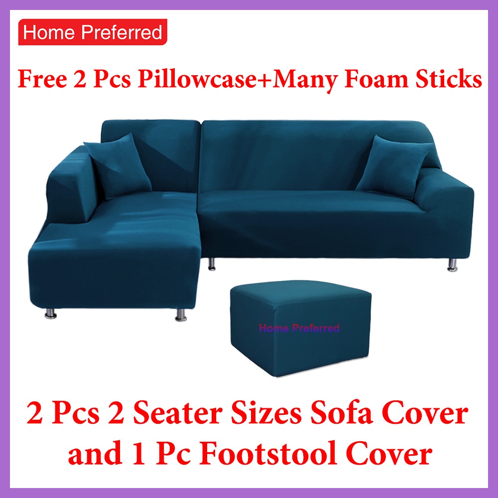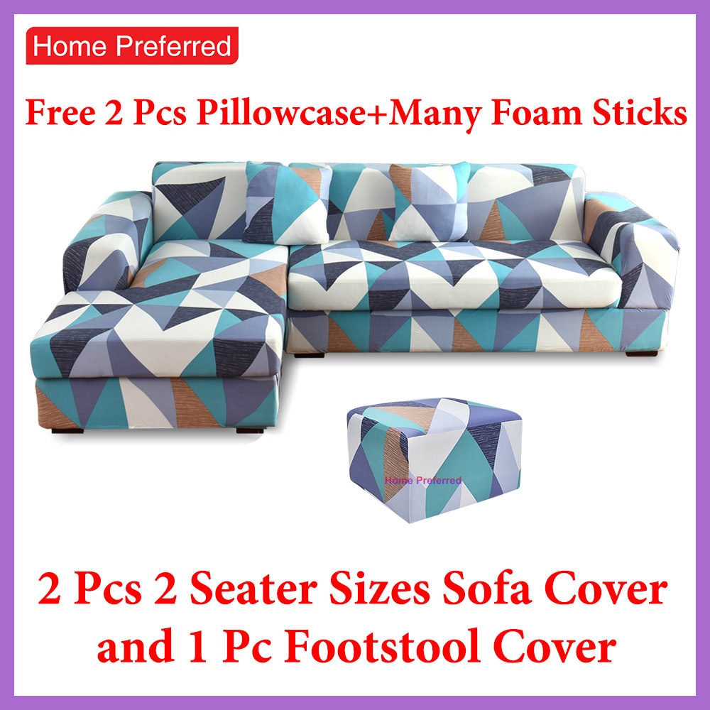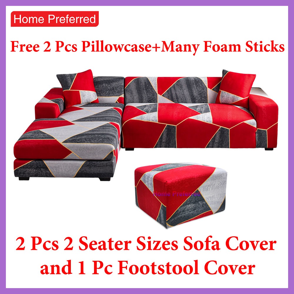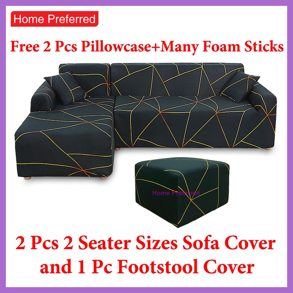 L Shape Sofa Cover Set of 2 Pcs 2 Seater and 1 Piece Footstool Cover Sala Set Cover Sofa Set Cover