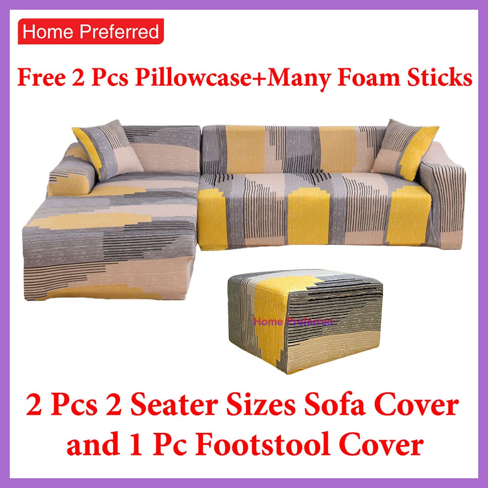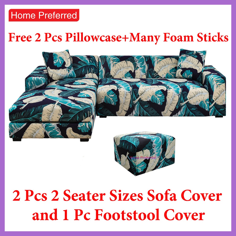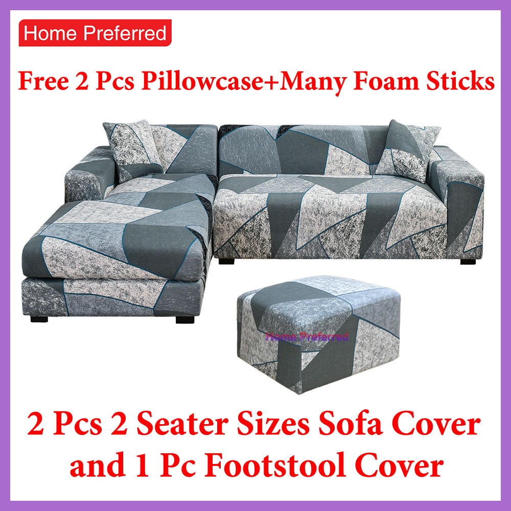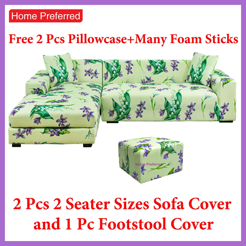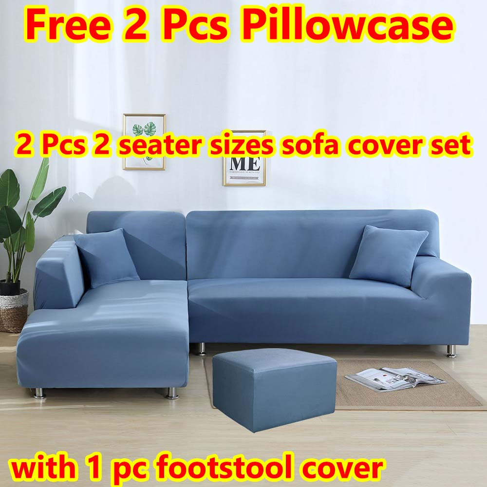 L Shape Sofa Cover Set of 2 Pcs 2 Seater and 1 Piece Footstool Cover Sala Set Cover Sofa Set Cover