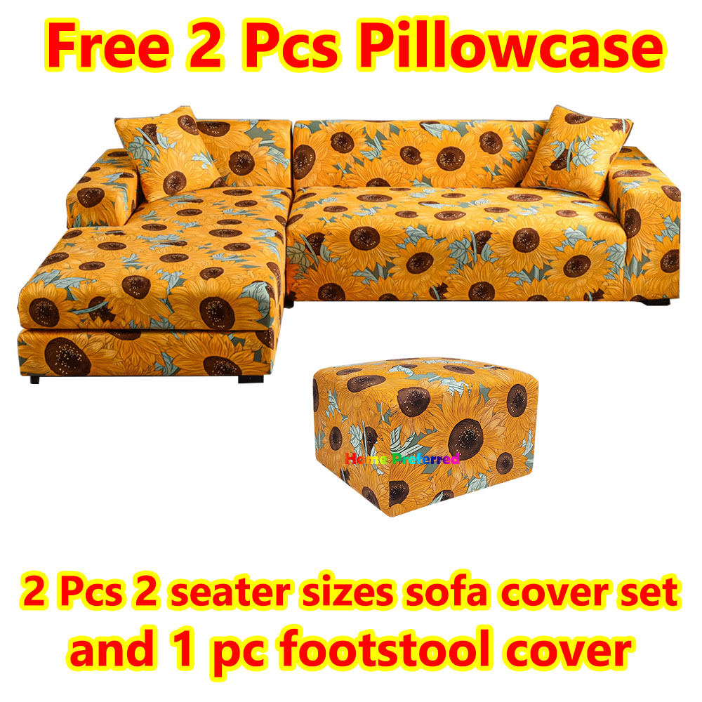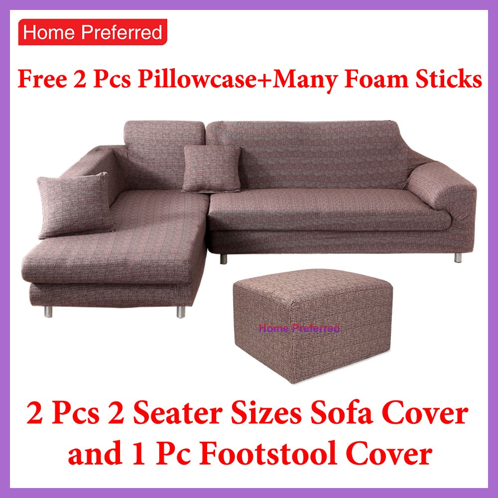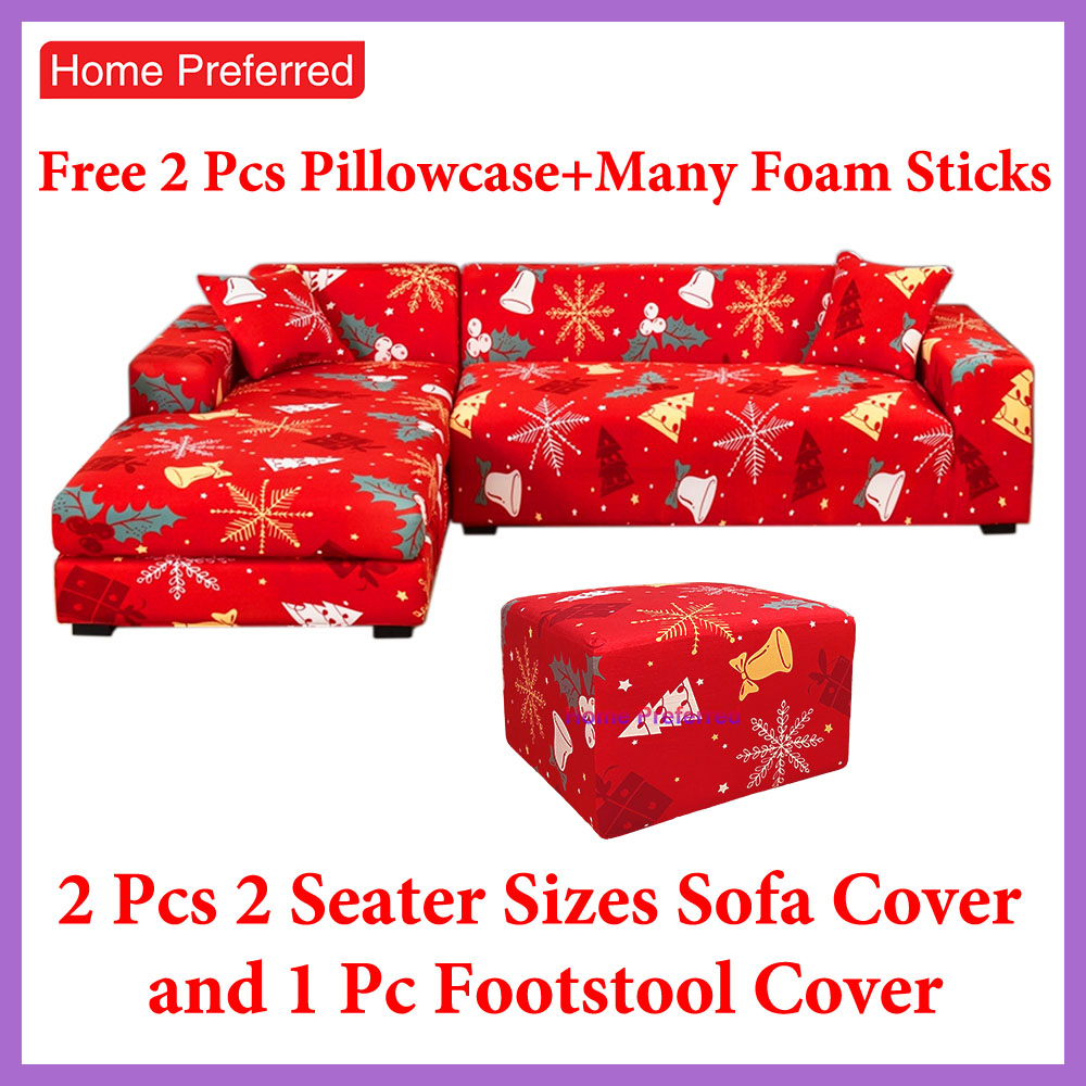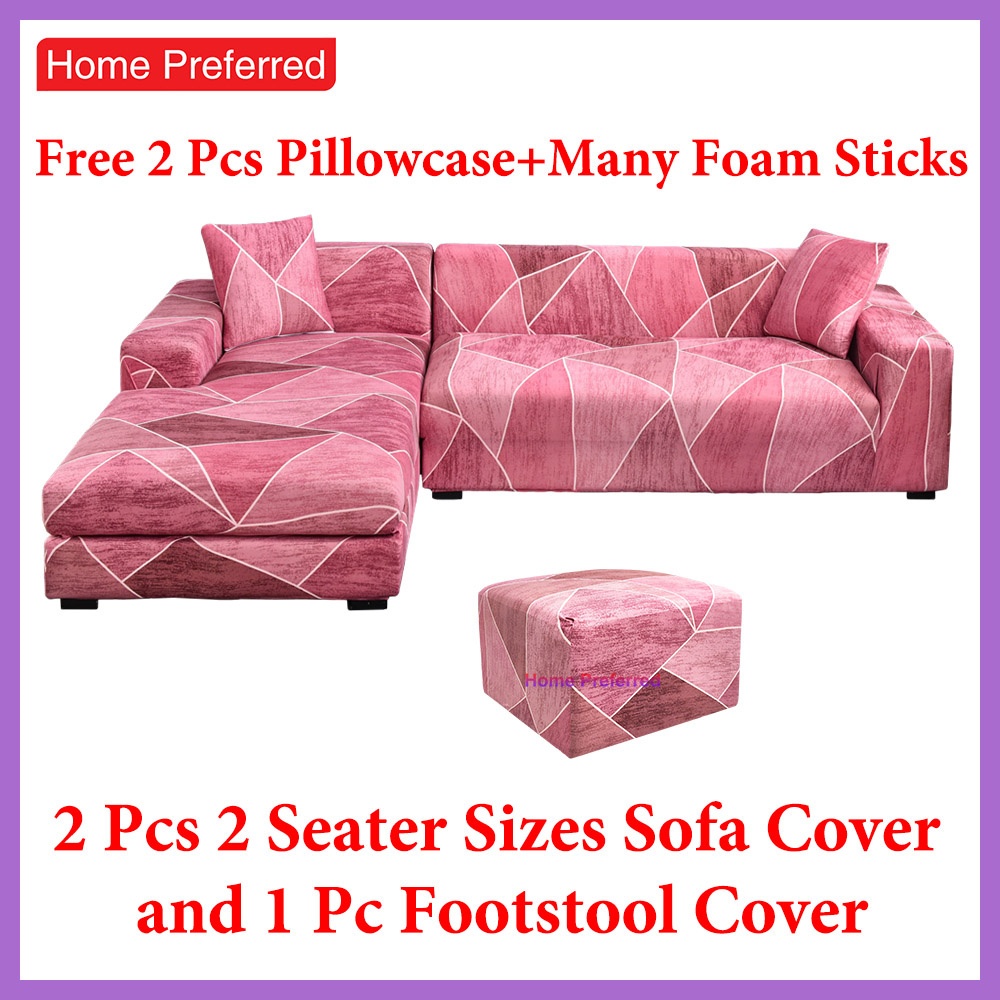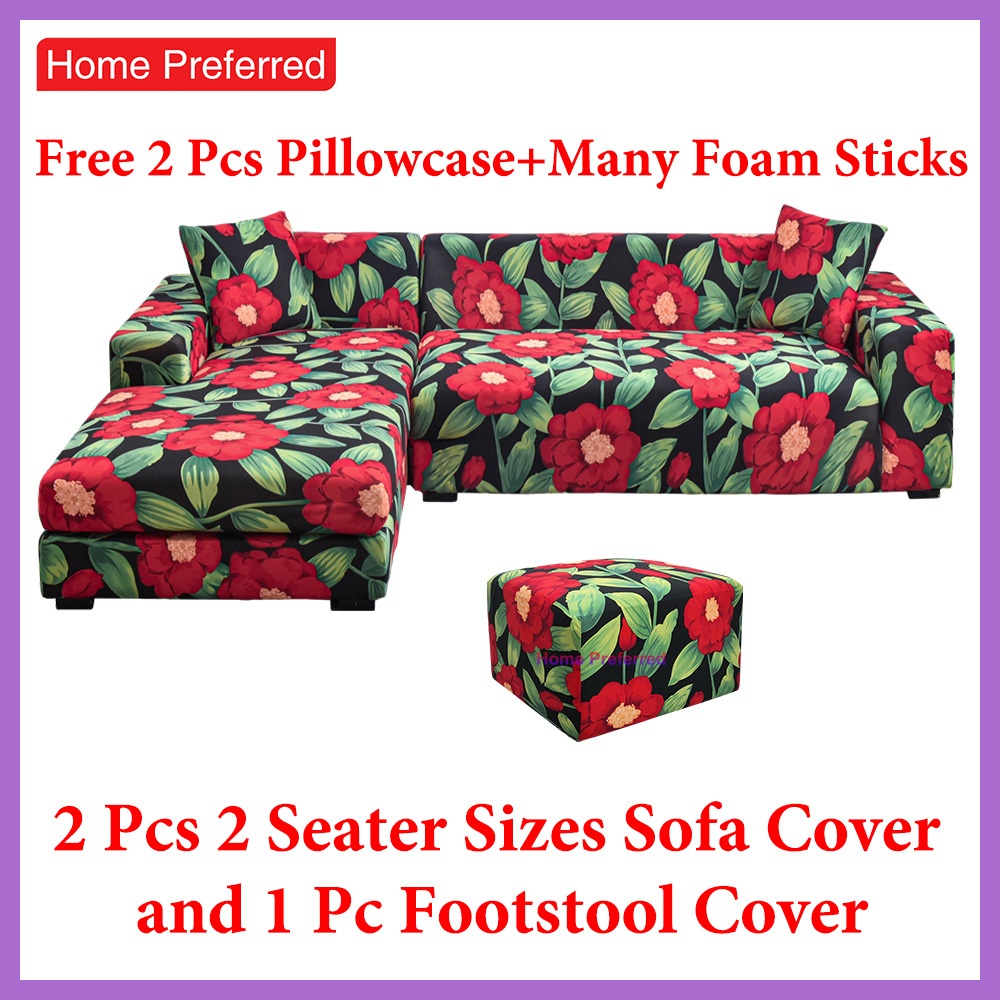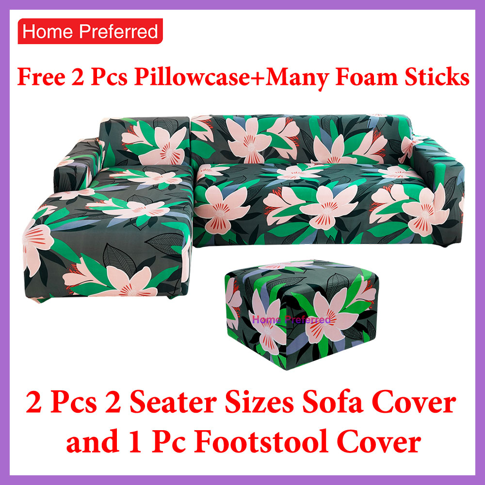 L Shape Sofa Cover Set of 2 Pcs 2 Seater and 1 Piece Footstool Cover Sala Set Cover Sofa Set Cover