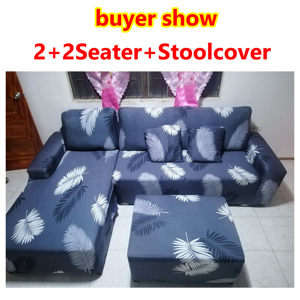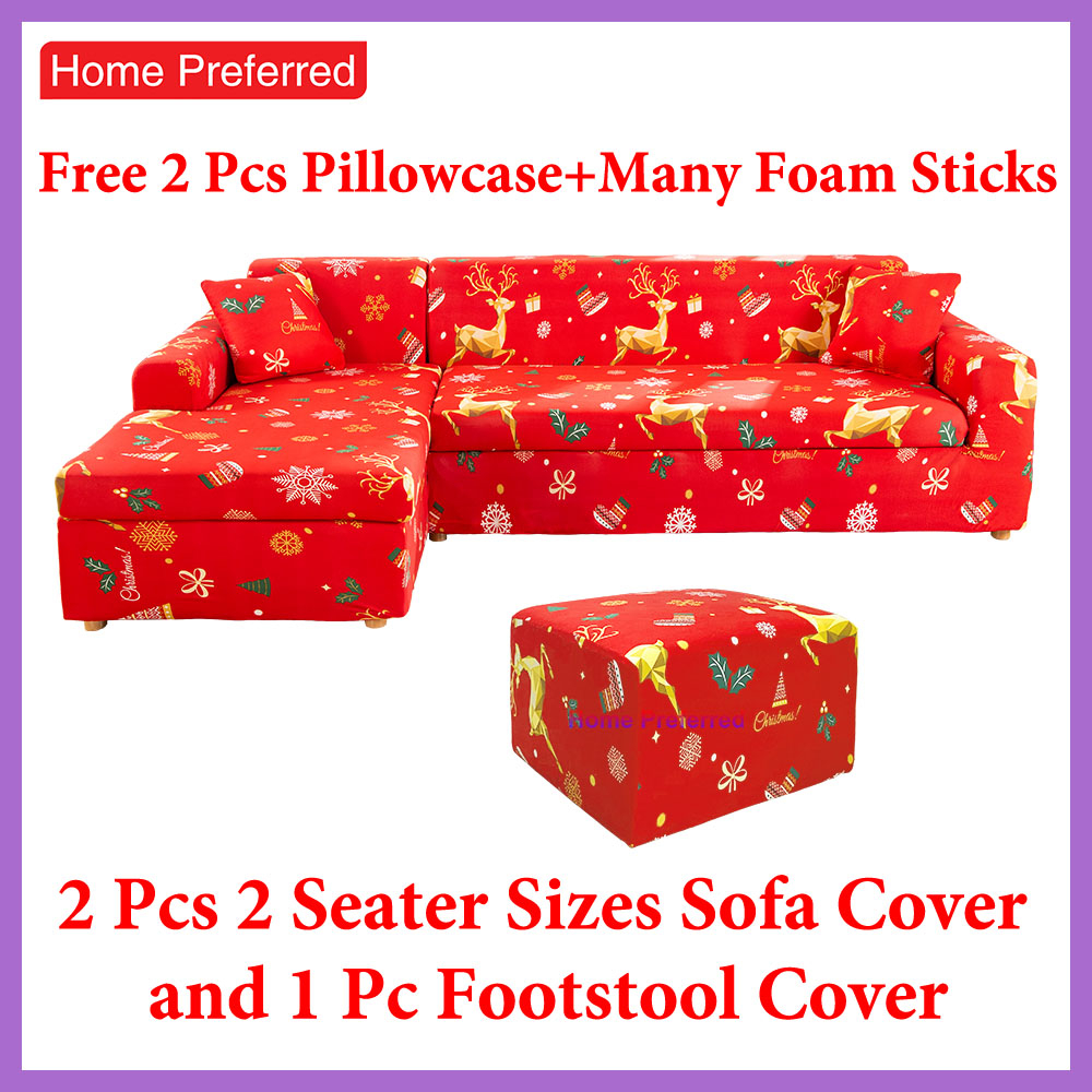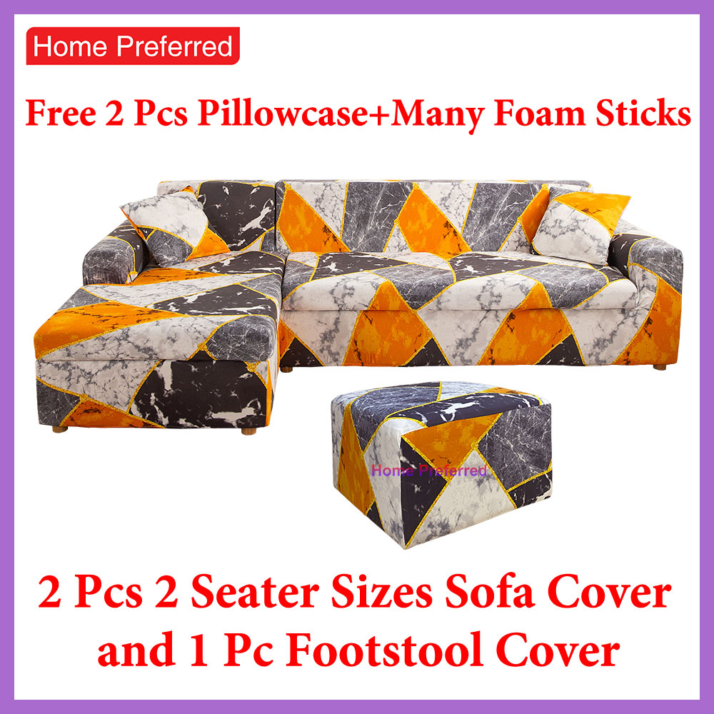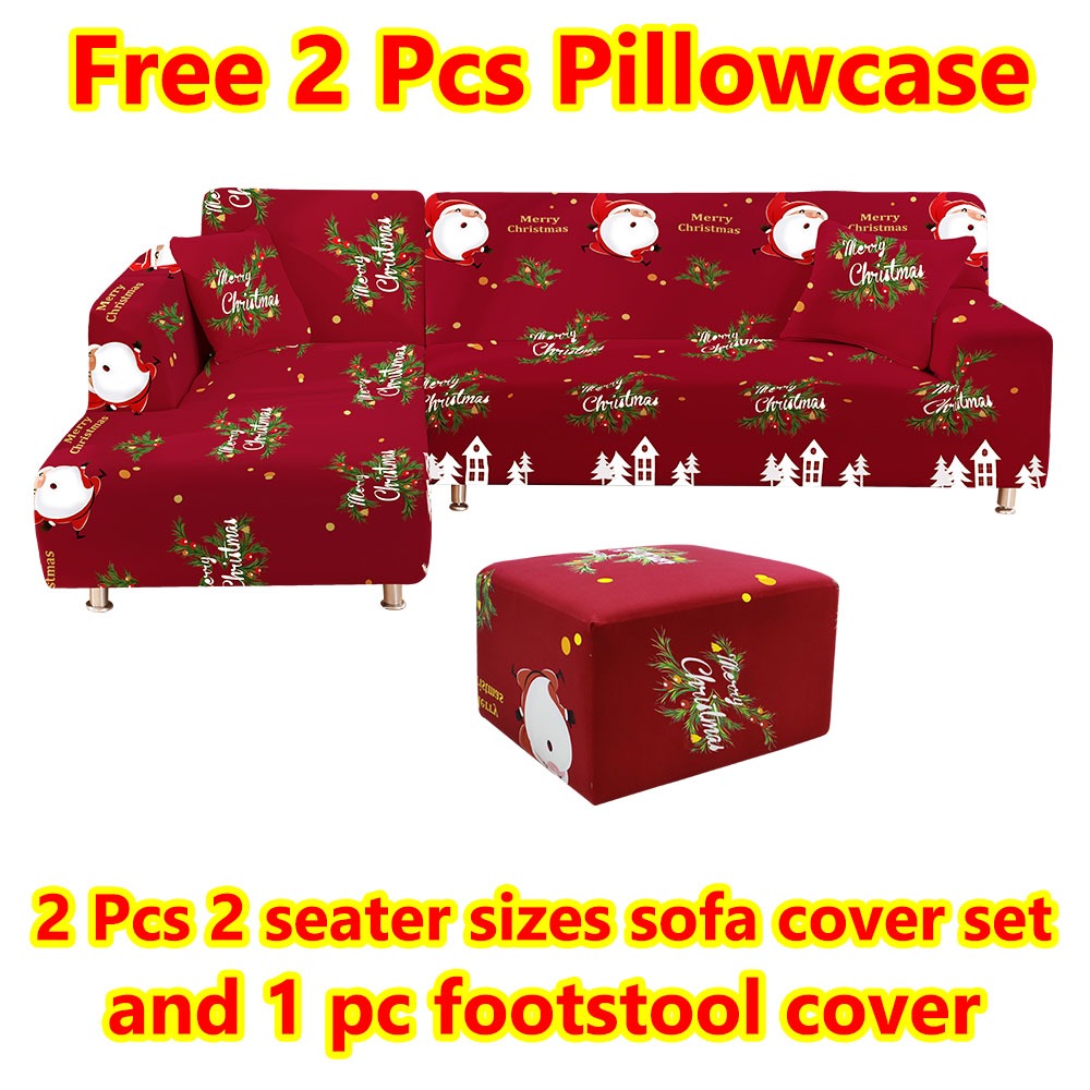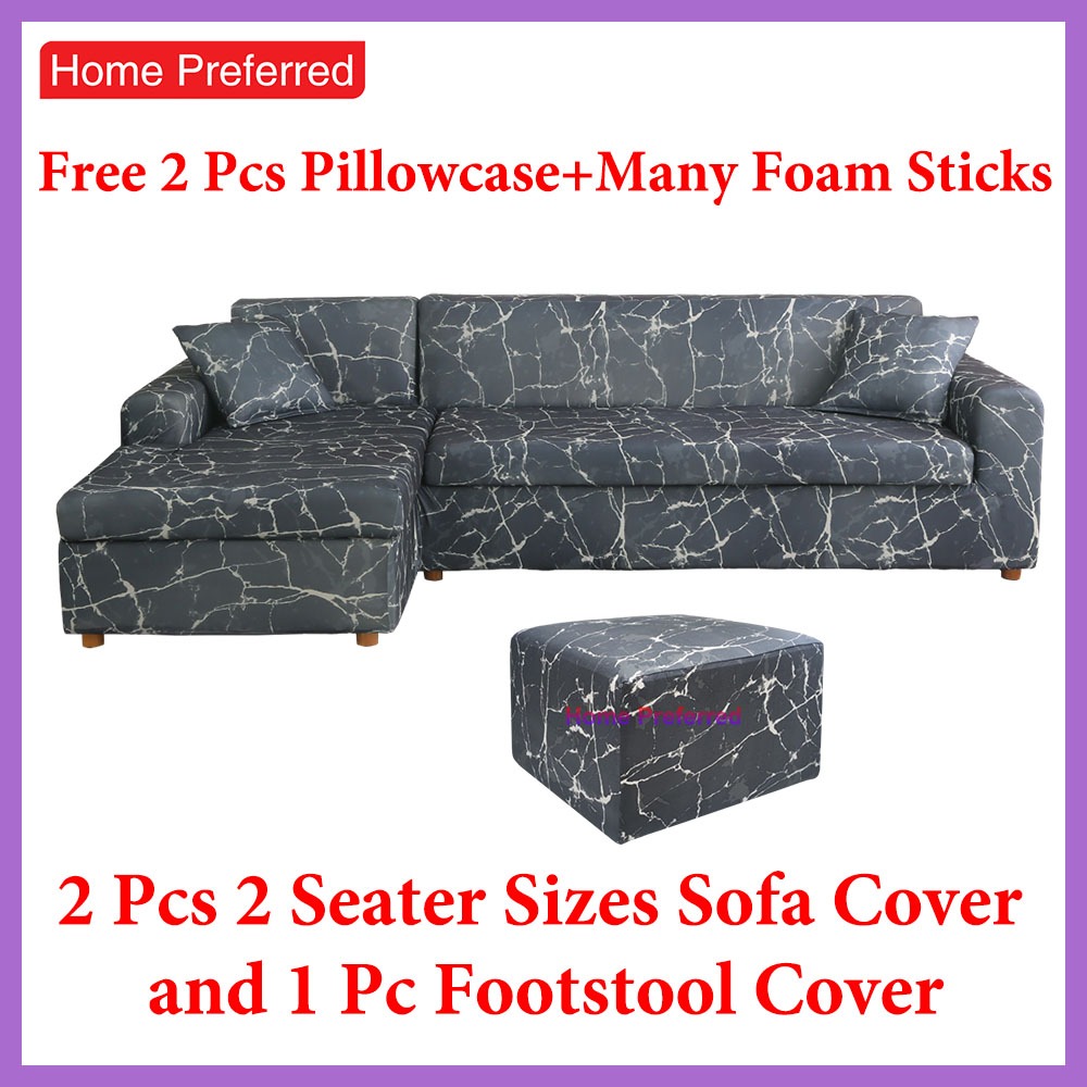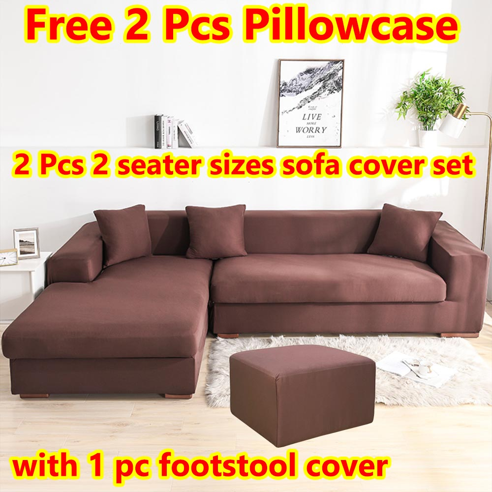 L Shape Sofa Cover Set of 2 Pcs 2 Seater and 1 Piece Footstool Cover Sala Set Cover Sofa Set Cover
