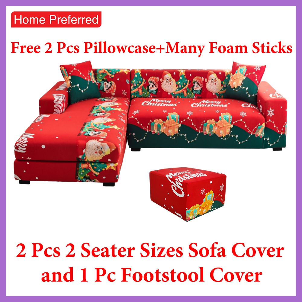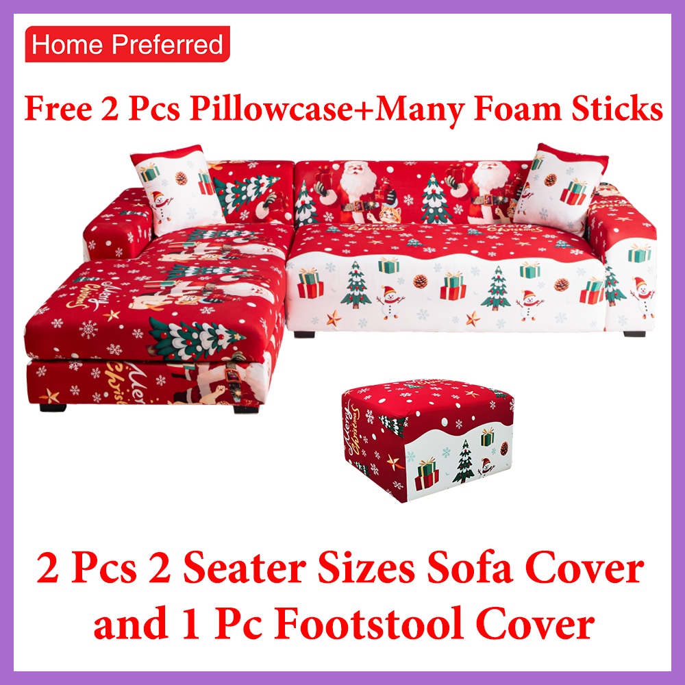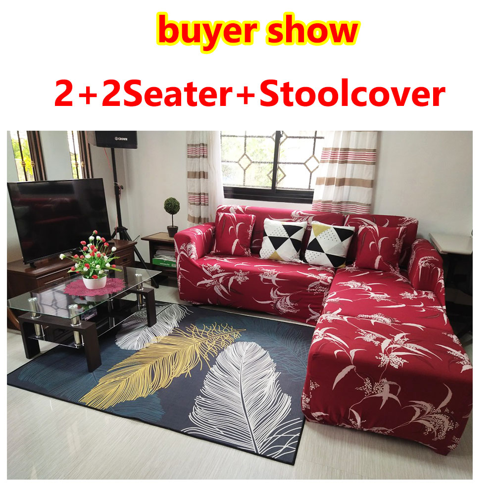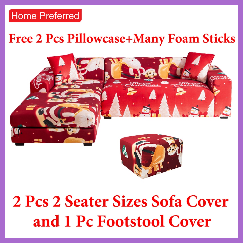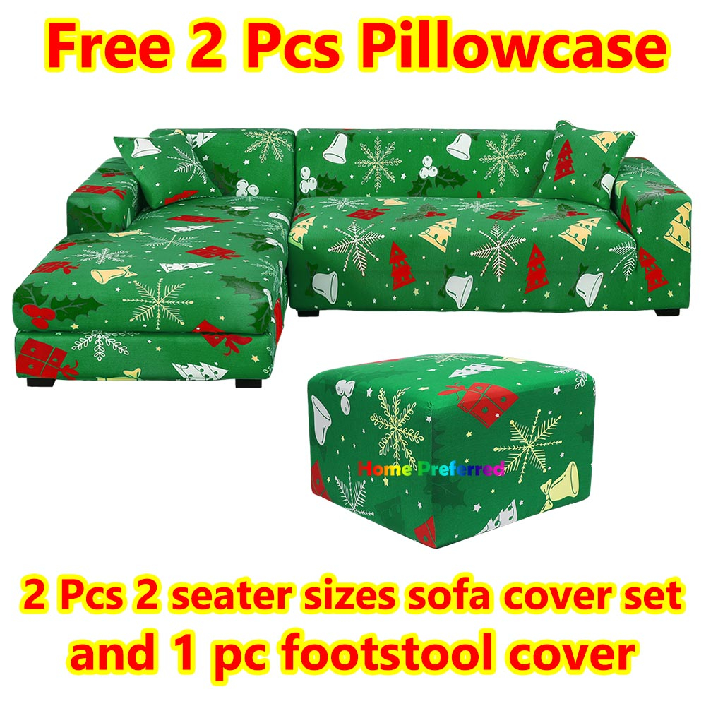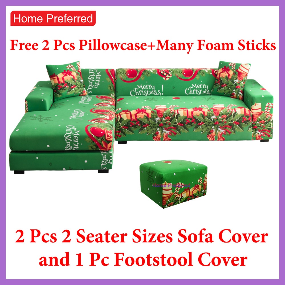 L Shape Sofa Cover Set of 2 Pcs 2 Seater and 1 Piece Footstool Cover Sala Set Cover Sofa Set Cover