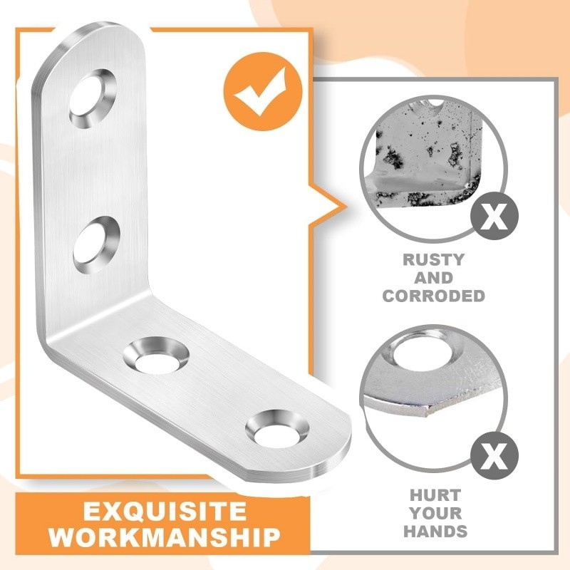 L Shaped Corner Brackets 90 Degree Right Angle Stainless Steel Bracket Fastener Cabinet Accesories