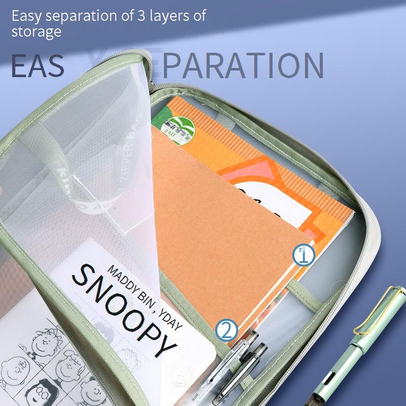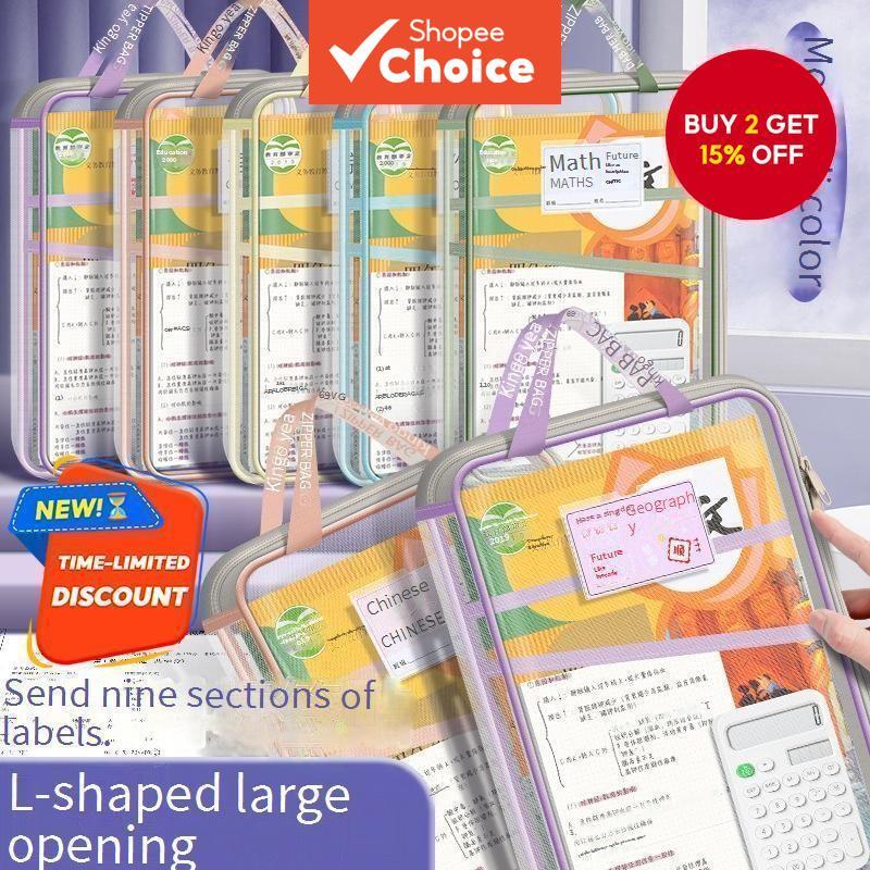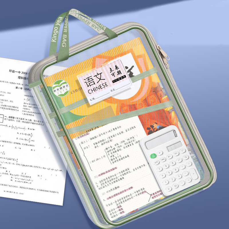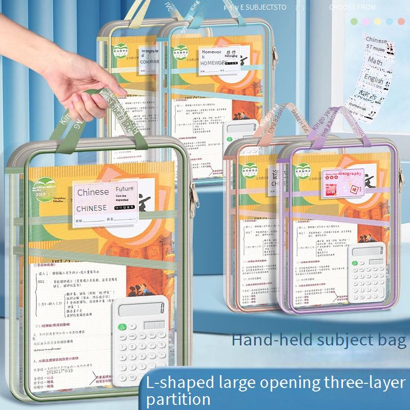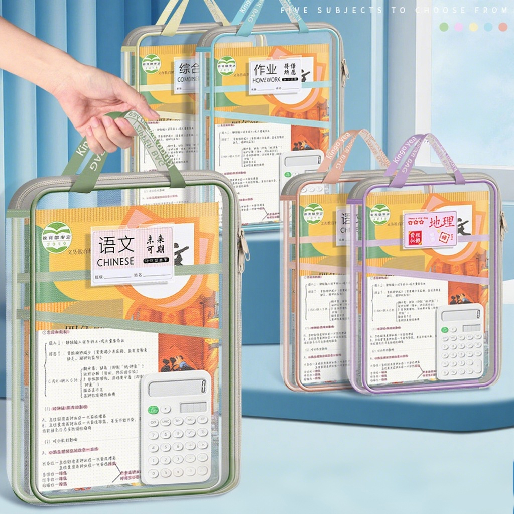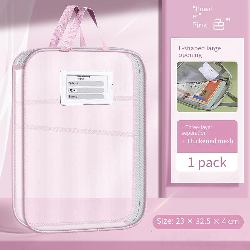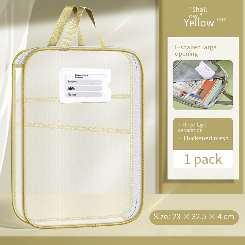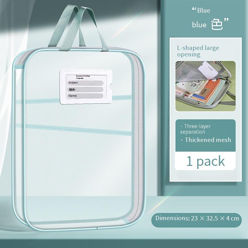 L-Shaped Subject Bag Transparent Mesh Document Bag Zippered Large Opening Student Exam Handbag