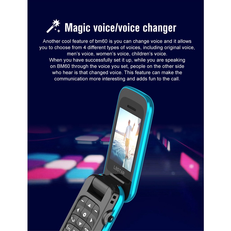 L8Star BM60 Telephone Small Mini Flip Cell Phone Mp3 Magic Handphone Voice Changer Bluetooth Keypad Phone Dialer Music Cellphone Bm60 Mobile Phone
