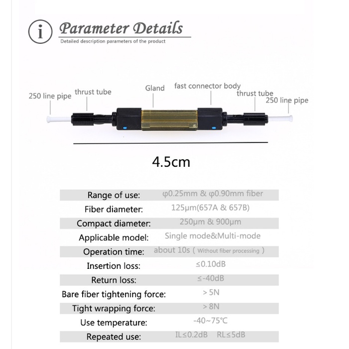 L925B Optical Fiber Mechanical Splice FTTH Fiber Optic Quick Connector for single mode