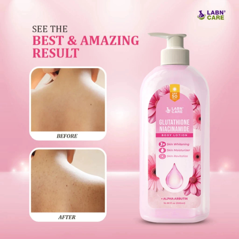 LABN' CARE Glutathione Niacinamide Body Lotion SPF 50 3X Whitening Lightweight Body Lotion 500Ml