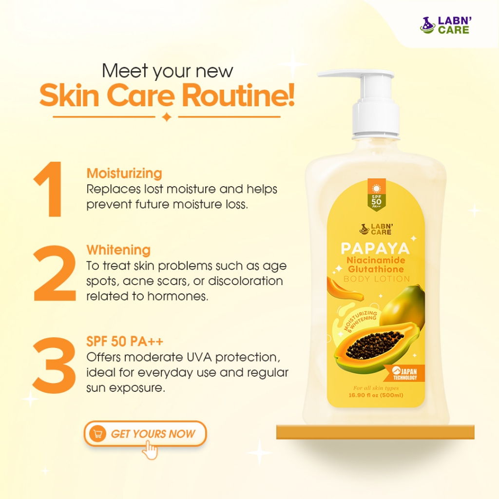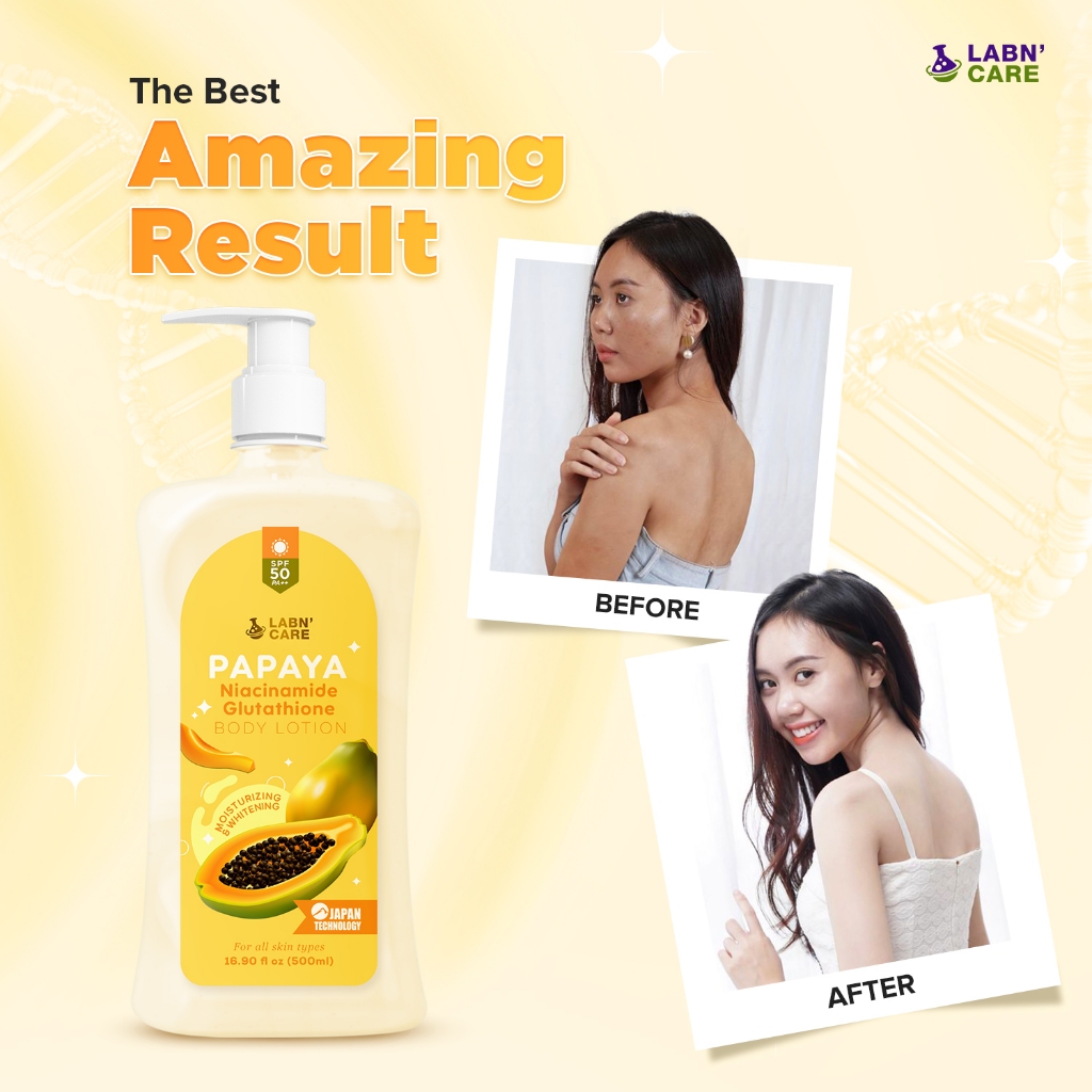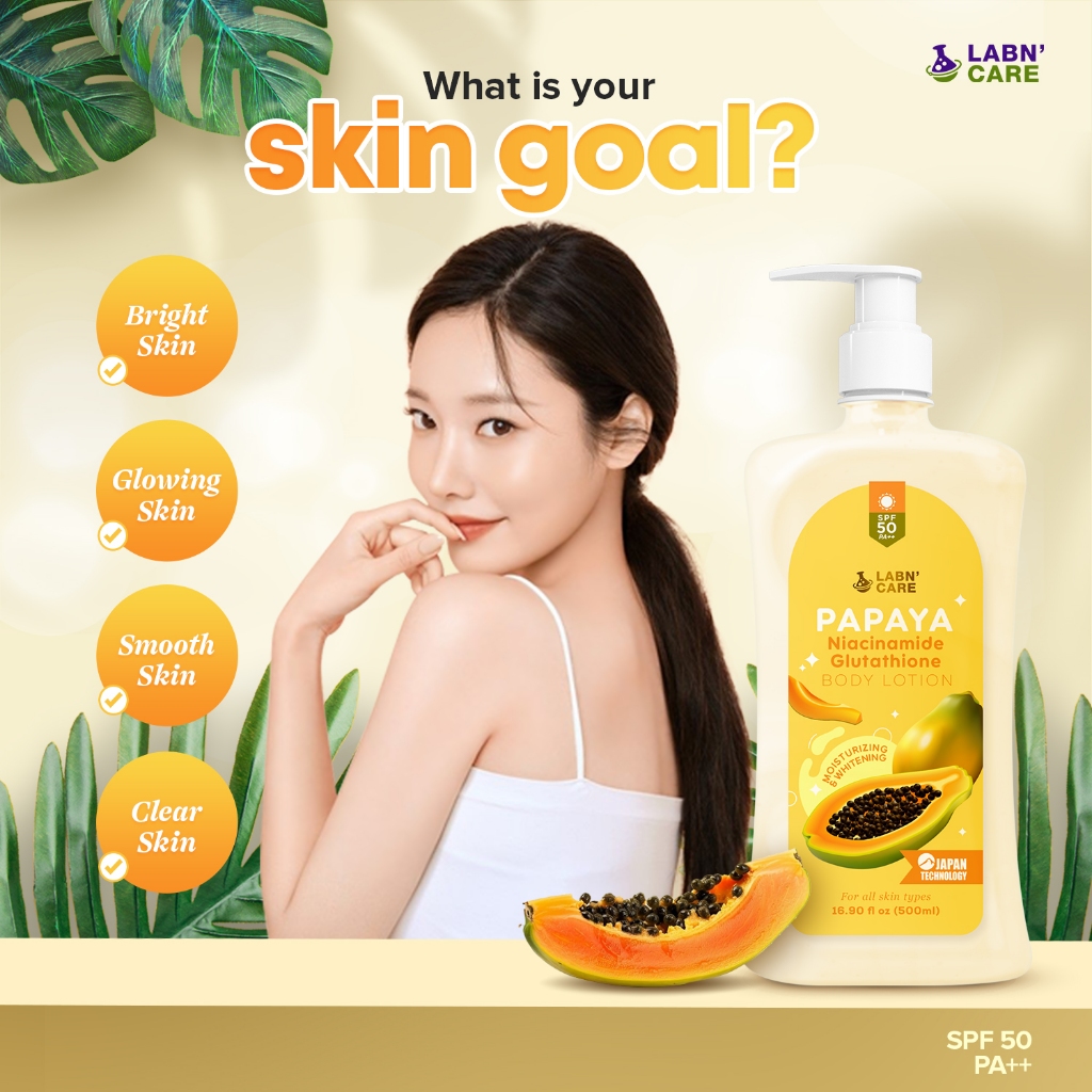 LABN'CARE PAPAYA Glutathione & Niacinamide Body Lotion SPF 50 PA++ Moisturizing Brightening Papaya
