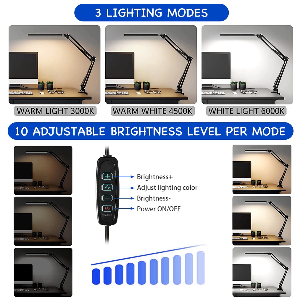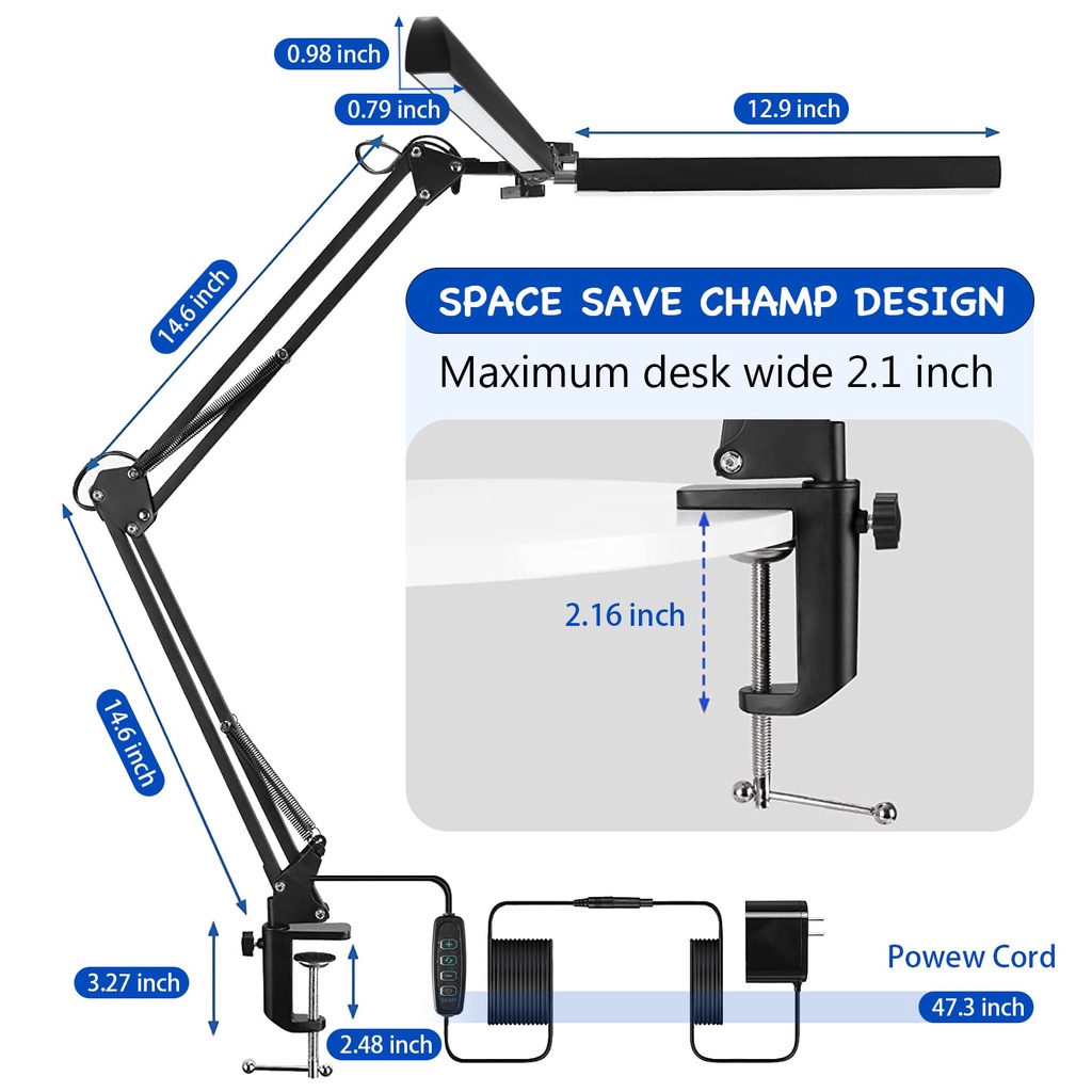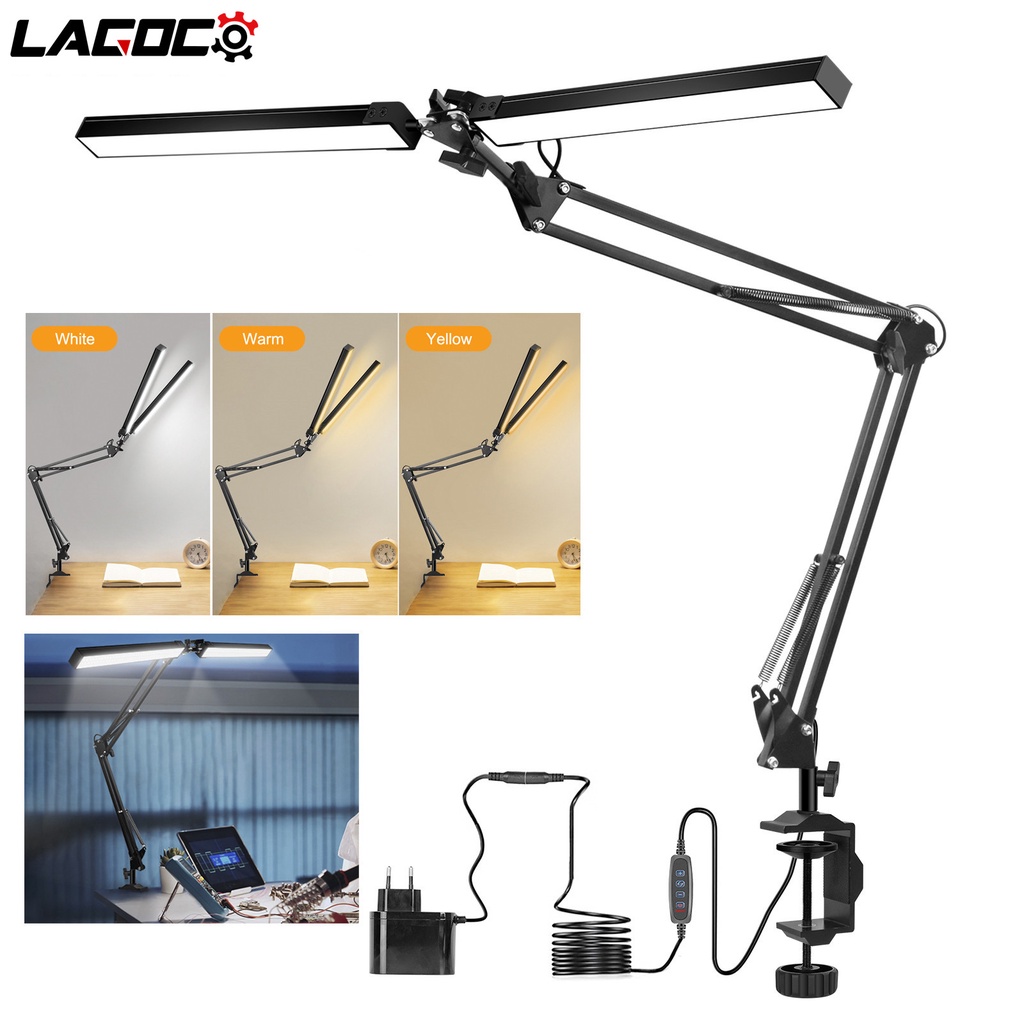 LACOCO LED Folding Metal Desk Lamp Clip On Light Clamp Long Arm Dimming Table Lamp Adjustable