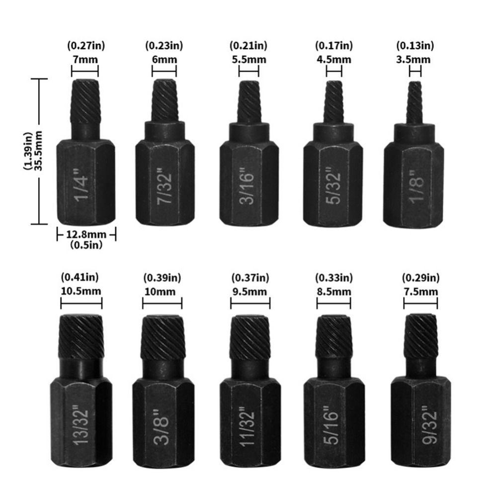 LACYES 10Pcs Bolt Extractor, Screws Bolt Disassemble Screw Extractor Kit, Multi-Spline Demolish Stripped Broken Easy Out Screw Remover Set Remover Tools
