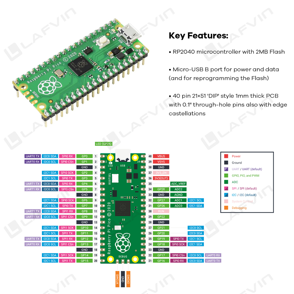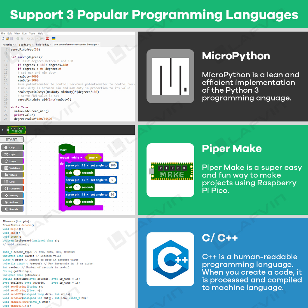 LAFVIN Basic Starter Learning Kit for Raspberry Pi Pico, with Tutorials, MicroPython, Piper Make and C/C++ (Compatible with Arduino IDE)
