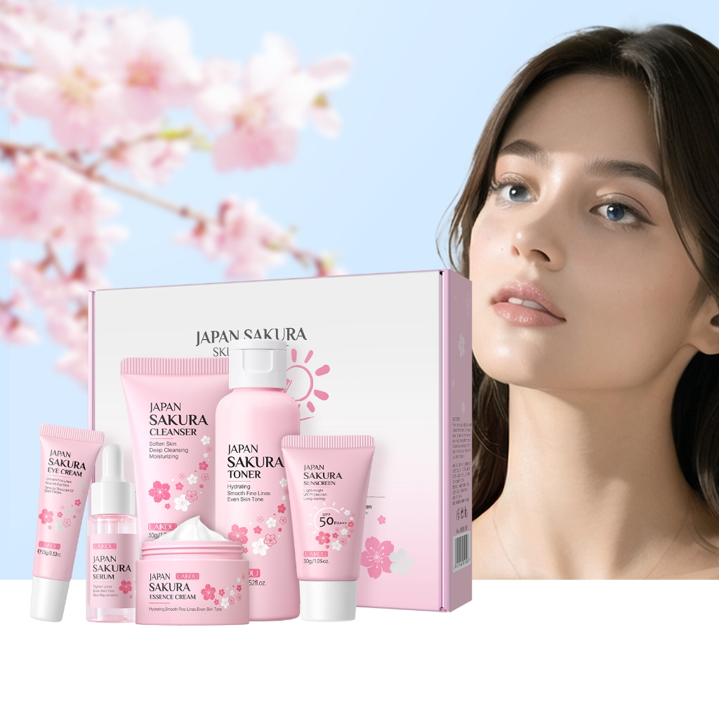 LAIKOU Skincare Set Smooth Fine Lines Brightening Moisturizing Reduce Acne Mark Glass Skin Kit