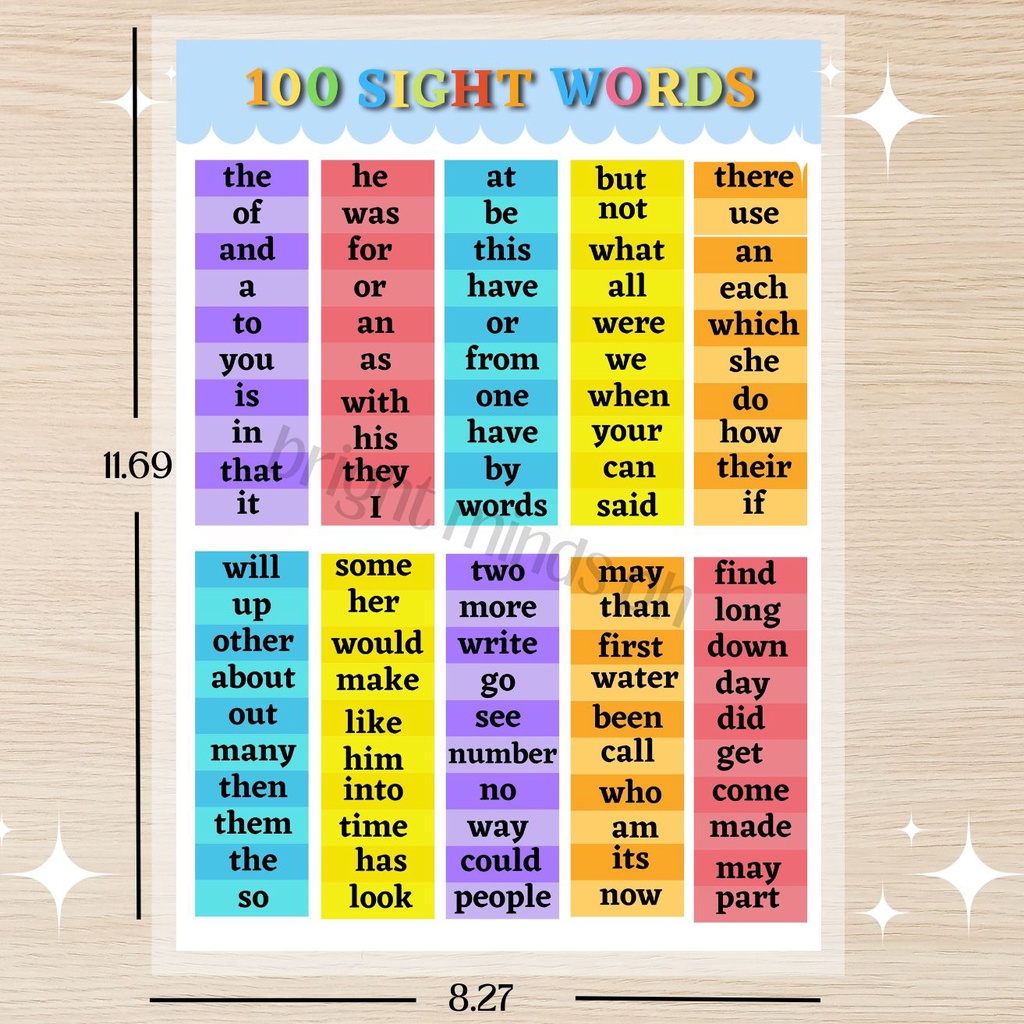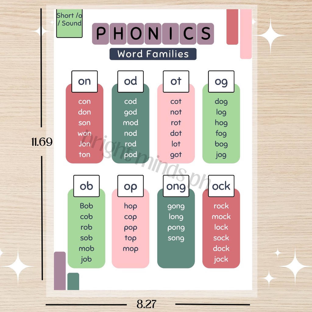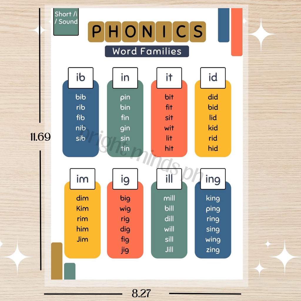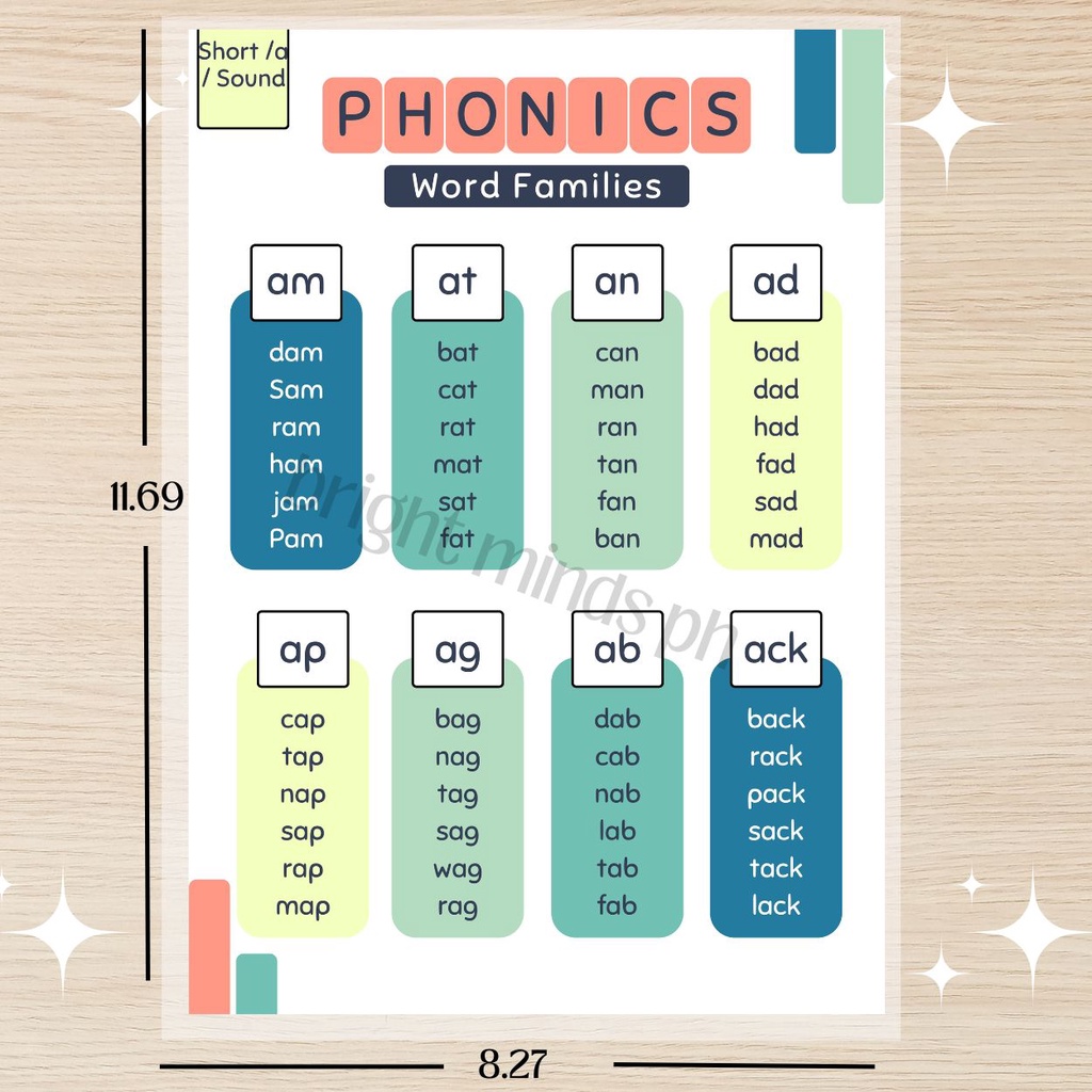 LAMINATED A4 SIZE WALL (CVC, Sight Words, Phonics) CHARTS 250 MICRON THICK (READINGS SET)