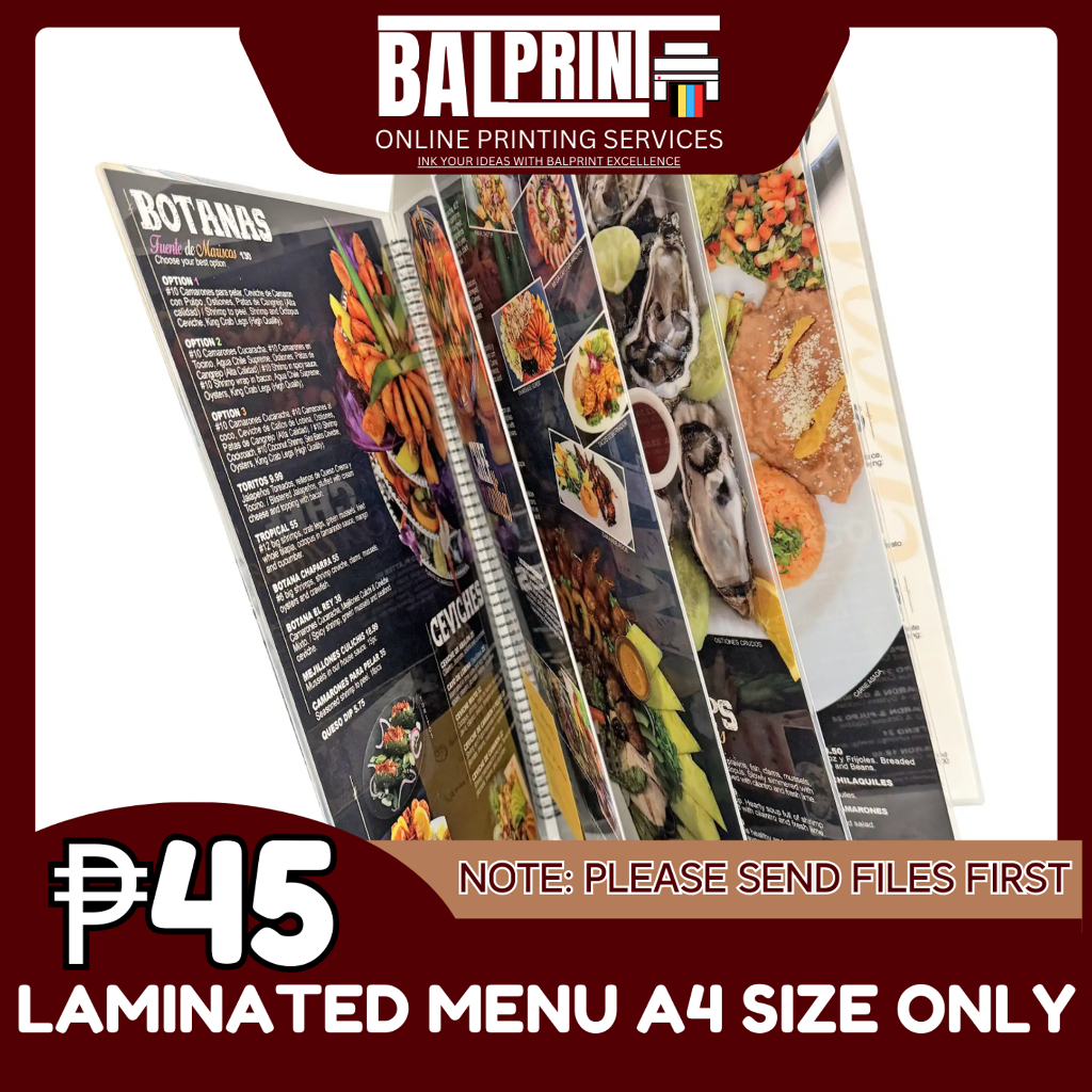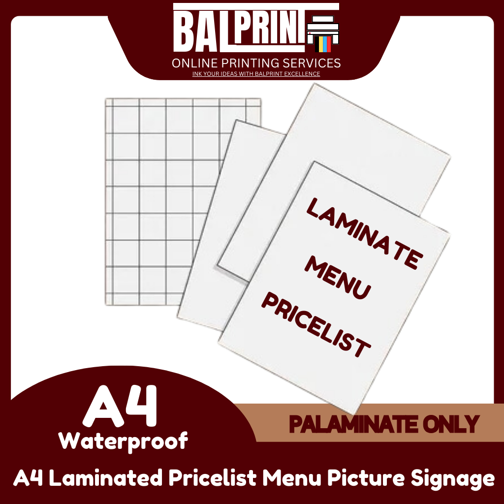 LAMINATED MENU BOARD A4 SIZE ONLY