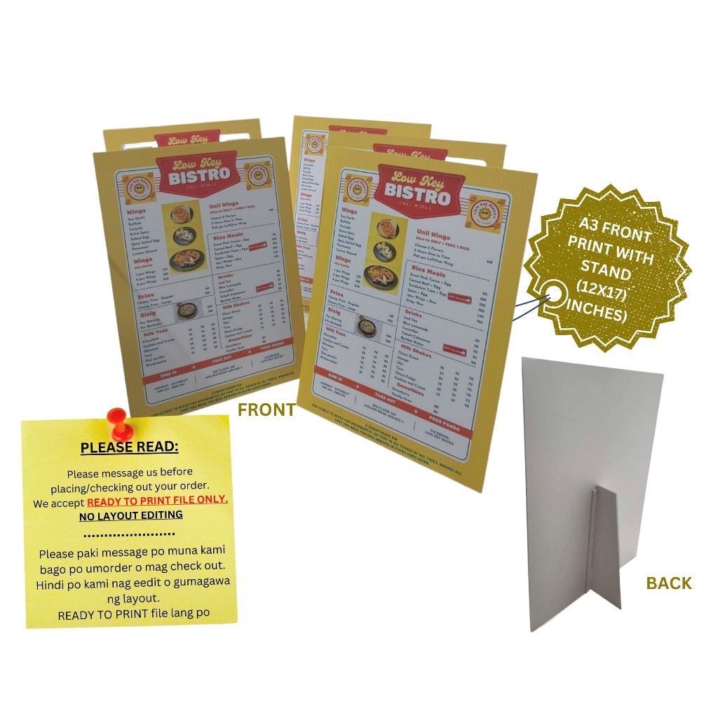 LAMINATED MENU BOARD / SIGNAGE / SINTRA BOARD (Available in Matte and Glossy) A5, A4 and A3 size