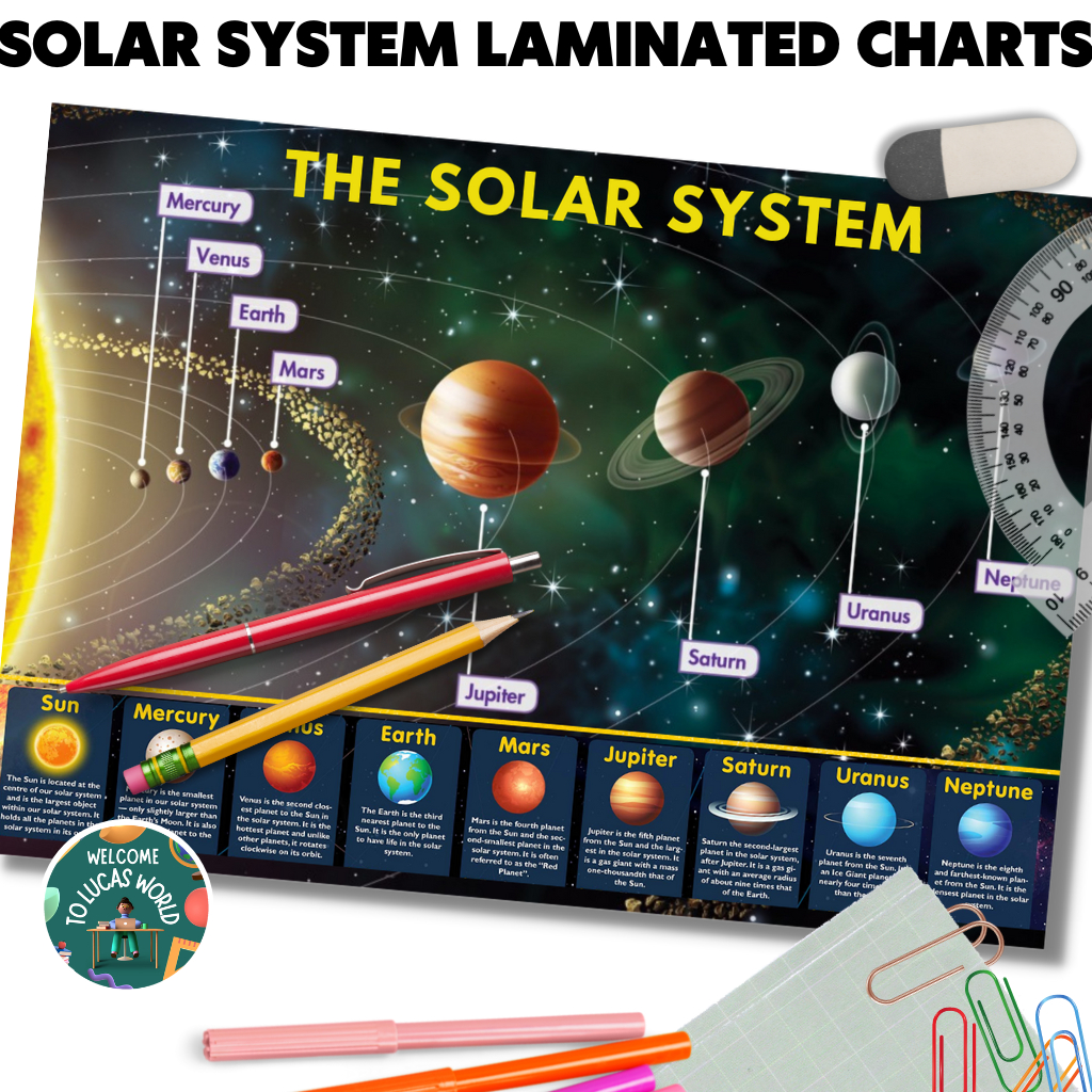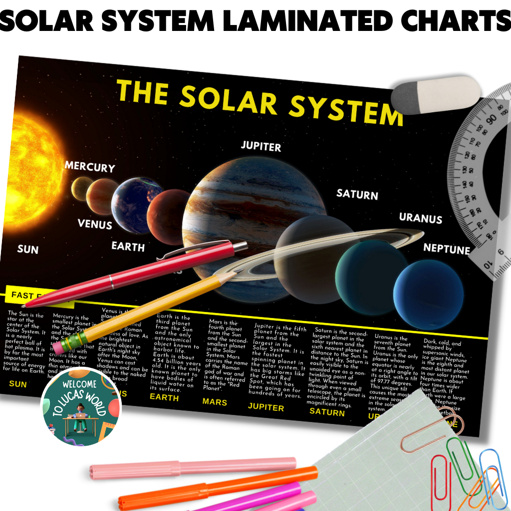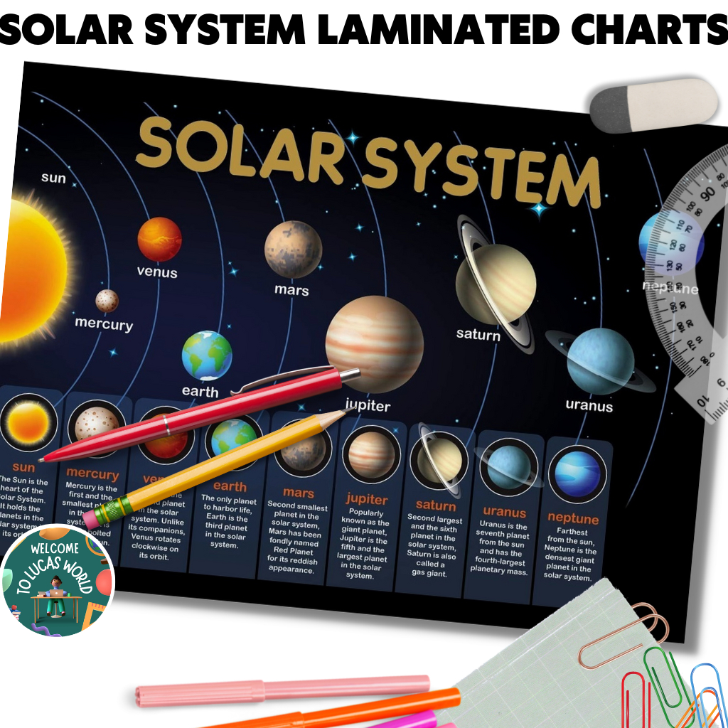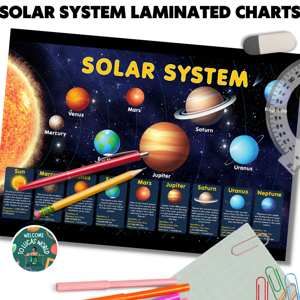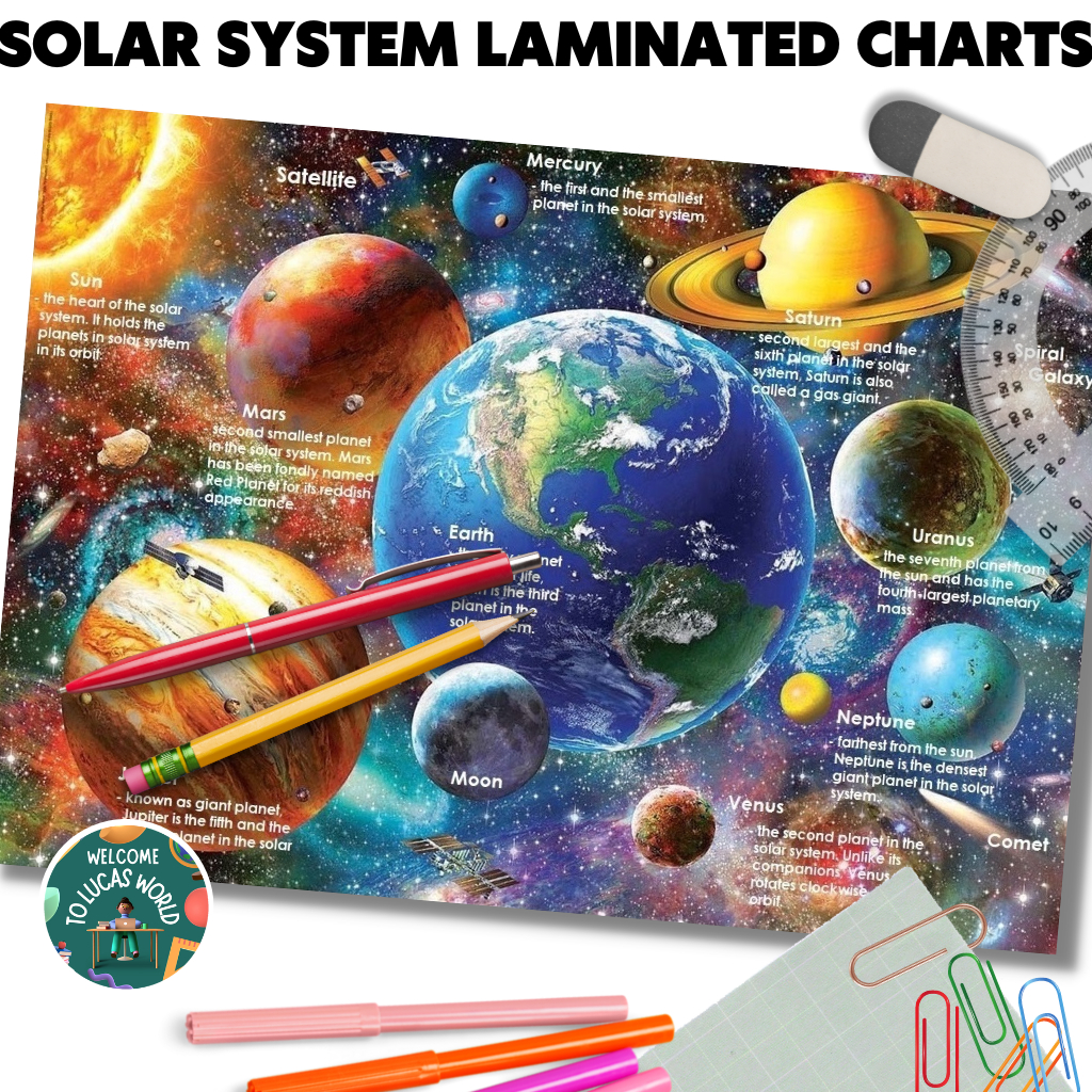 LAMINATED SOLAR SYSTEM / PLANETS CHARTS FOR KIDS, EDUCATIONAL LEARNING POSTERS, SCIENCE ASTRONOMY