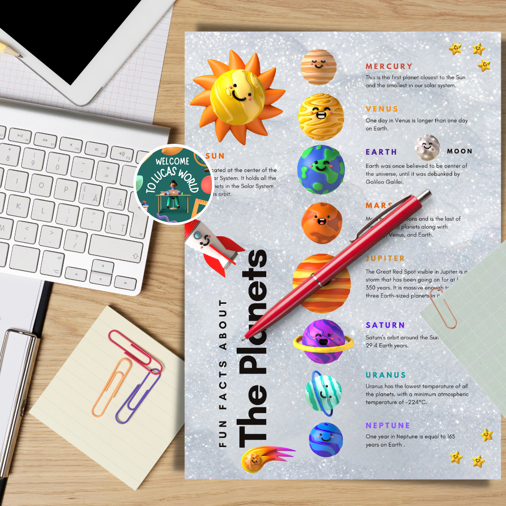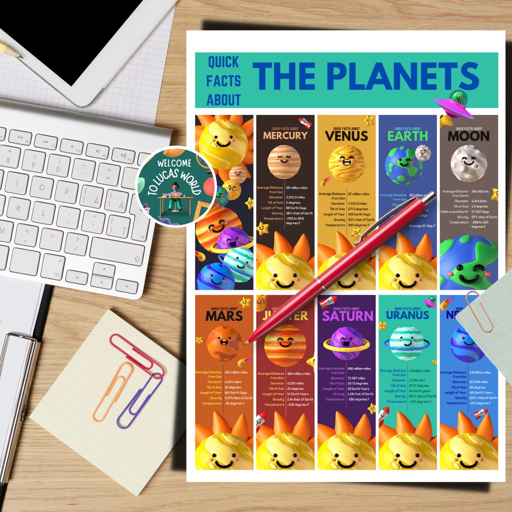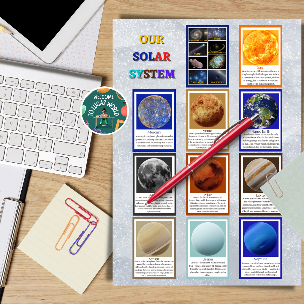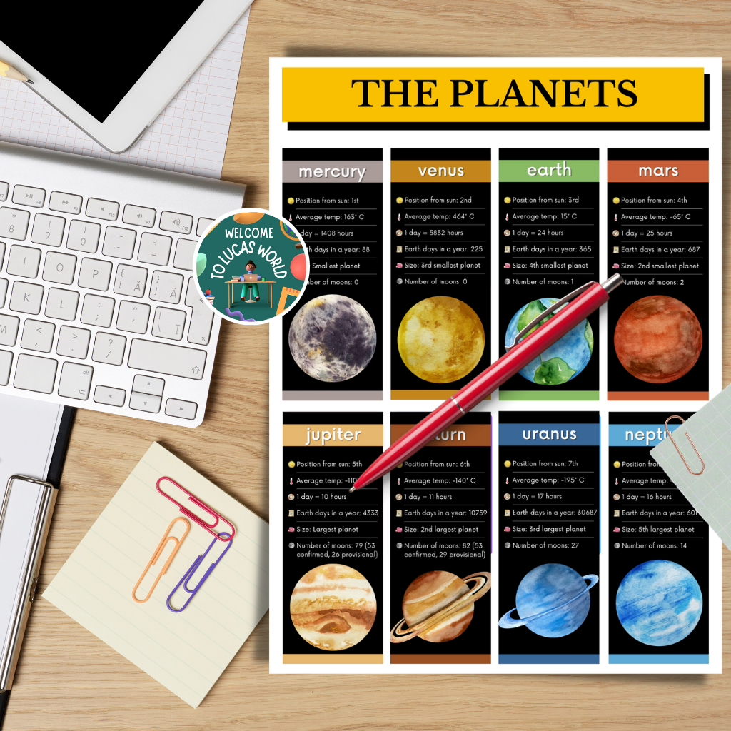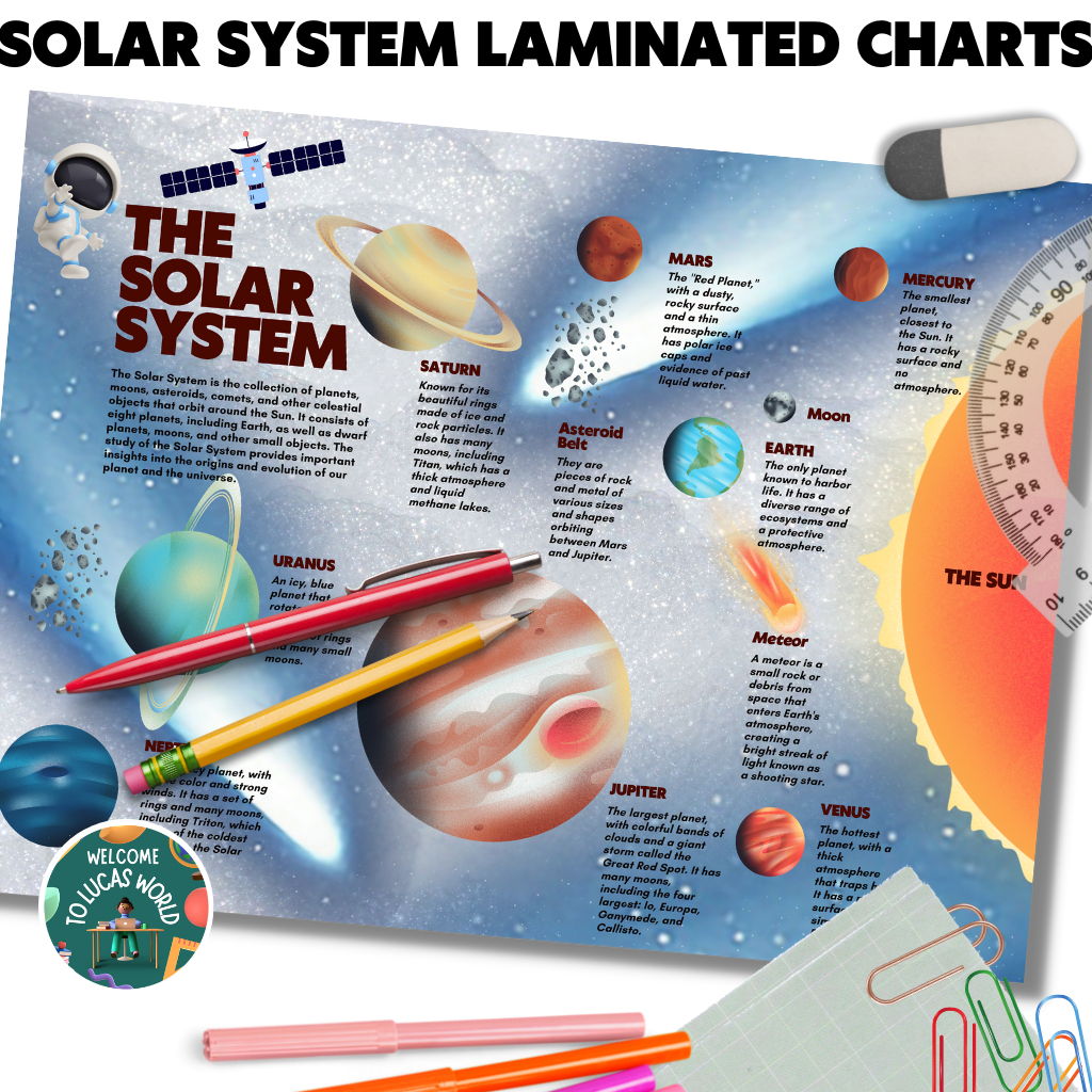 LAMINATED SOLAR SYSTEM / PLANETS CHARTS FOR KIDS, EDUCATIONAL LEARNING POSTERS, SCIENCE ASTRONOMY