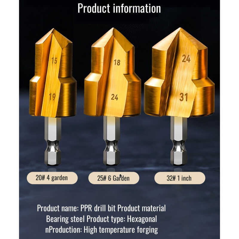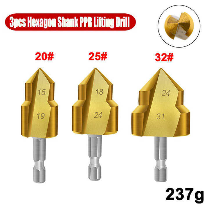 LANG Original 3Pcs Hexagon Shank PPR Lifting Drill Water Pipe Connection Tool 20/25/32Mm Step Portab