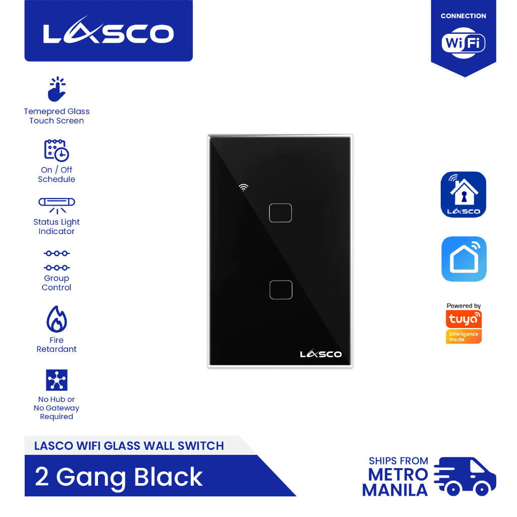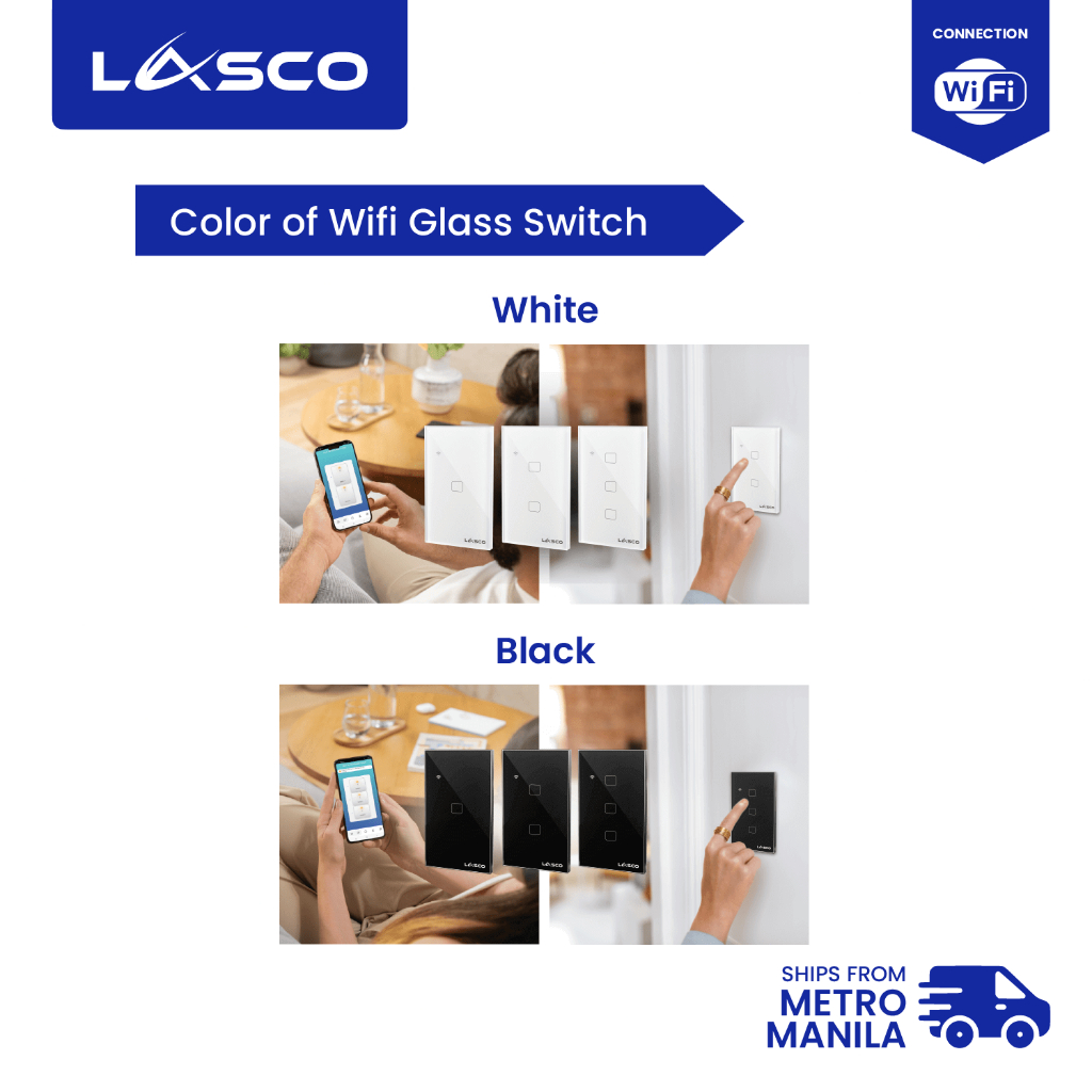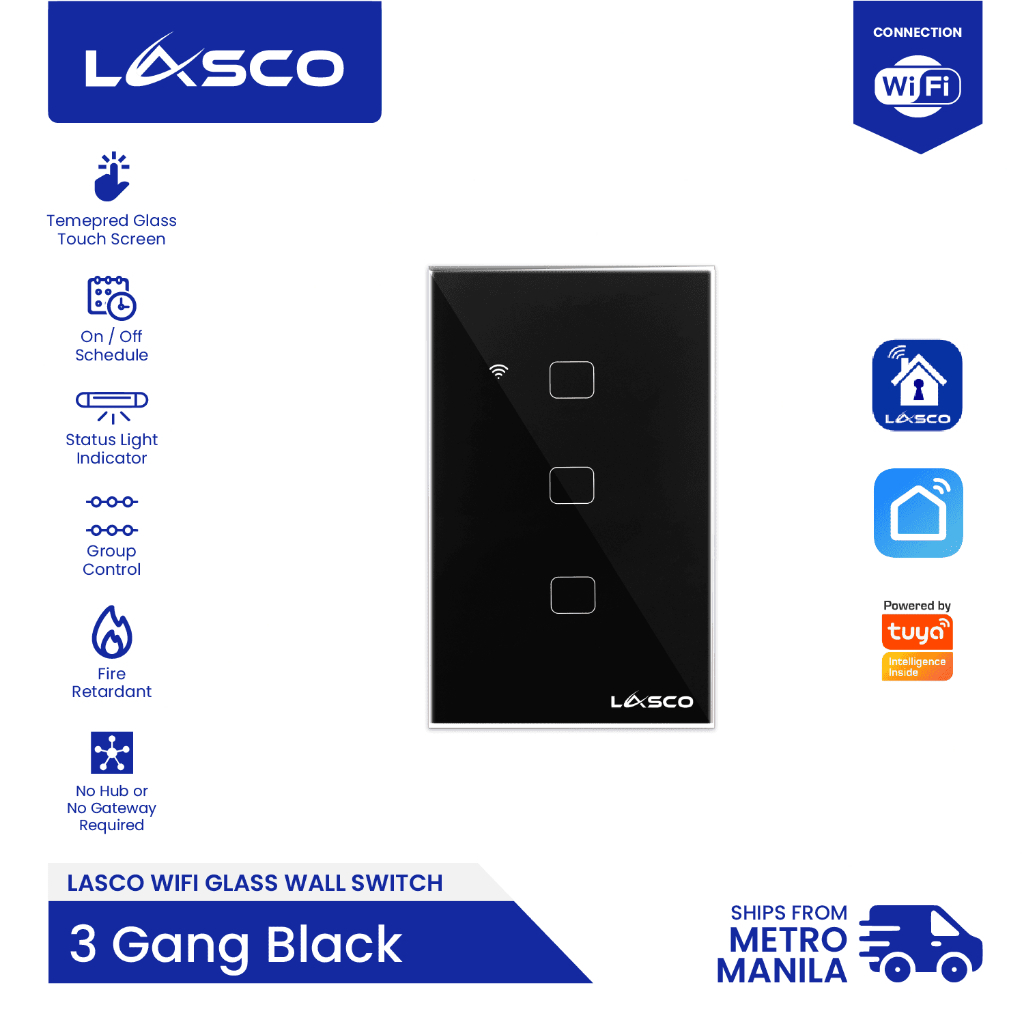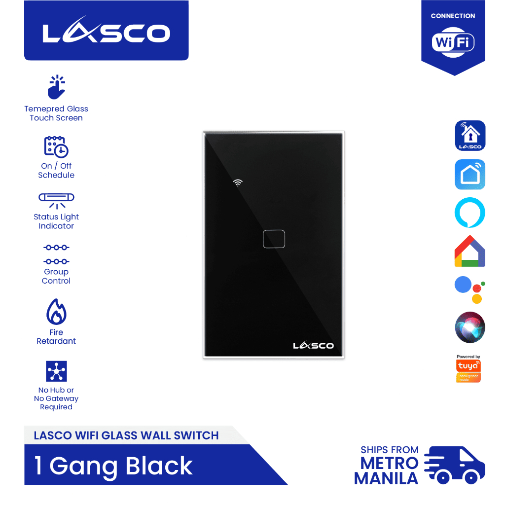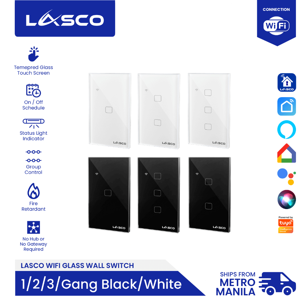 LASCO WIFI Light Switch 1/2/3 GANG Glass Wall Switch (Black or White)