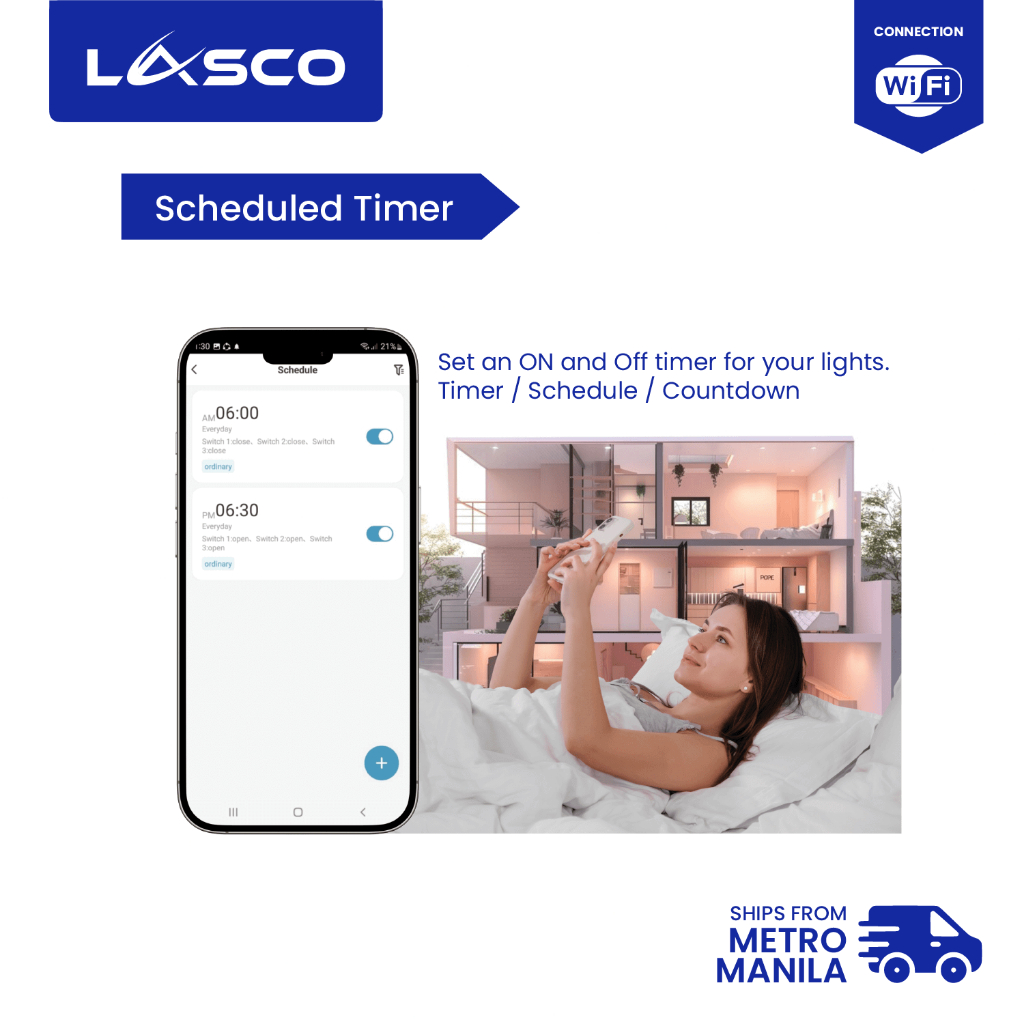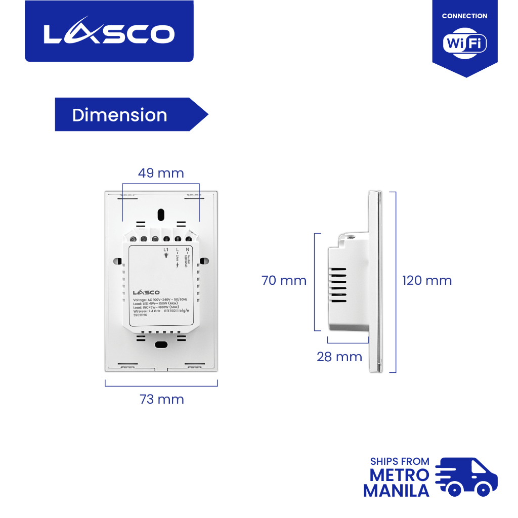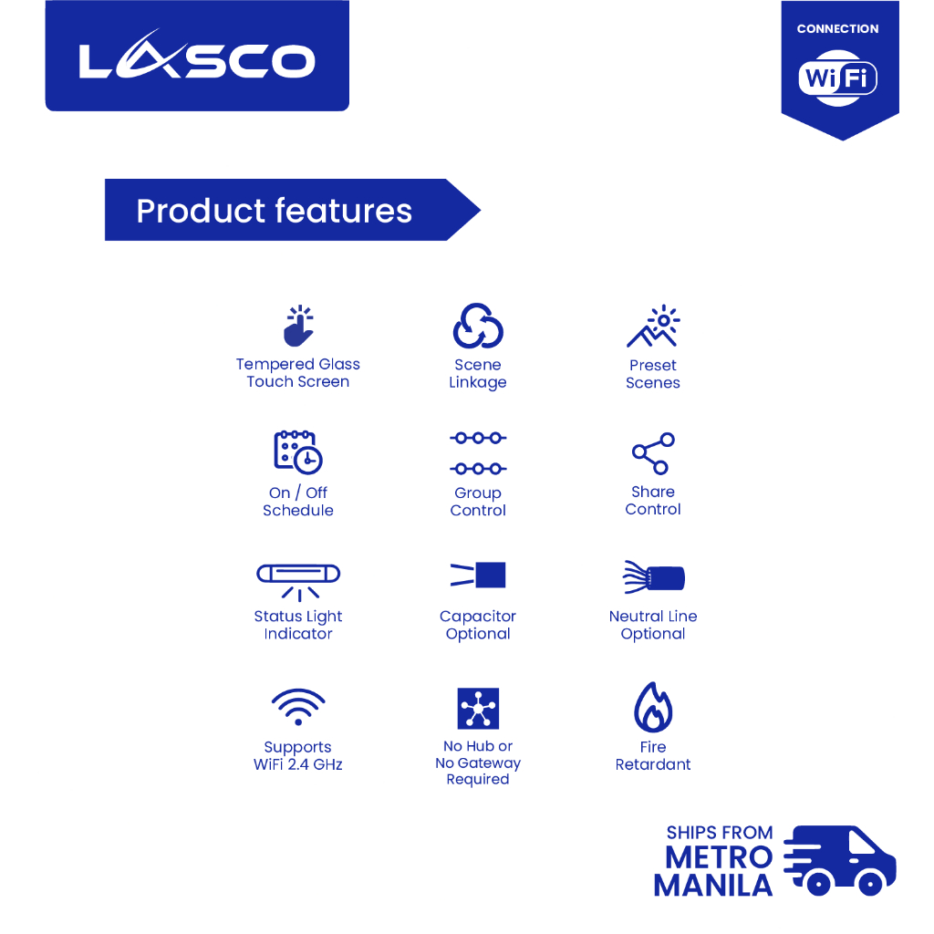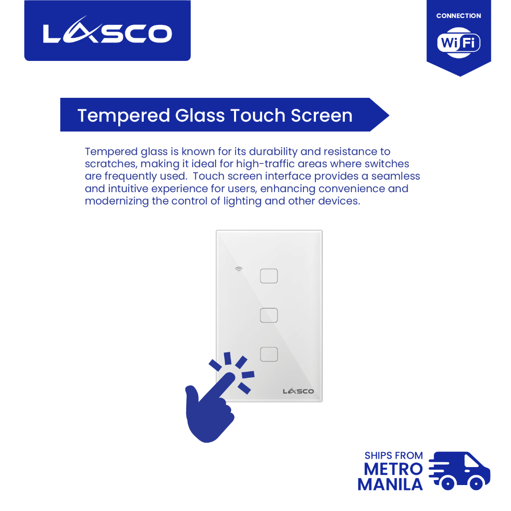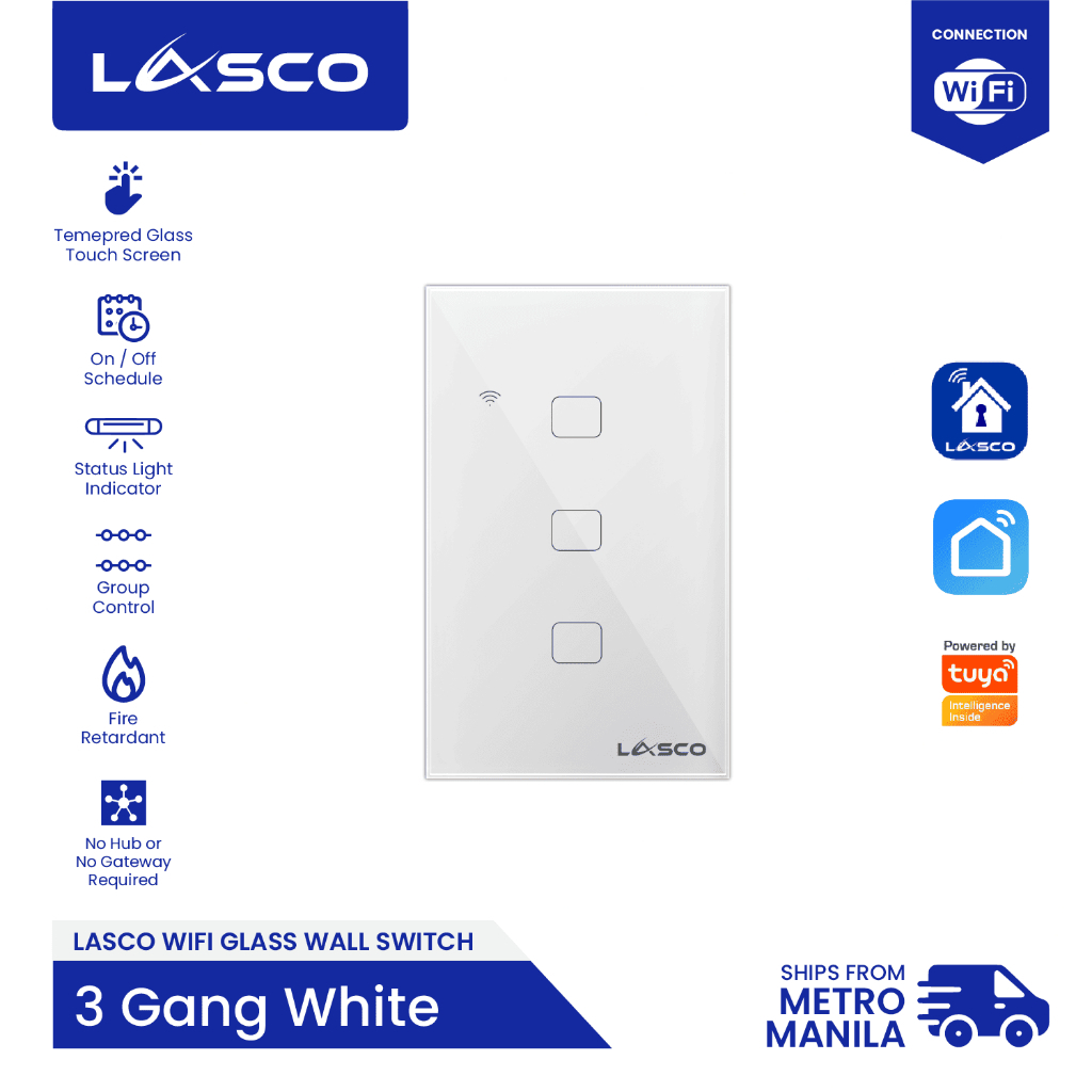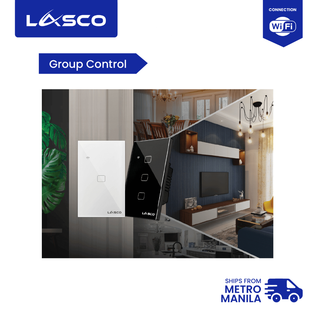 LASCO WIFI Light Switch 1/2/3 GANG Glass Wall Switch (Black or White)