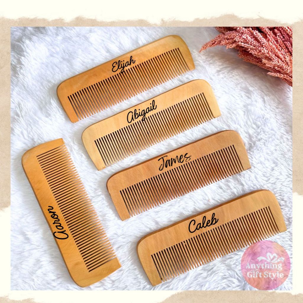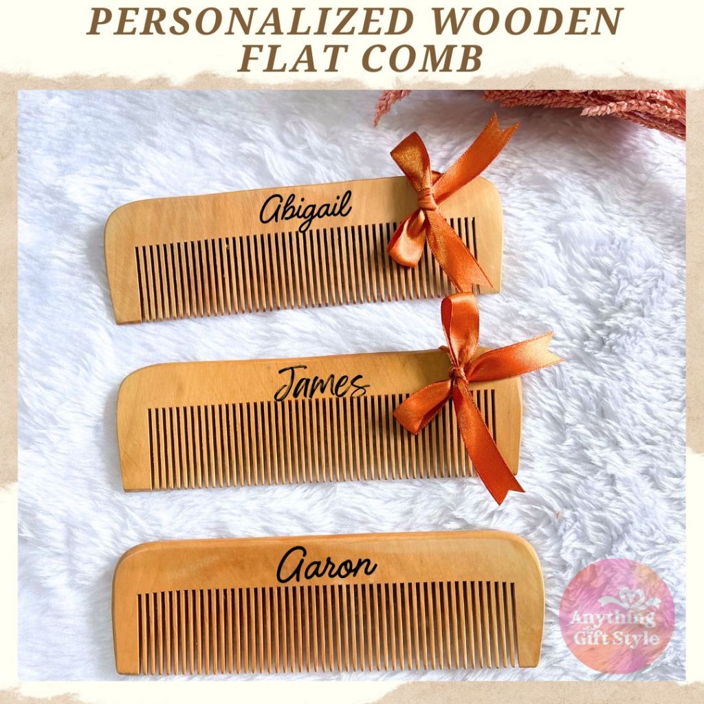 PERSONALIZED WOODEN FLAT COMB | For Wedding, Birthday, Souvenirs Corporate Giveaways | Gift Shop