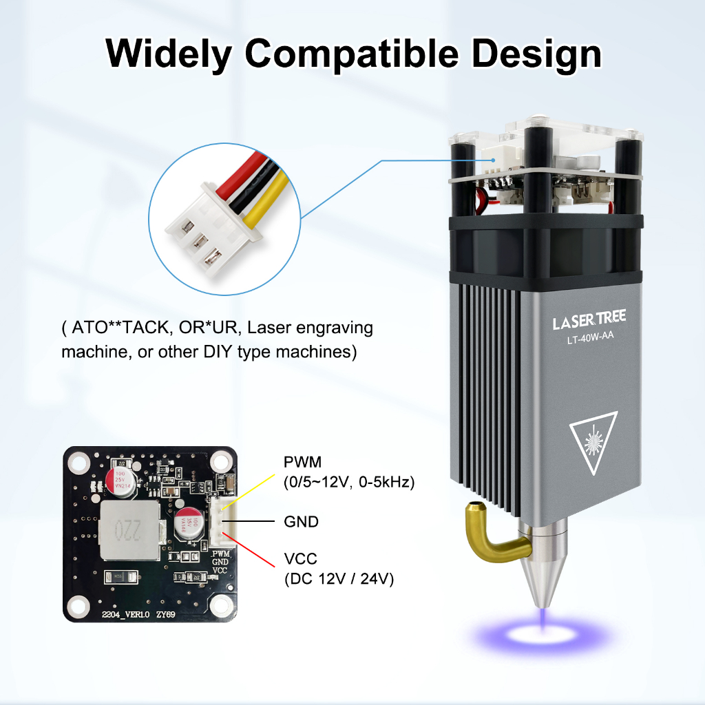 LASER TREE Fixed Focus 5W Laser Head with Air Assist Nozzle Beam Compressed Module for CNC Engraver Cutting Machine DIY Tools