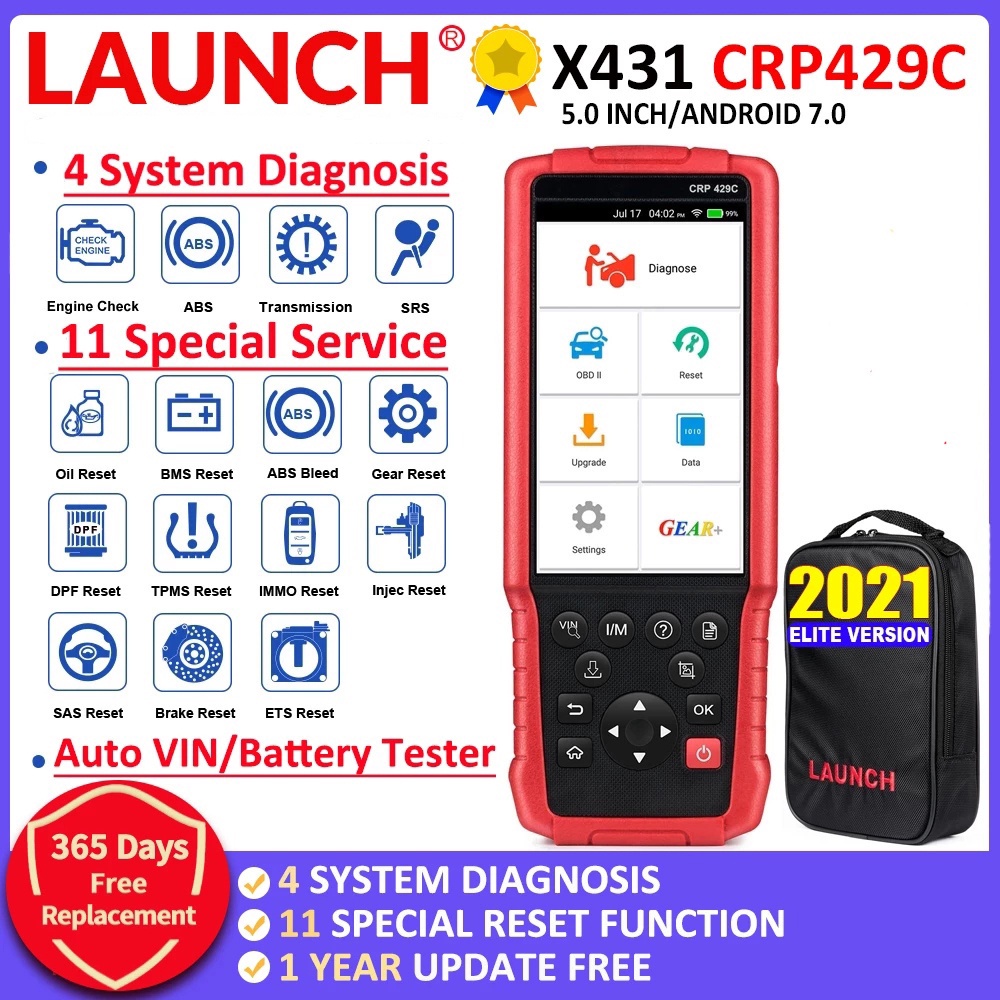 LAUNCH X431 CRP429C OBD OBD2 Code Reader Scanner for 4 system diagnostic +11 reset function CRP429 Scan tool better Free upgrade