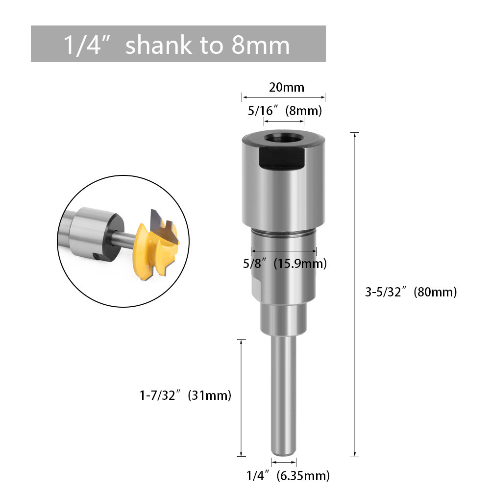 LAVIE 1 pc 1/4" 6mm 8mm 12mm 1/2" Shank Router Bit Extension Rod Collet Engraving Machine Extension Milling Cutter For Wood