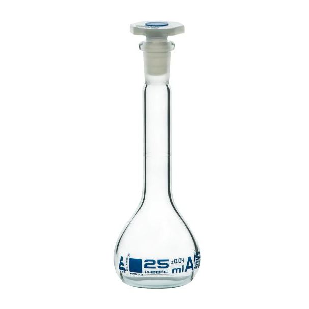 LB2 LAB VOLUMETRIC FLASK WITH PLASTIC STOPPER CLEAR 25ML