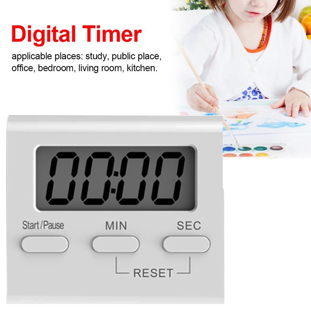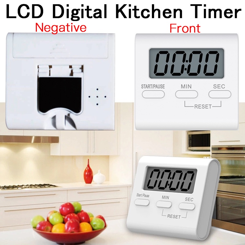 LCD Digital Kitchen Timer Countdown Clock Loud Alarm Clock DIY Standing White Kitchen Oven Cooking
