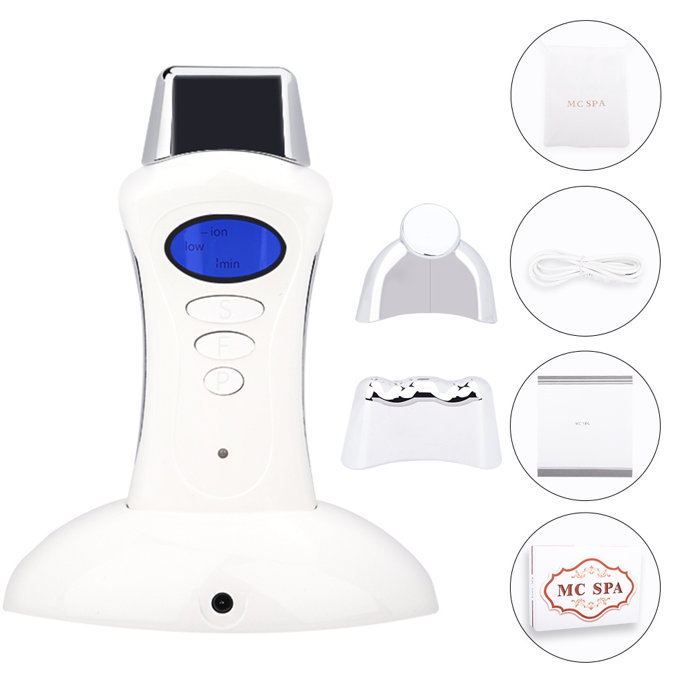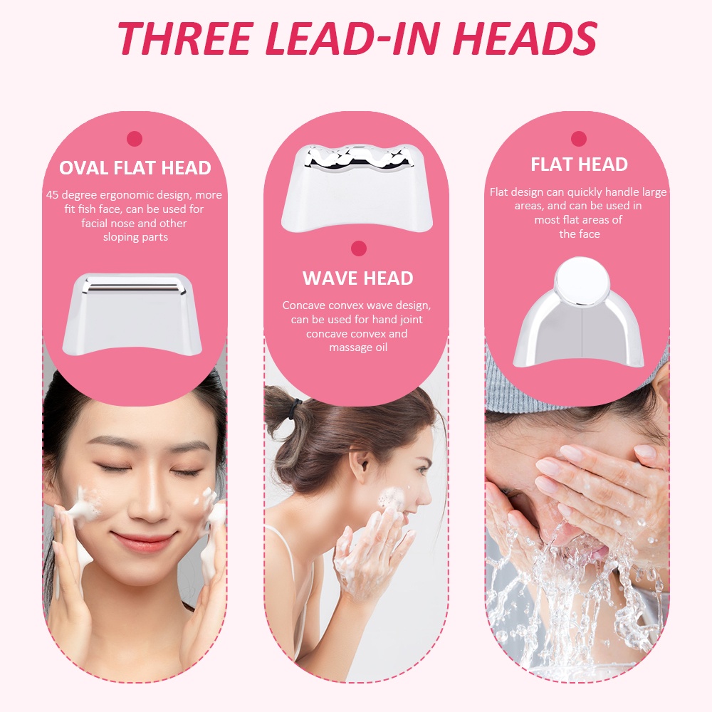 LCD Facial Care Tools Electric Mini USB Beauty Instrument Micro-current Ion galvanic Handheld Spa Device with 3 Massage Heads