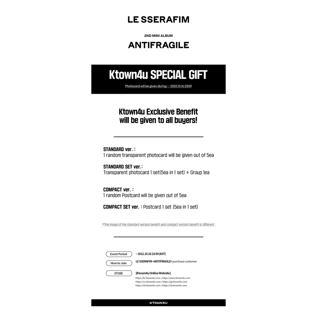 LE SSERAFIM 2nd Mini Album ANTIFRAGILE REGULAR WEVERSE SYNNARA ALADIN YES24 POB