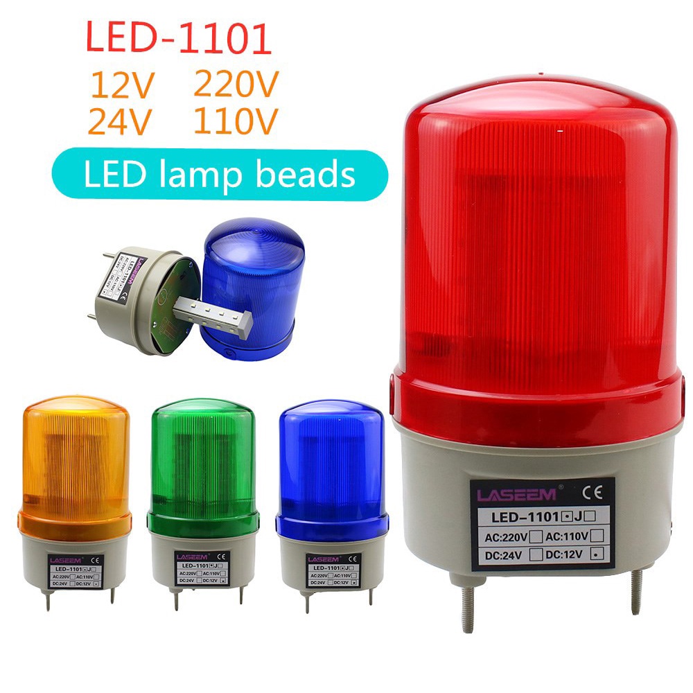 LED-1101 Rotating rotary LED strobe Alarm Lamp light siren yellow blue red green LED warning light No voice 12V 24V 110V 220V