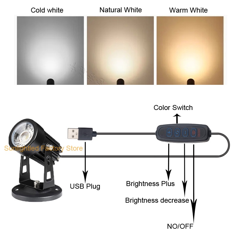 LED 5V USB Spot Light Indoor for Plants Uplights Spotlight Lamp Accent Lighting for Indoor Plants Decor 5W Warm White Up Light