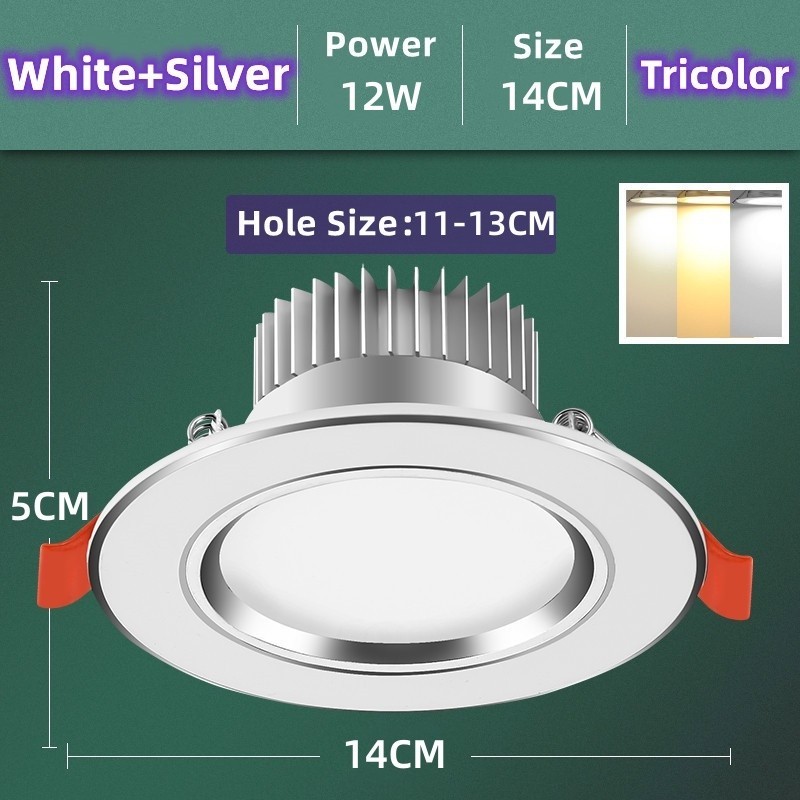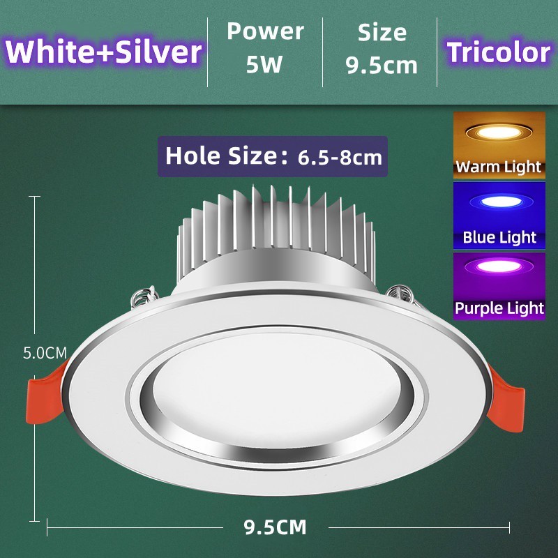 LED 5W 7W 9W 12W Pin light Tricolor Recessed for Celling Panel Round Downlight Ceiling Lights Rooms