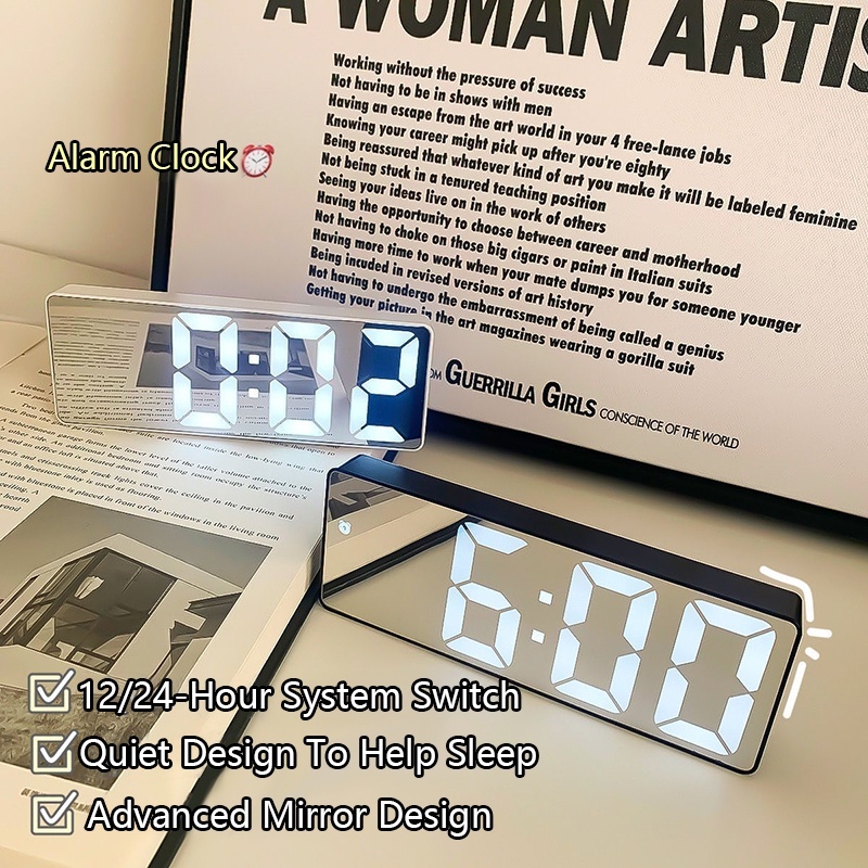 LED Alarm Clock Plastic LED Digital Night Light Thermometer Temperature Display Mirror Decor Useful
