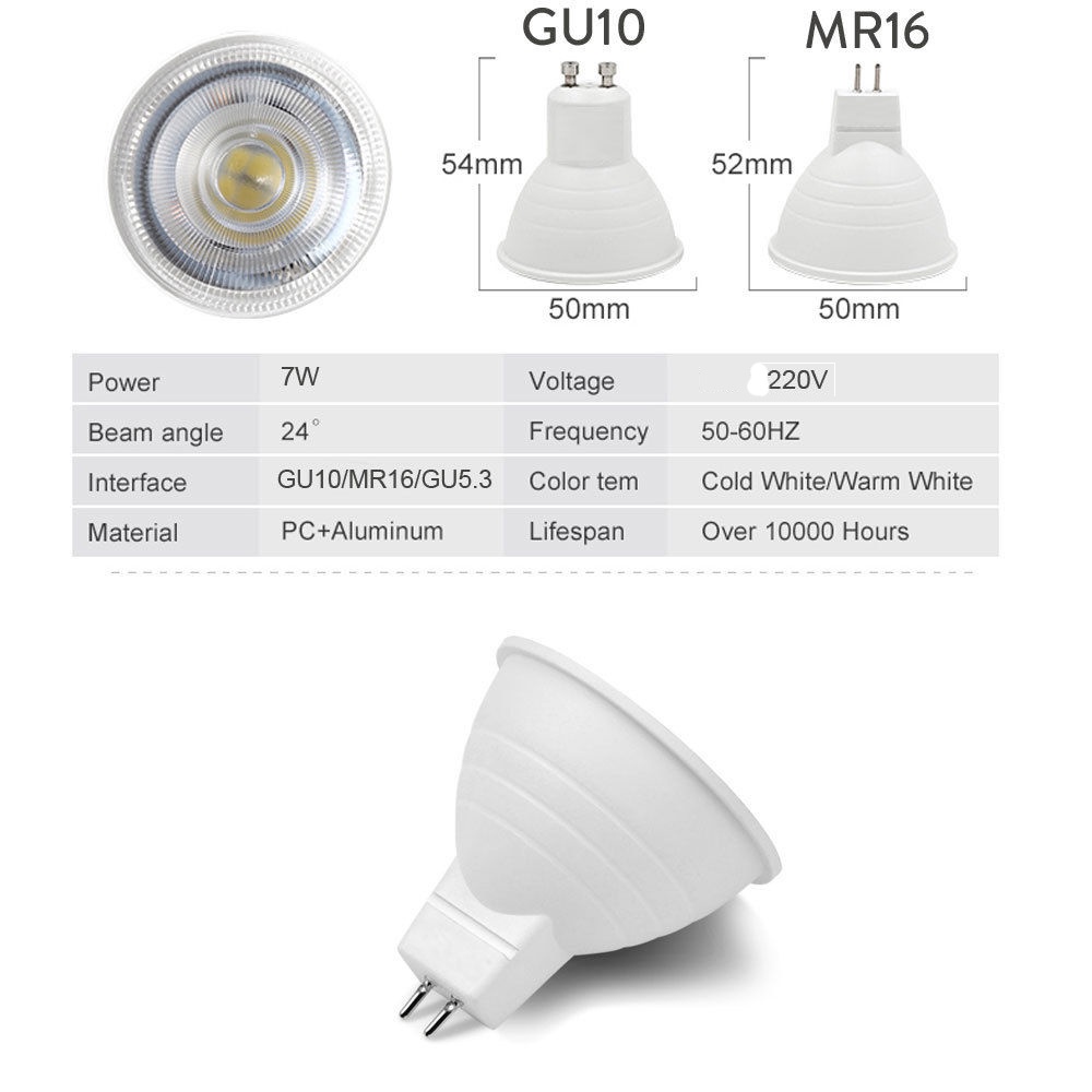 LED COB Spotlight E27 E14 GU10 GU5.3 MR16 B15 E12 7W Dimmable LED Bulb 220V Aluminum High Quality Super Bright led Bulb