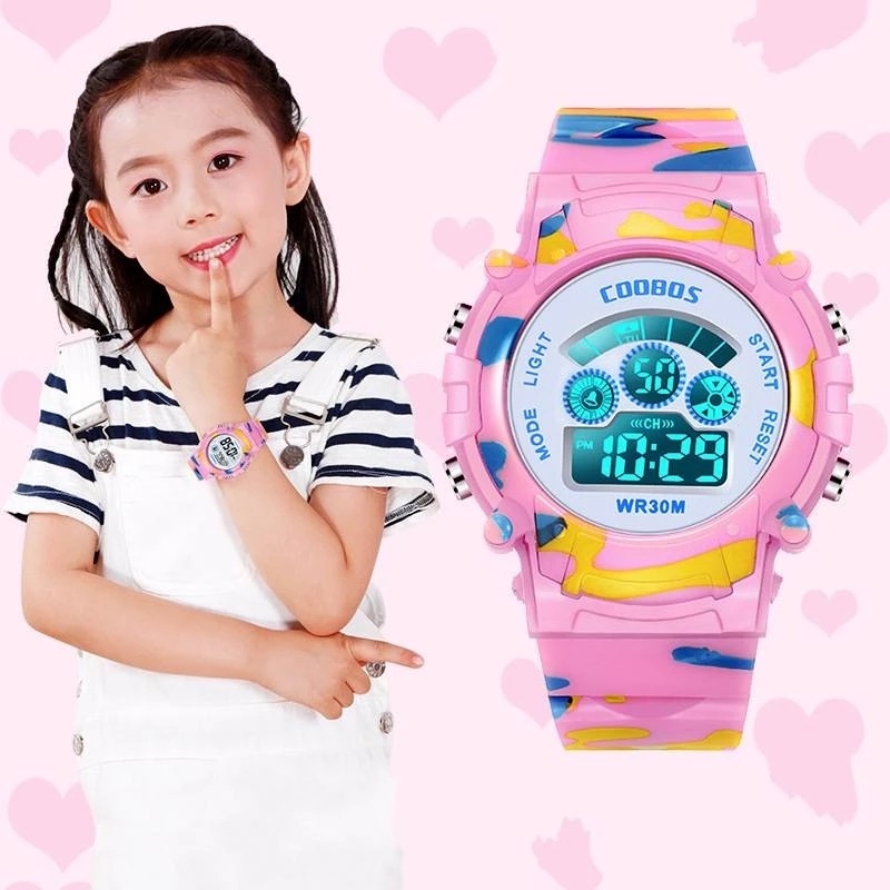 LED Colorful Luminous Children Electronic Watch/ Cartoon Camouflage Flash Digital Waterproof Alarm Watch for Kids