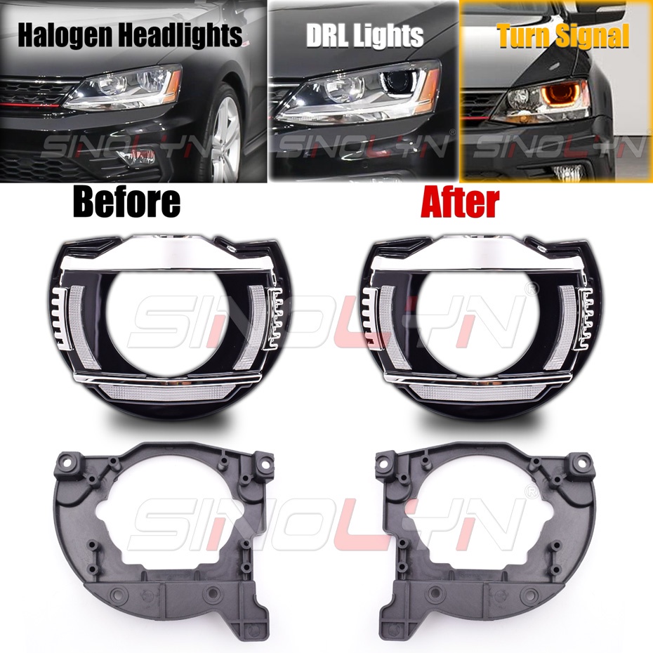 LED DRL Upgrade Kit For VW Jetta 12-17 Halogen Headlamps Hella 3R G5 Bi Xenon Projector Lens Signal Switchback D2S D2H Retrofit