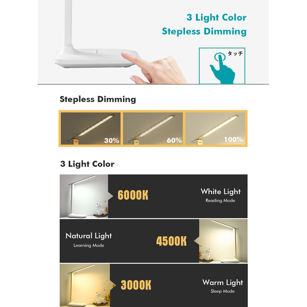 LED Desk Lamp USB Study Lamp Stepless Dimming Table Lamp Rechargeable Foldable Student Reading Light