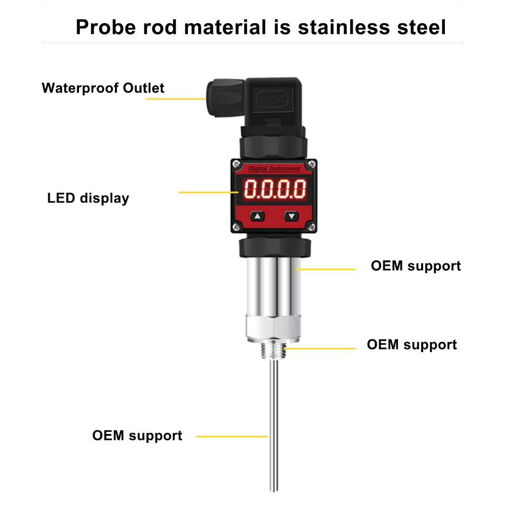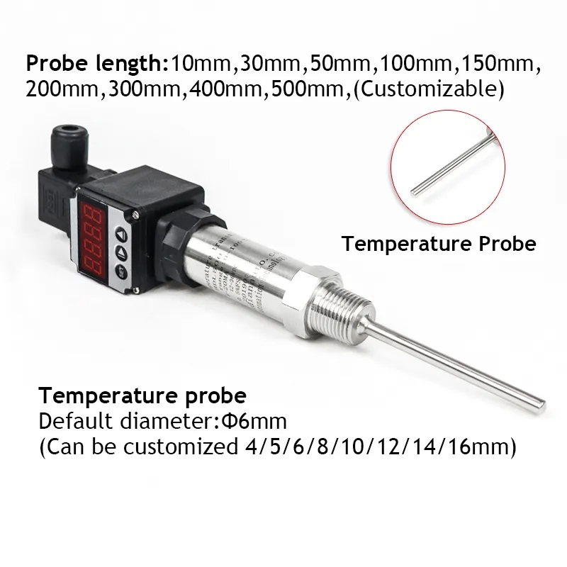 LED Display Plug-in Temperature Transmitter PT100 150 Degrees Temperature Measuring Probe Temperature Sensor 4-20mA Output RTD Transducers