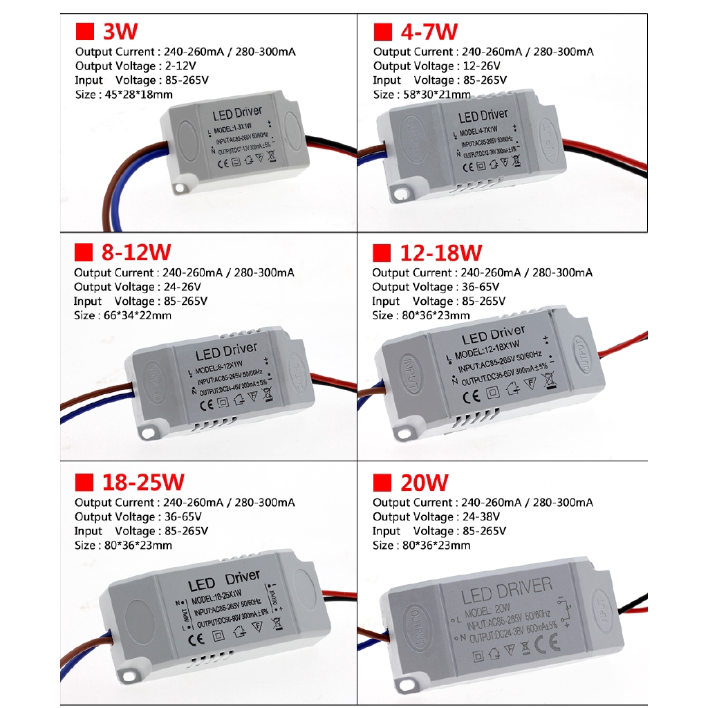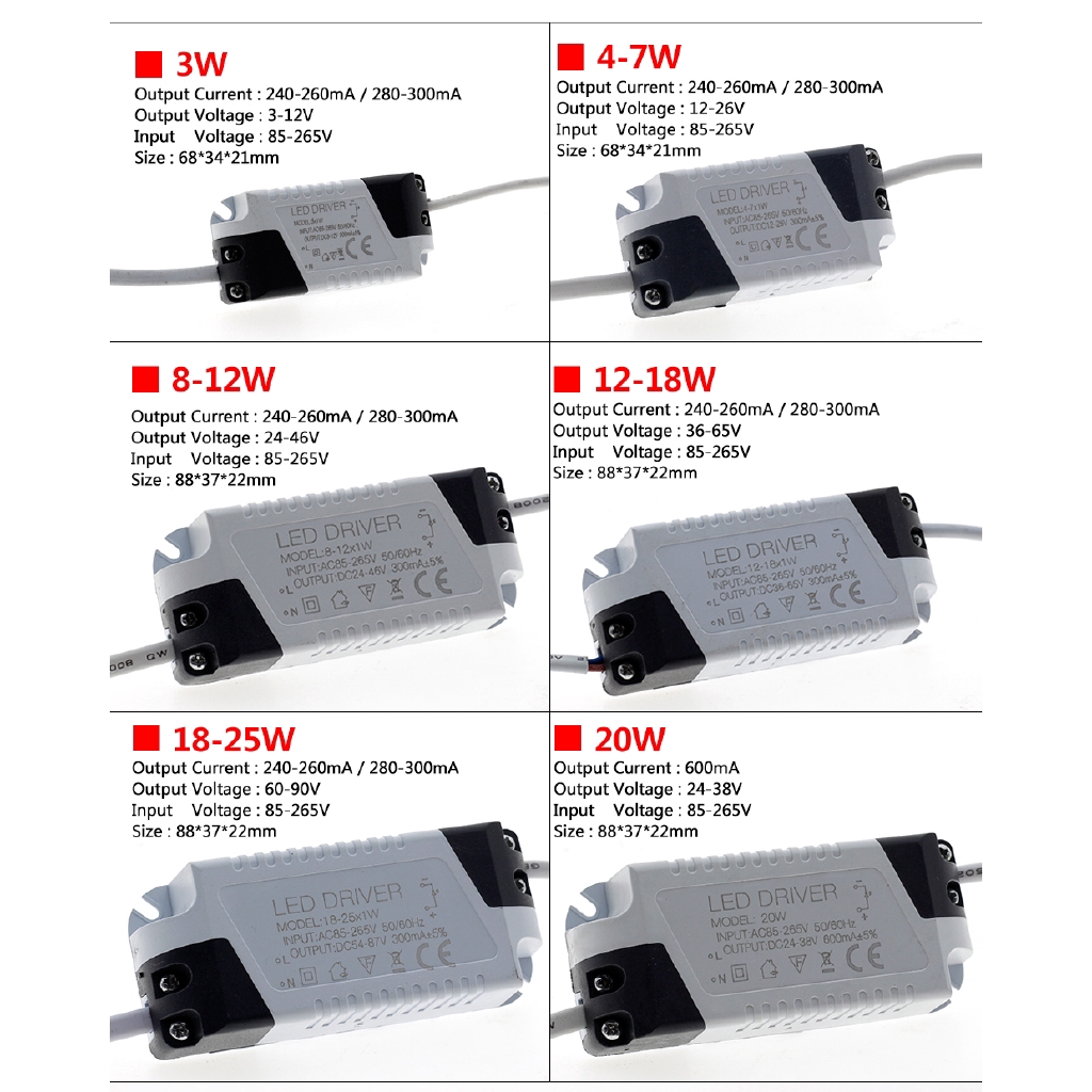 LED Driver 1-3W 4-7W 8-12W 18-25W 25-36W AC85-265V Lighting Transformer For LED Panel Light / Downlight / Spotlight Driver.