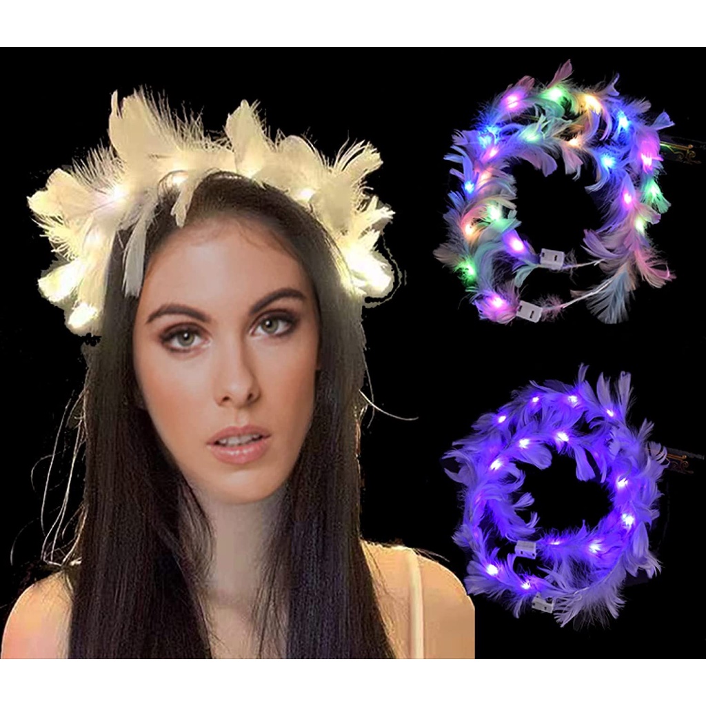 LED Feather Wreath Crown Headband,Light-Up Angel Halo Headband, Luminous Headdress for Women Girls Wedding Christmas Glow Party