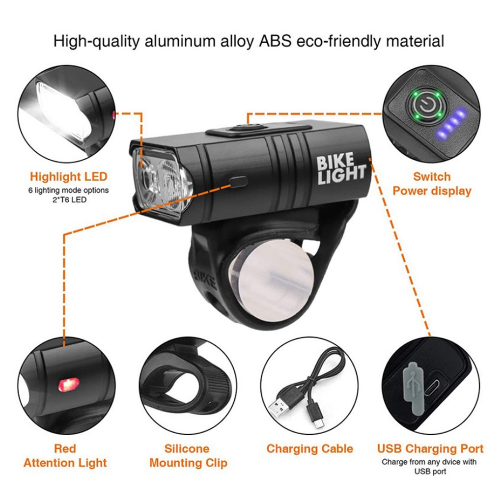 LED Front Lights usb Mountain Road Bike Flashlight 6 Modes Headlight Equipment